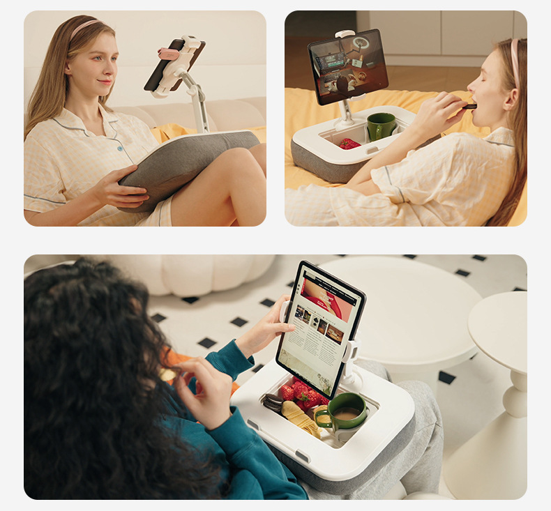 노트북 다기능 스탠드, 컵 홀더가 있는 자동차 베개, 스낵 슬롯, 휴대폰 태블릿 범용 스탠드, 플러시 드라마스토어 가기