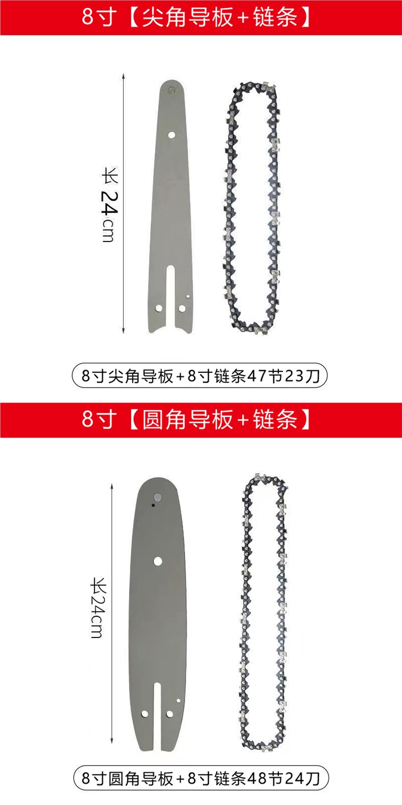 • 8인치, 47섹션, 23칼 [체인 + 가이드 플레이트]