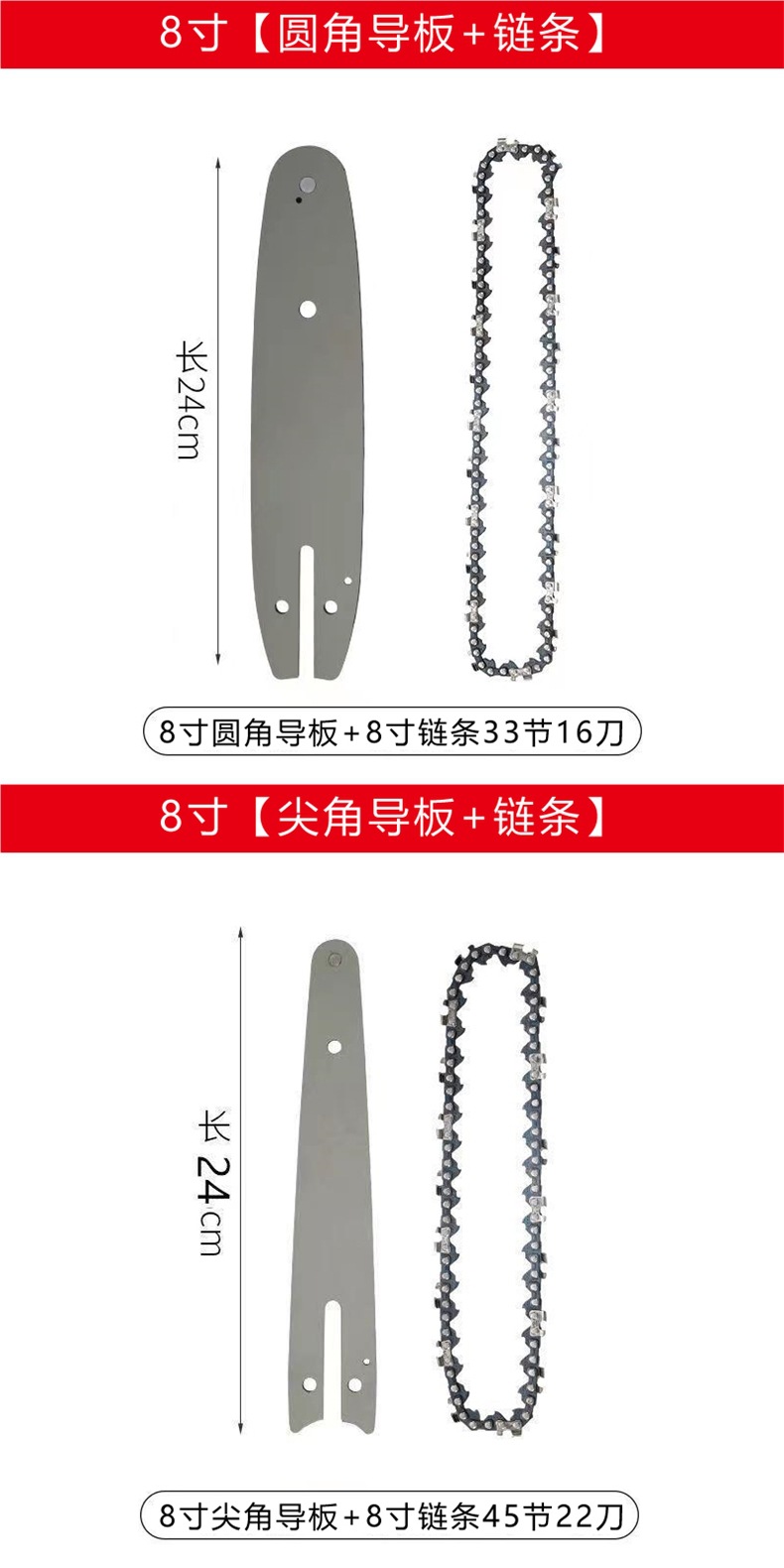 • 8인치, 45섹션, 22칼 [체인 + 가이드 플레이트]
