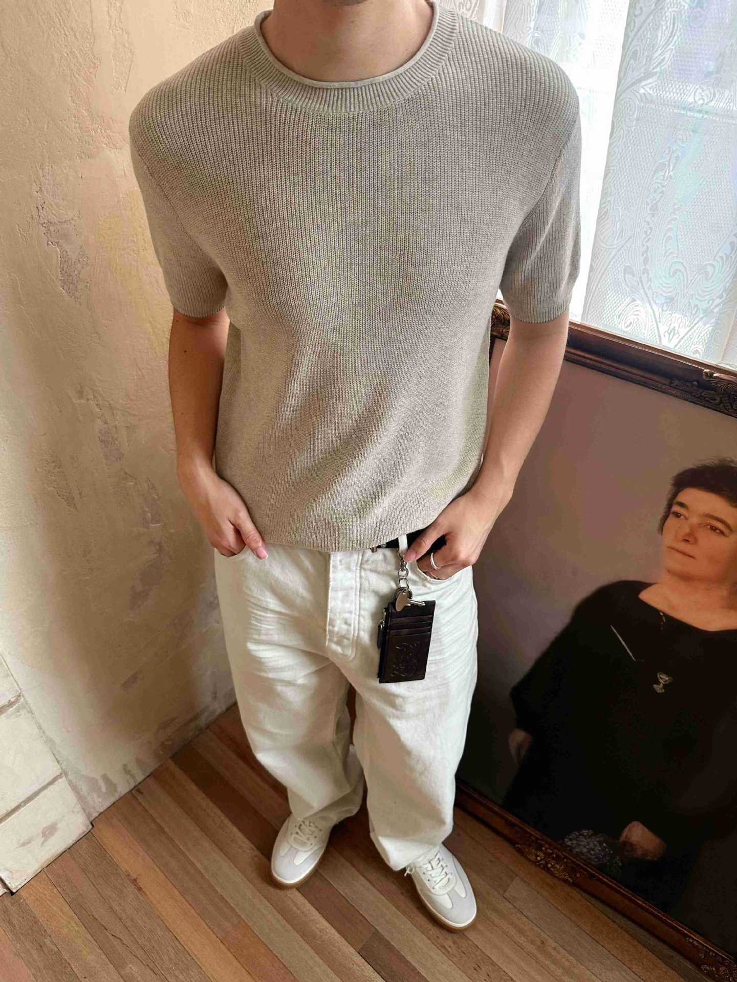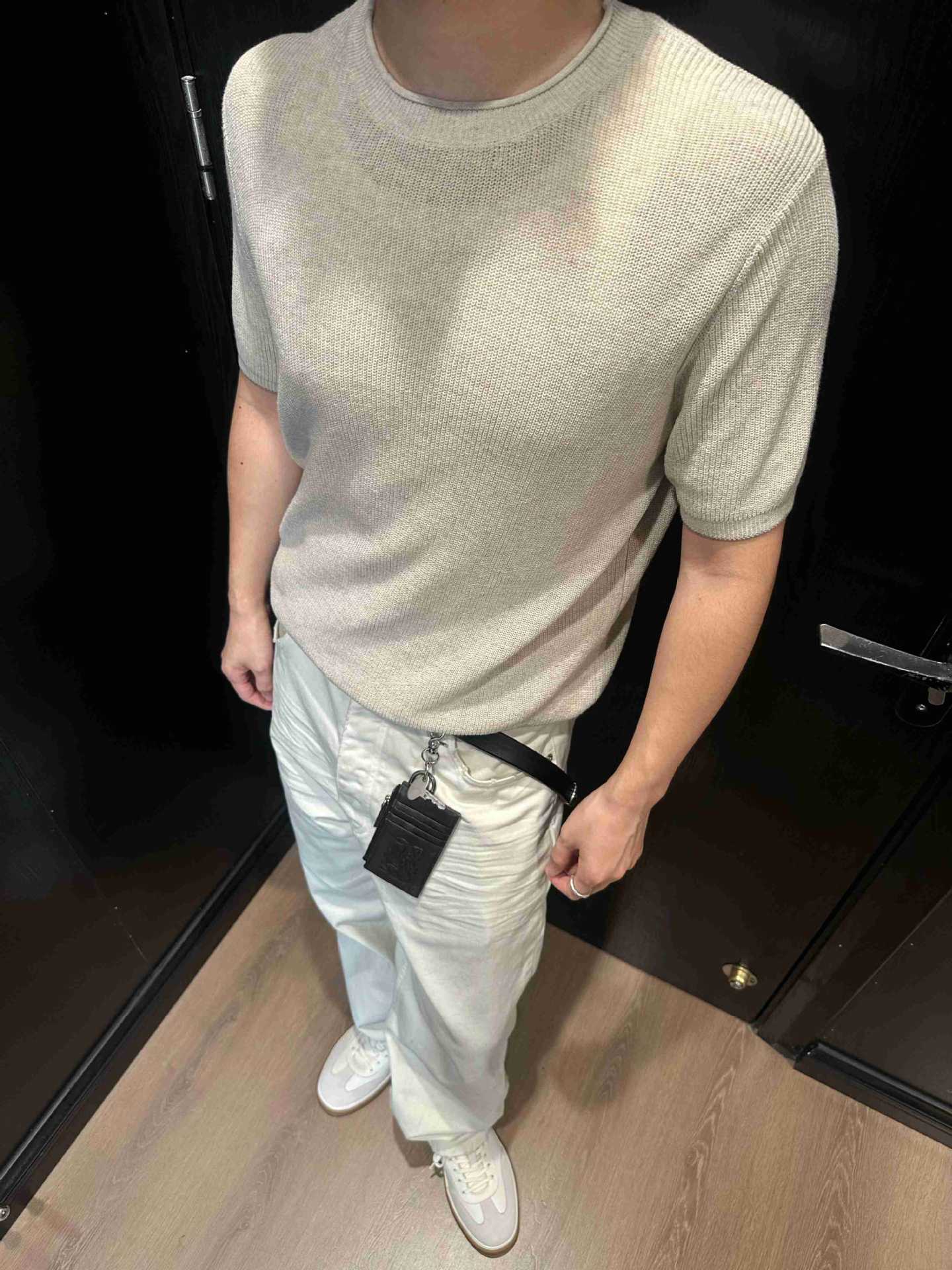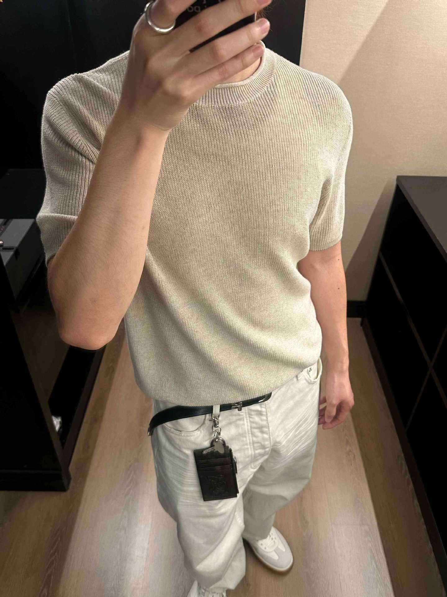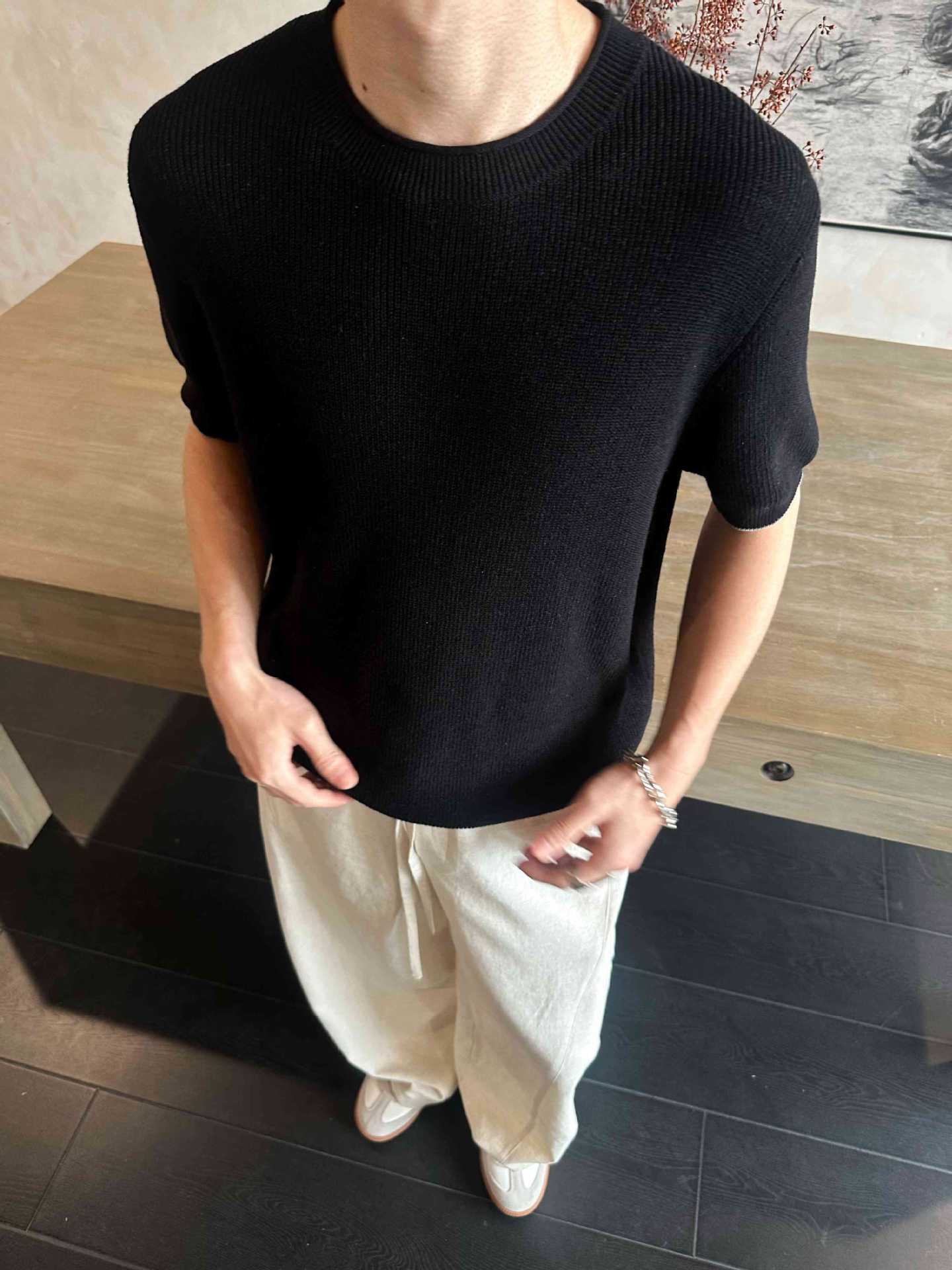 EME 남성 신사 고급 여름 니트 면 린넨 원사 올드 머니 릴렉스 통기성 라운드 넥 반팔 스웨터스토어 가기