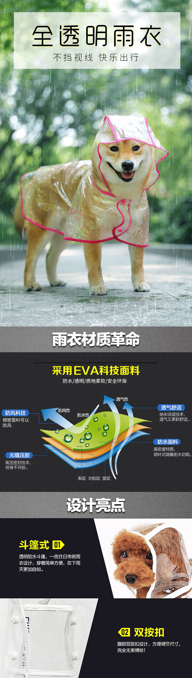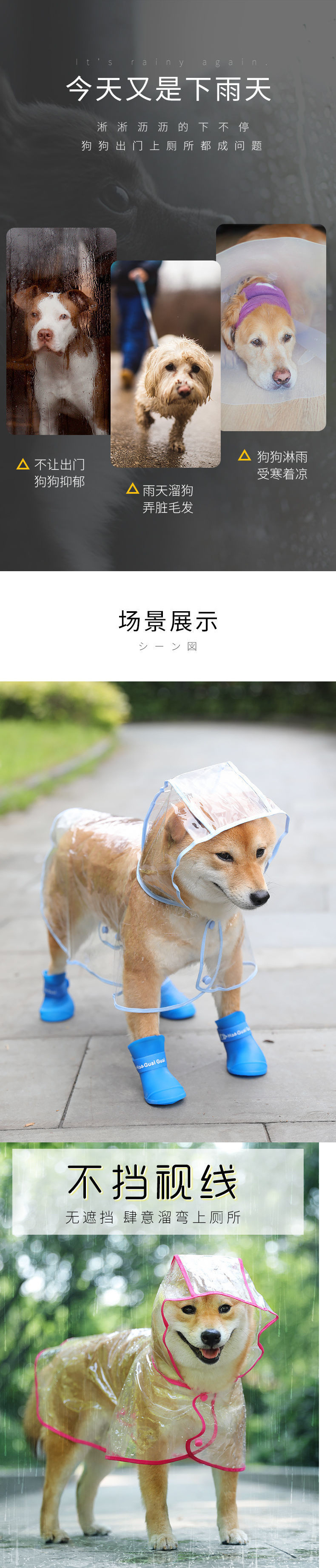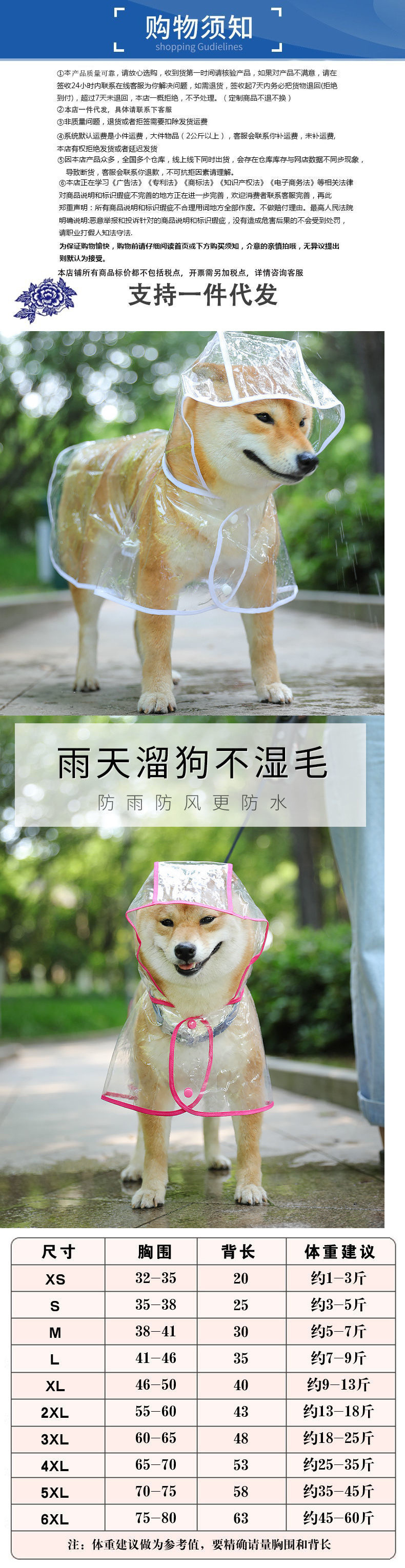 투명 강아지 비옷, 대형견 및 중형견 사모예드 테디 비숑 골든 리트리버 고양이 옷 애완동물 의류 용품스토어 가기