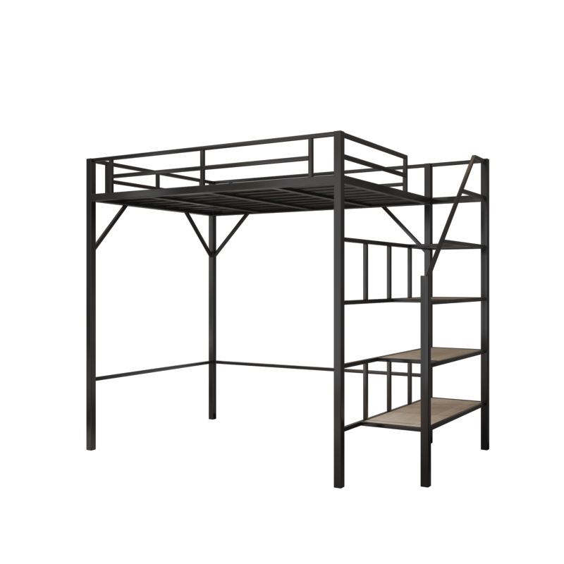 현대적인 미니멀리스트 철제 더블 침대, 빈 철제 프레임 로프트 하이 로우 기숙사 다기능 공간 절약형 로프트 침대