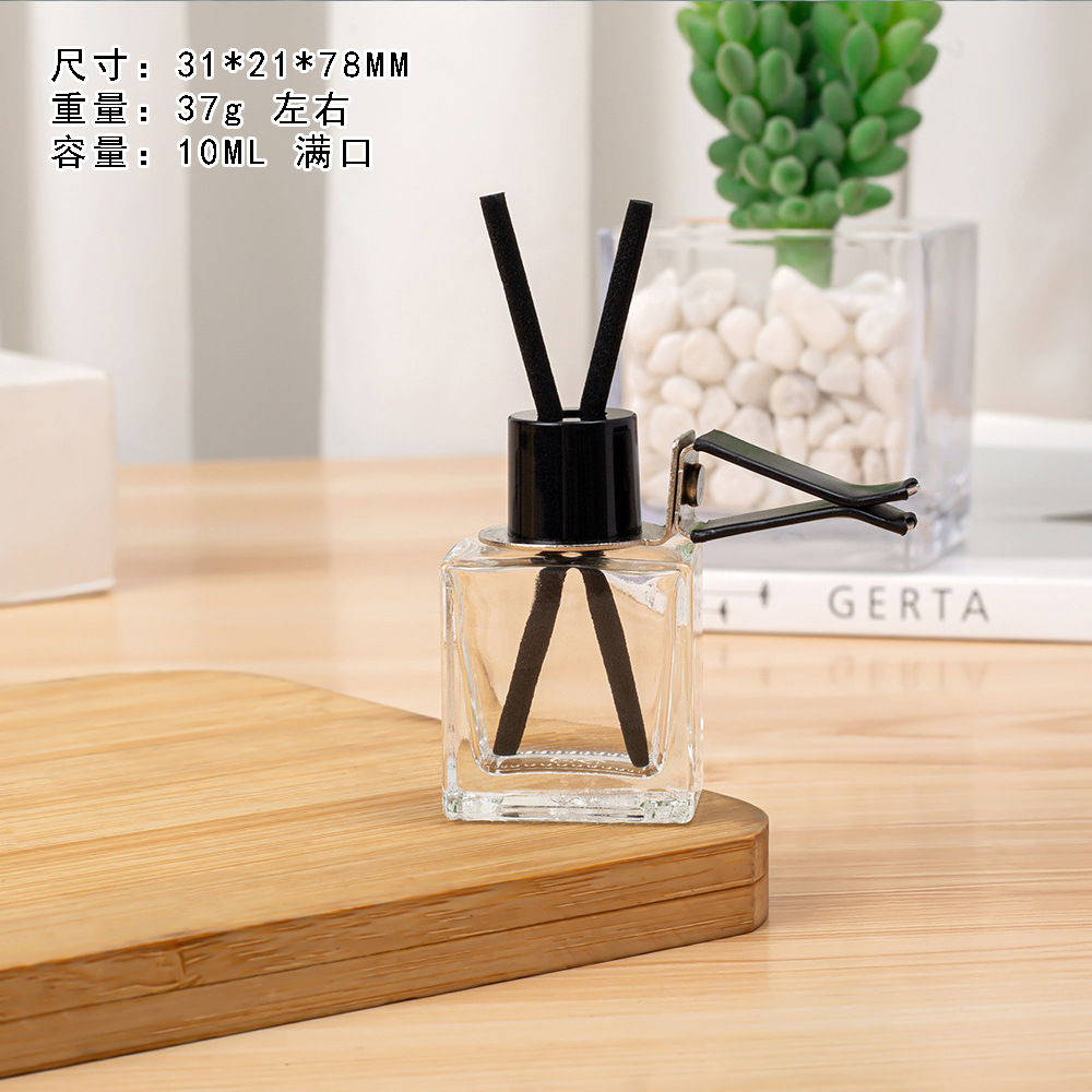 • 공기 배출구 검정색 커버 섬유 막대 - 평면 사각형 투명 병 - 10ML