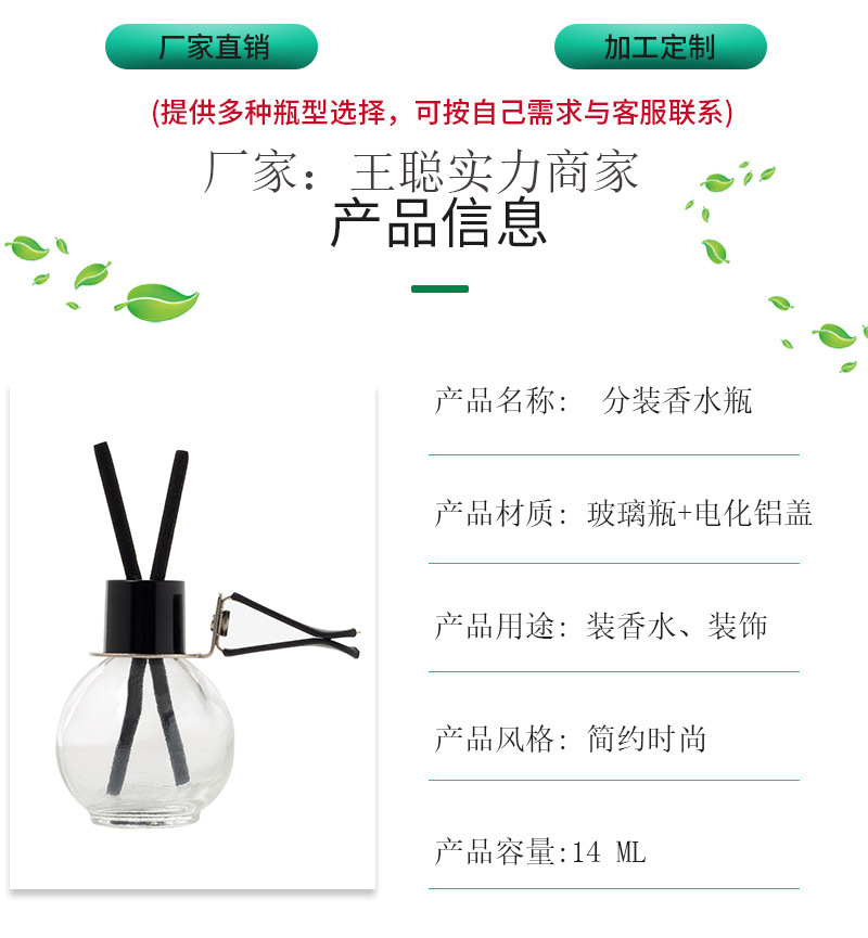 • 공기 배출구 검정색 커버 섬유 막대 - 구형 투명 병 - 14ML