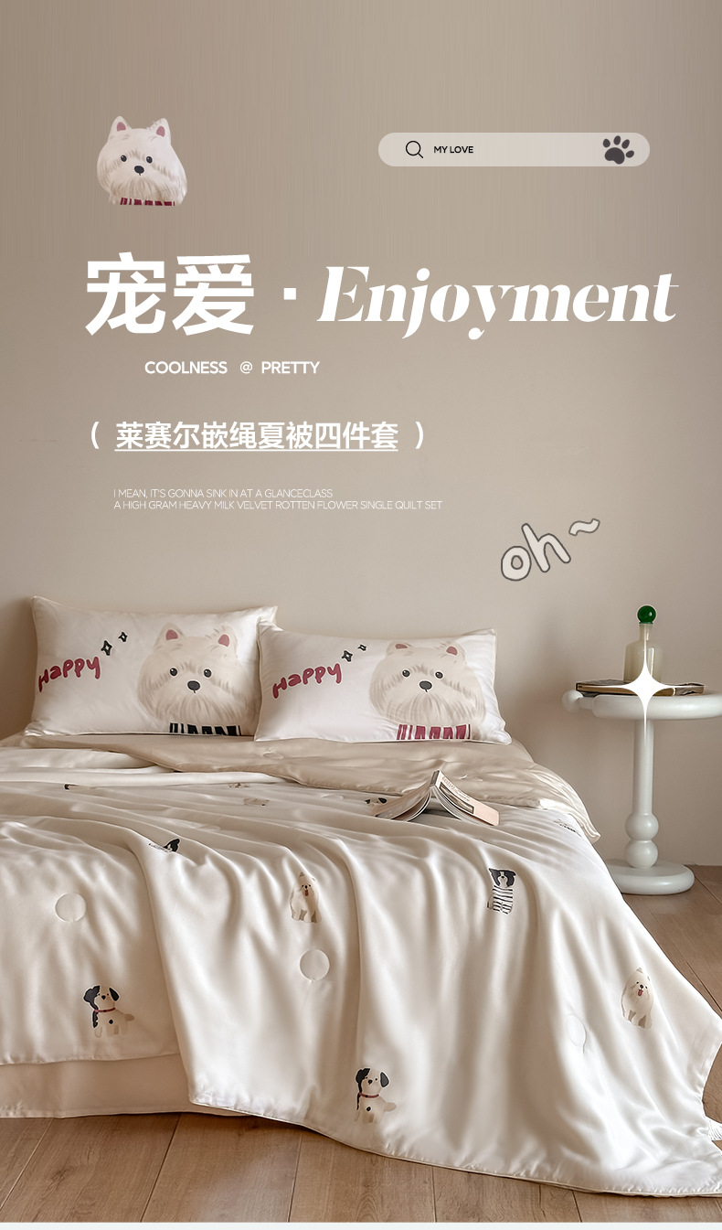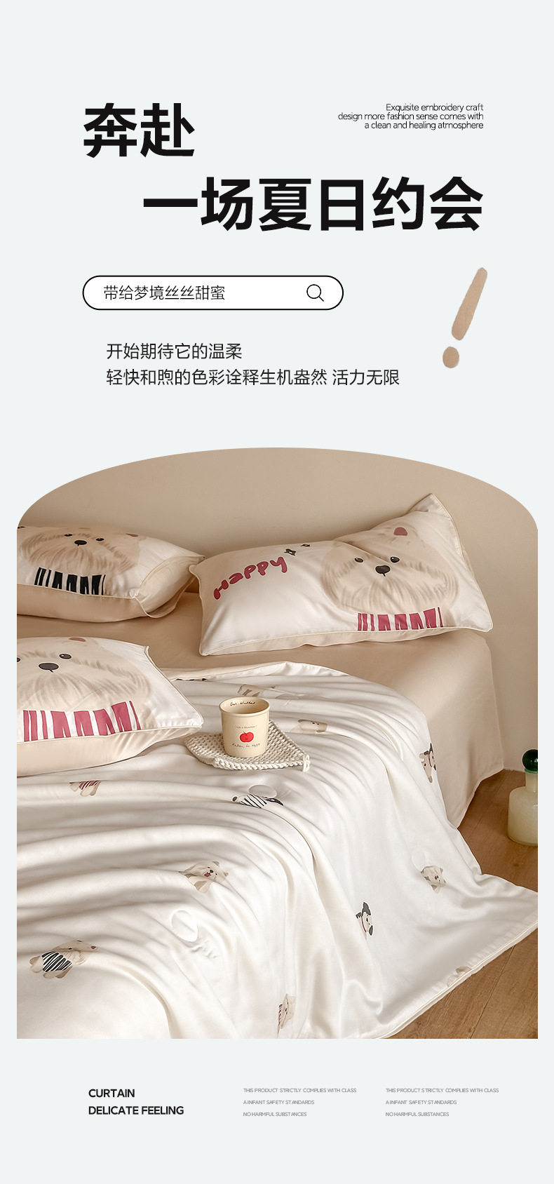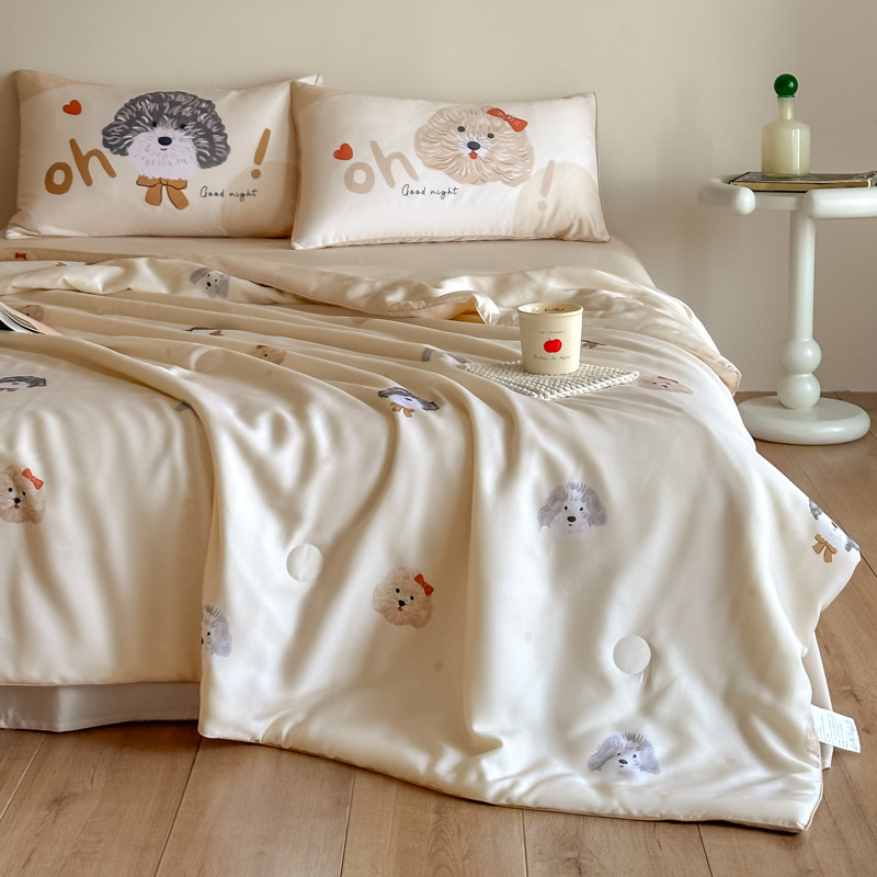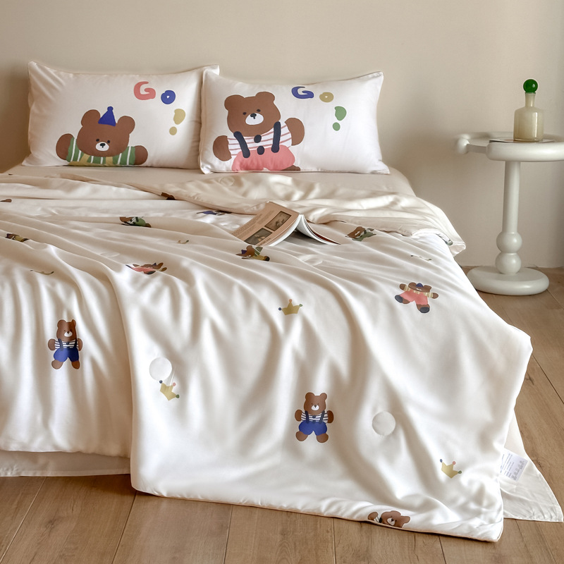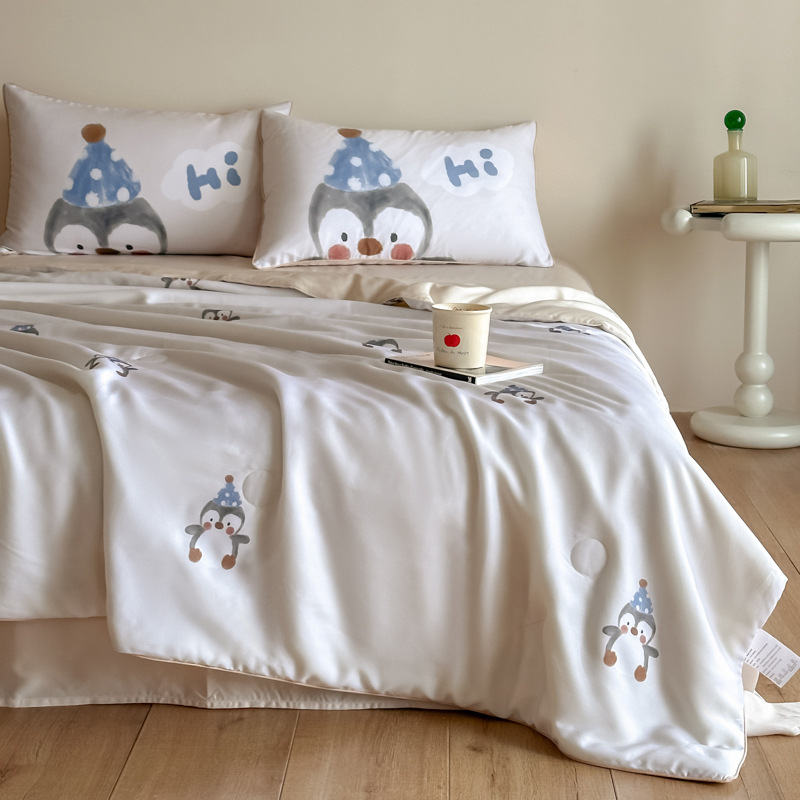 여름 리오셀 텐셀 어린이 만화 여름 쿨링 퀼트 4피스 싱글 및 더블 얇은 에어컨 퀼트 아이스 실크 실키 여름 퀼트스토어 가기