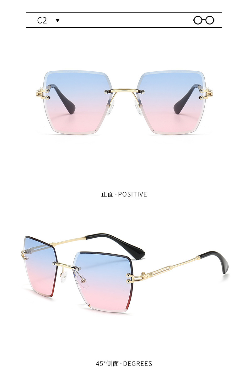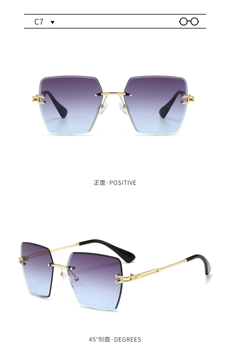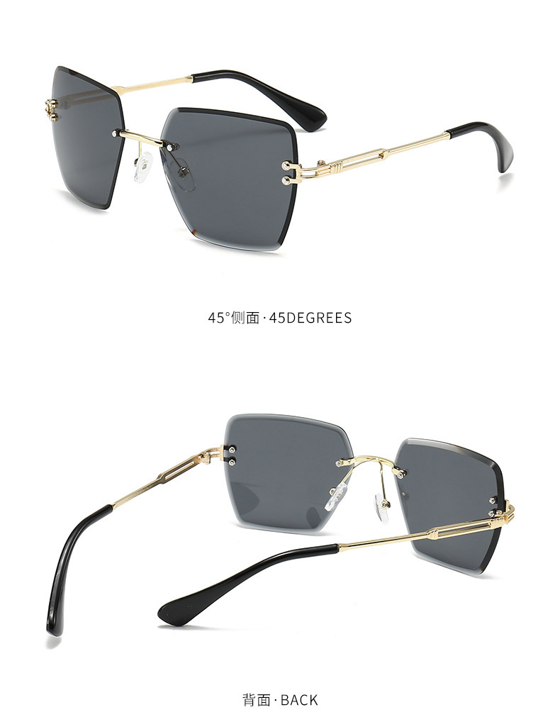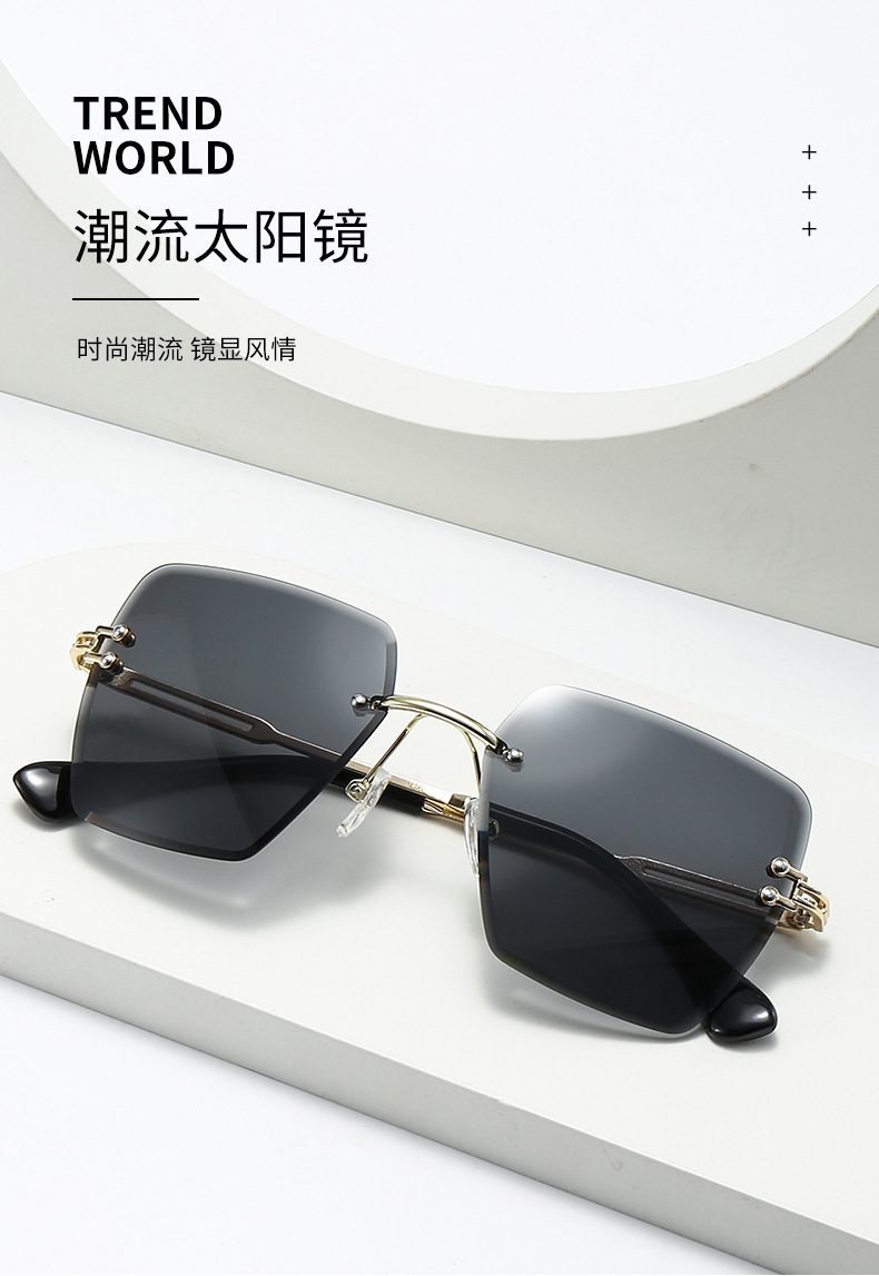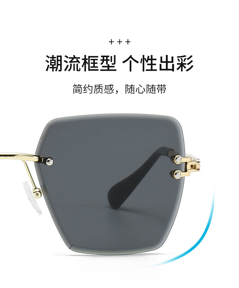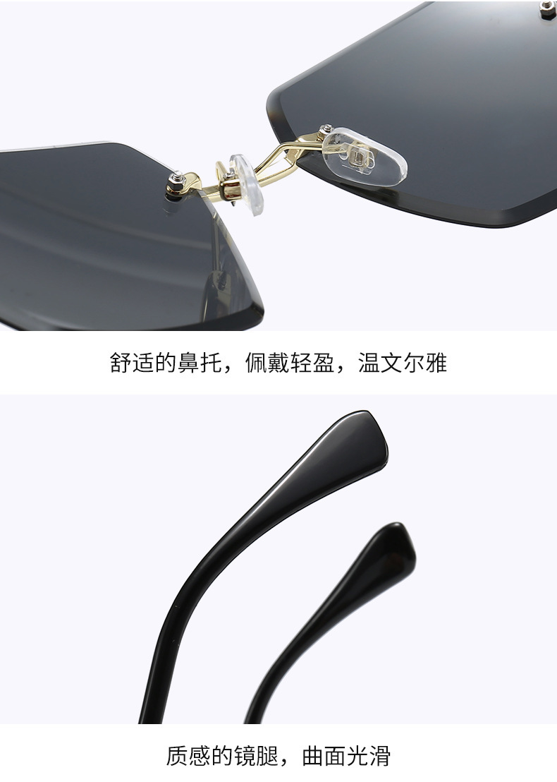 새로운 프레임리스 컷팅 선글라스 여성용 일본 및 한국 패션 사각 프레임 선글라스 크로스보더 INS 자외선 차단 선글라스