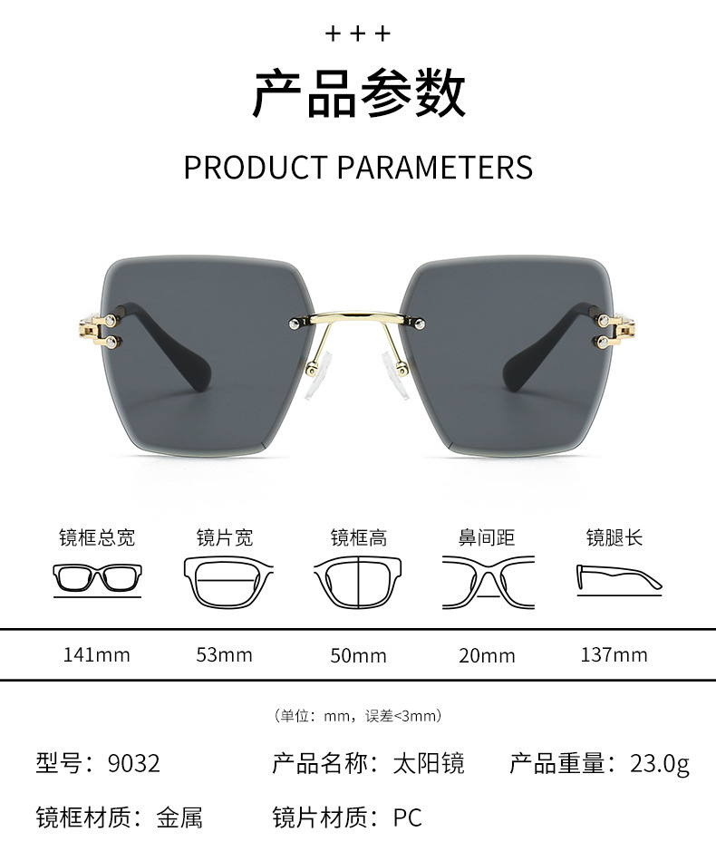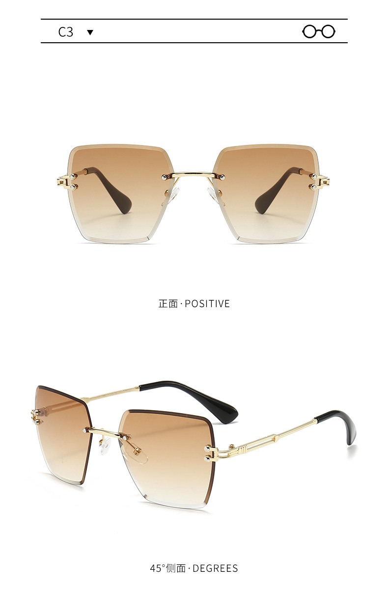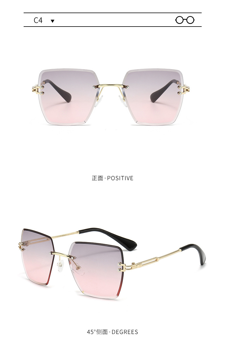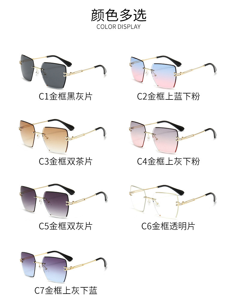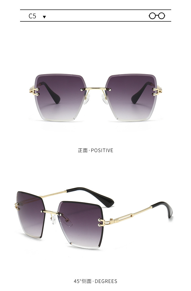 새로운 프레임리스 컷팅 선글라스 여성용 일본 및 한국 패션 사각 프레임 선글라스 크로스보더 INS 자외선 차단 선글라스