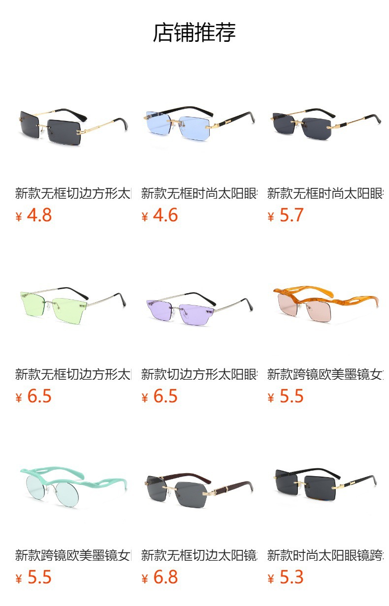 새로운 프레임리스 컷팅 선글라스 여성용 일본 및 한국 패션 사각 프레임 선글라스 크로스보더 INS 자외선 차단 선글라스스토어 가기