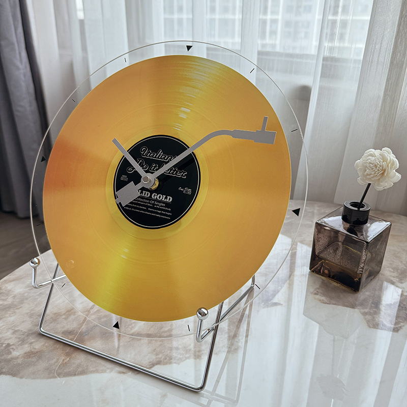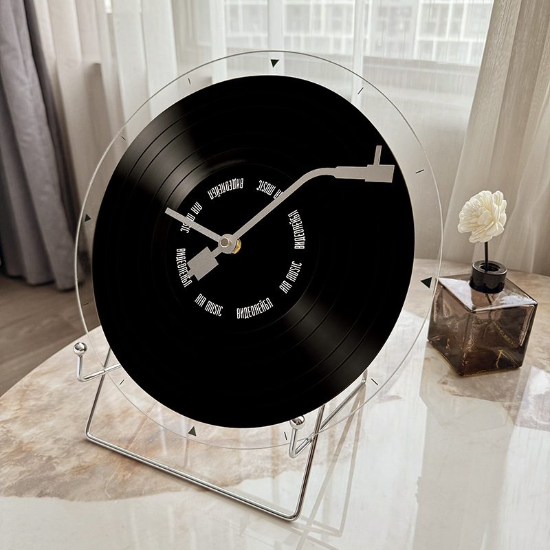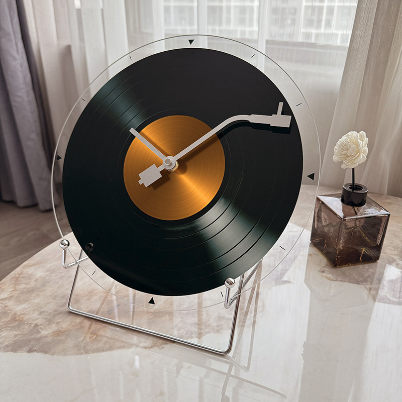 레트로 비닐 레코드 시계 일몰 벽시계 거실 사무실 책상 데스크탑 장식품 와인 캐비닛 TV 벽 장식