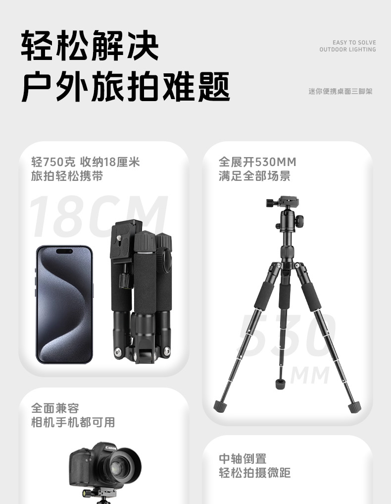 야외 미니 삼각대 헤드, 경량 및 휴대용 SLR 카메라 사진 마이크로 삼각대, 휴대폰 라이브 방송 스탠드스토어 가기