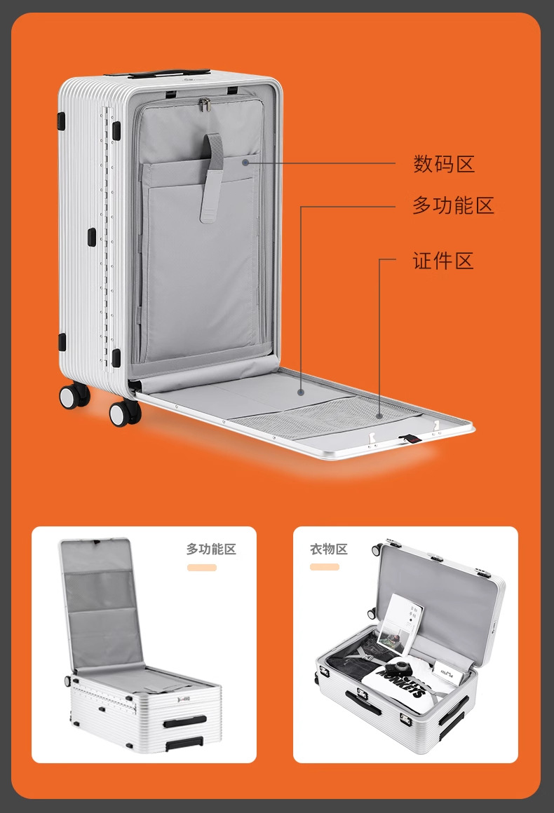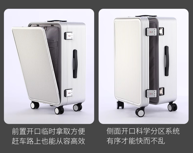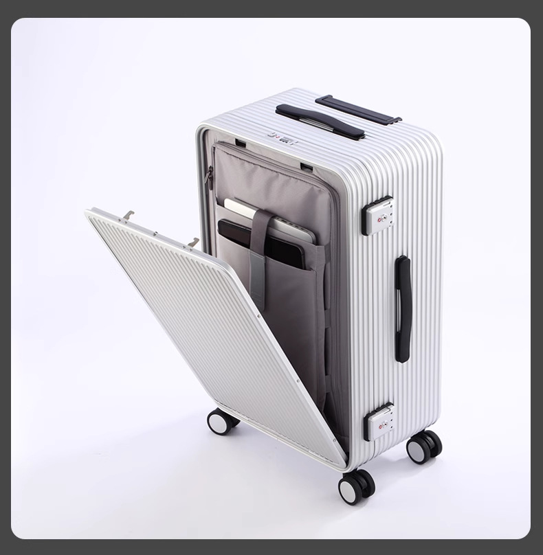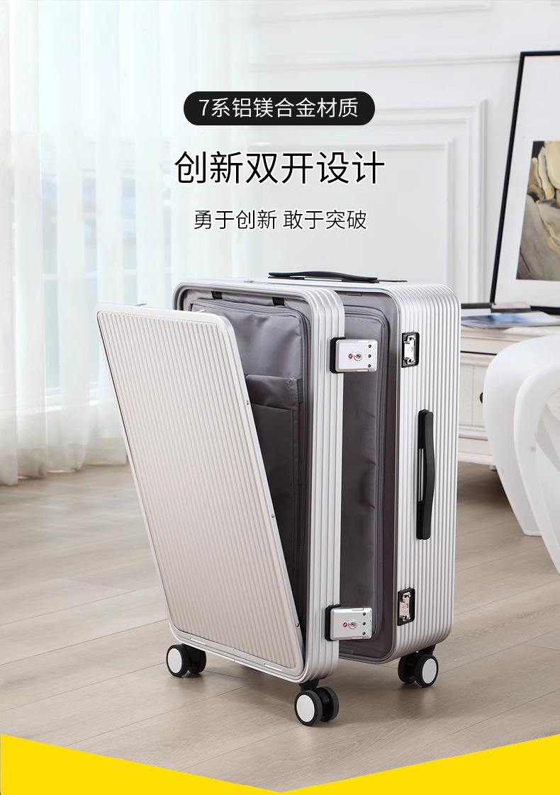 전면 개방형 알루미늄-마그네슘 합금 여행가방 20inch 탑승 케이스 금속 트롤리 측면 개방형 여행가방 24inch 비밀번호 가방