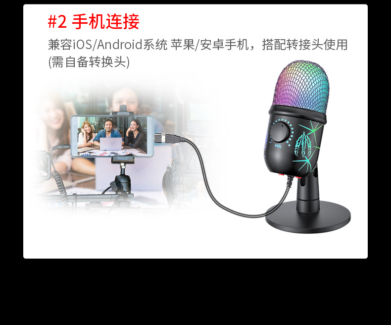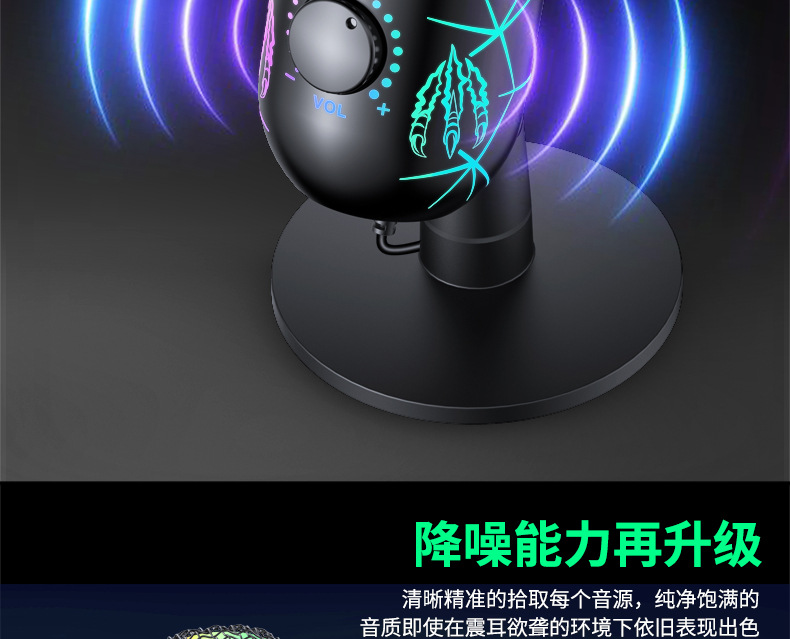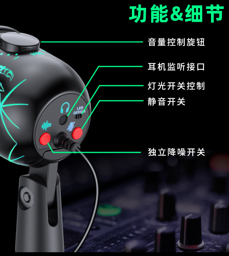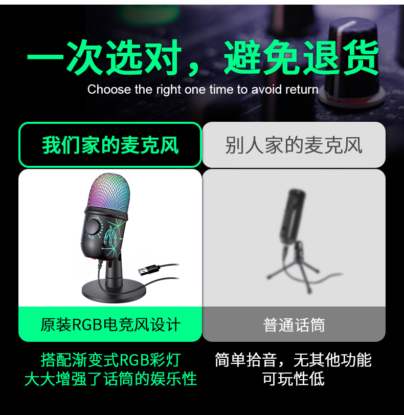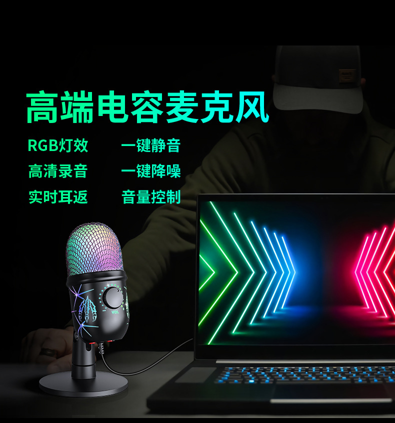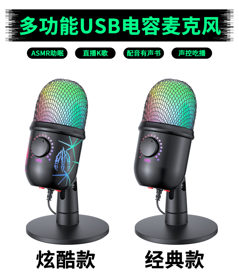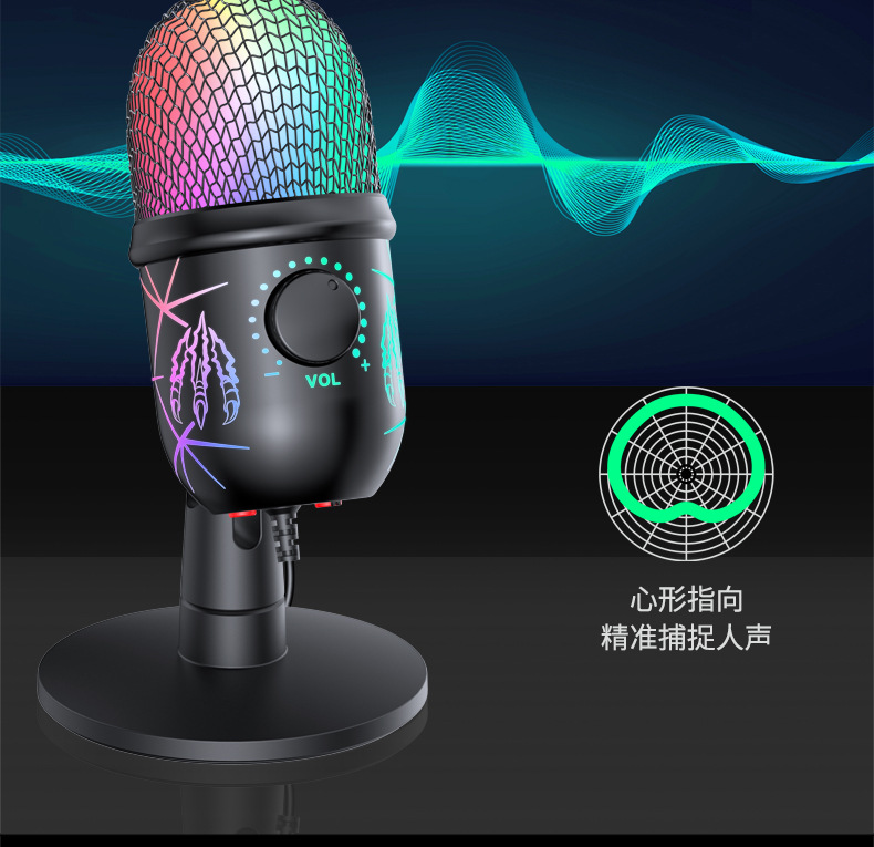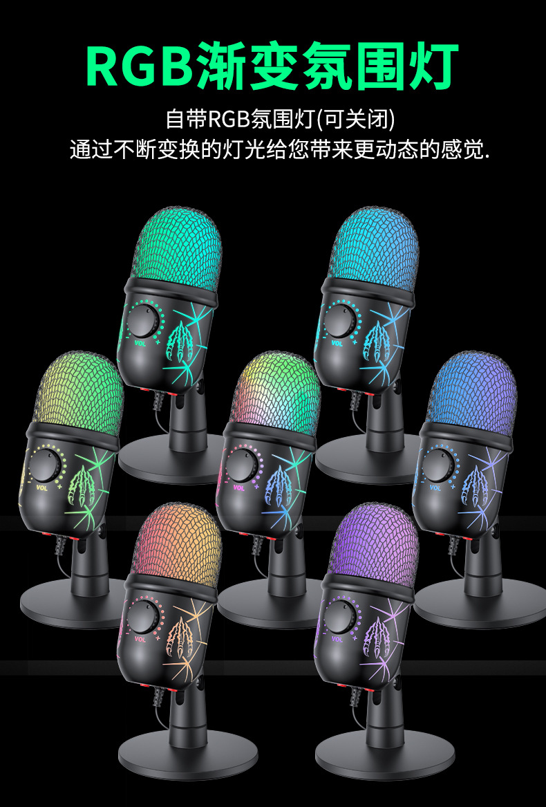 국경 간 신제품 V5 스타일 컴퓨터 녹음 라이브 방송 노래방 콘덴서 마이크 소음 감소 게임 e-스포츠 발광 RGB 마이크스토어 가기
