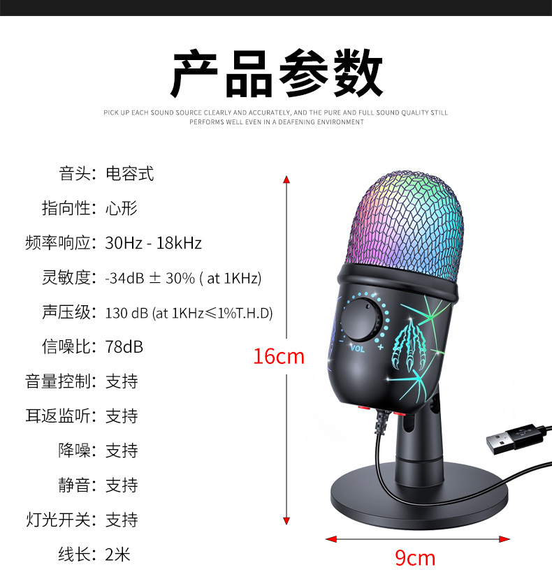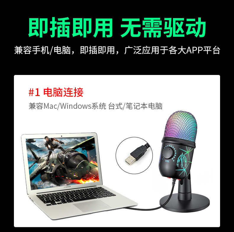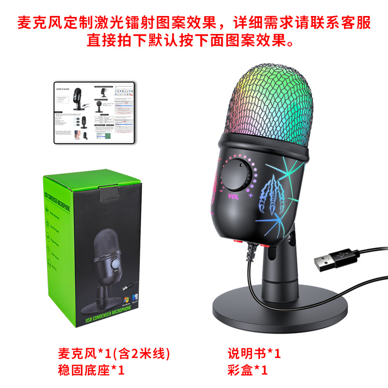 국경 간 신제품 V5 스타일 컴퓨터 녹음 라이브 방송 노래방 콘덴서 마이크 소음 감소 게임 e-스포츠 발광 RGB 마이크