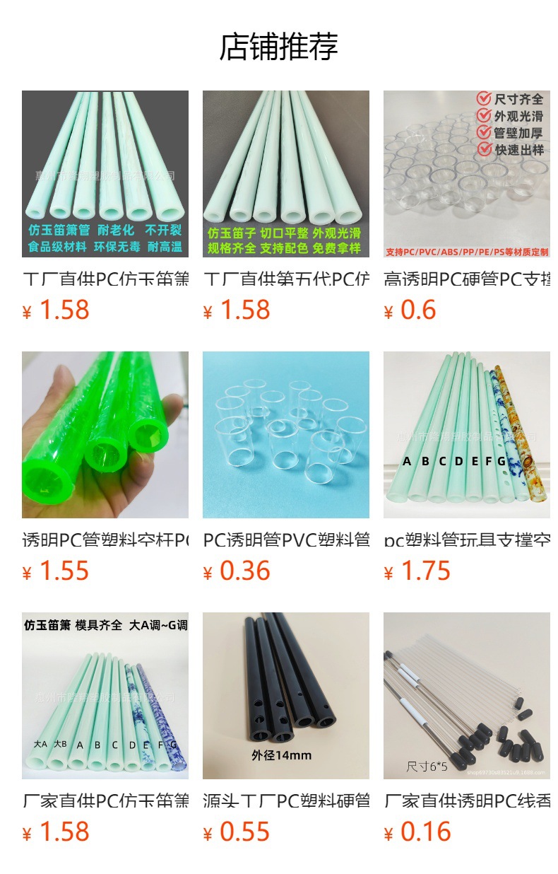 PC 투명 튜브 PC 플라스틱 플루트 PP 장난감 컬러 지지 튜브 ABS 컬러 튜브 PC 플라스틱 트레이닝 스틱스토어 가기