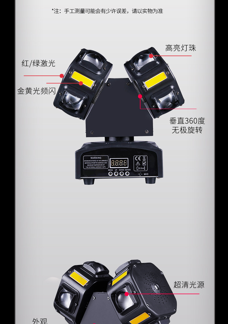 더블헤드 소형 게코 무대 조명 ktv 바 무대 조명 실내 파티 분위기 조명 회전식 레이저 빔 조명스토어 가기
