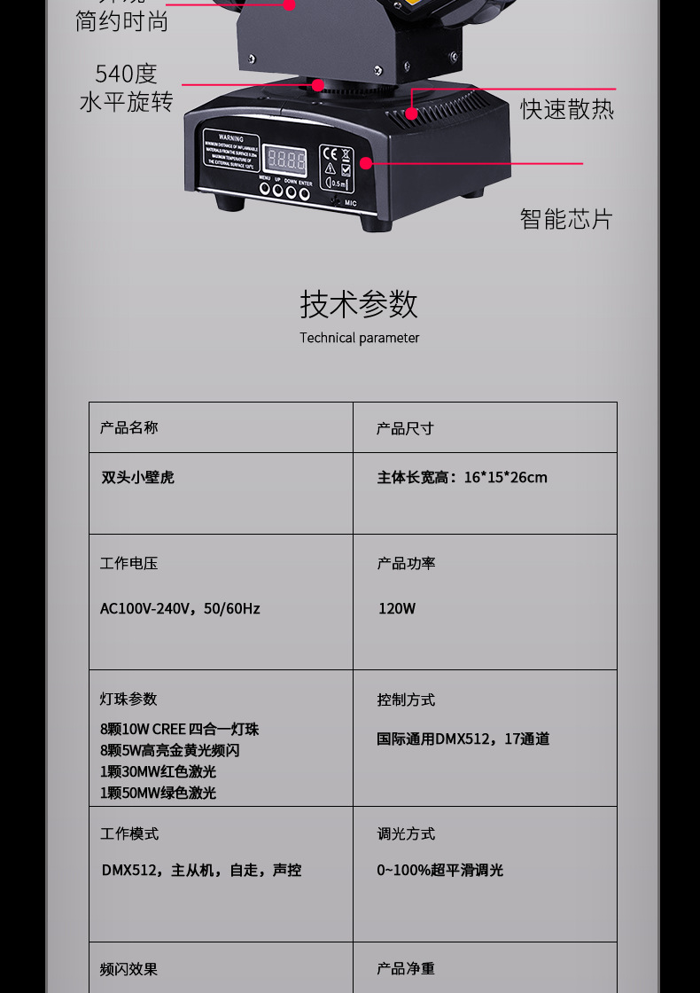 더블헤드 소형 게코 무대 조명 ktv 바 무대 조명 실내 파티 분위기 조명 회전식 레이저 빔 조명