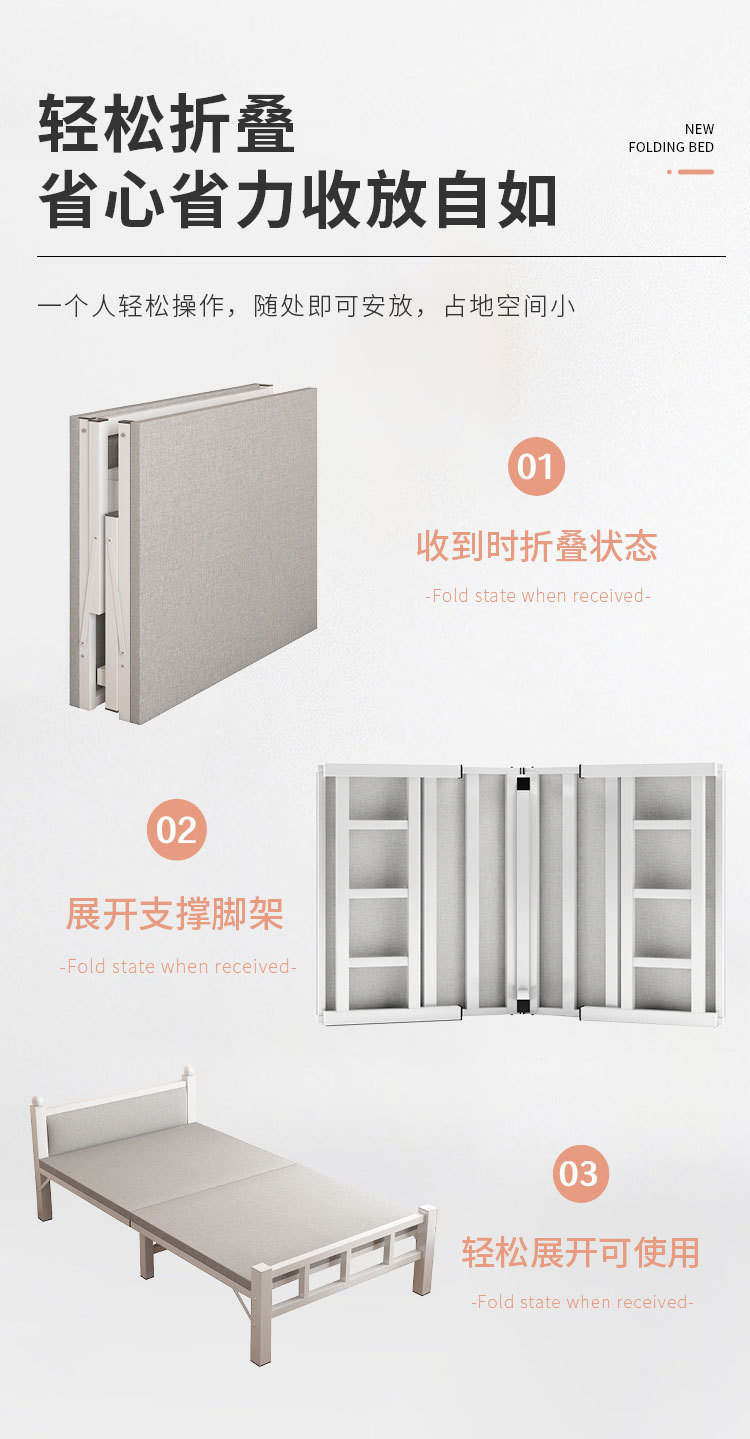 접이식 침대 싱글 침대 가정용 간단한 휴대용 침대 임대실 철제 침대 사무실 점심 시간 낮잠 침대 나무 침대