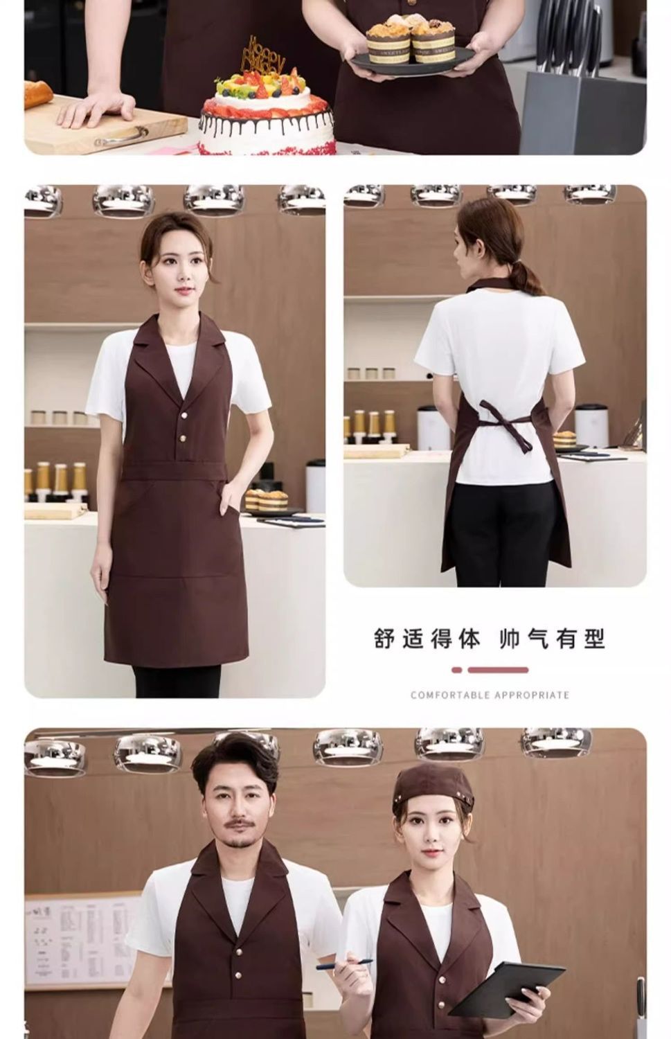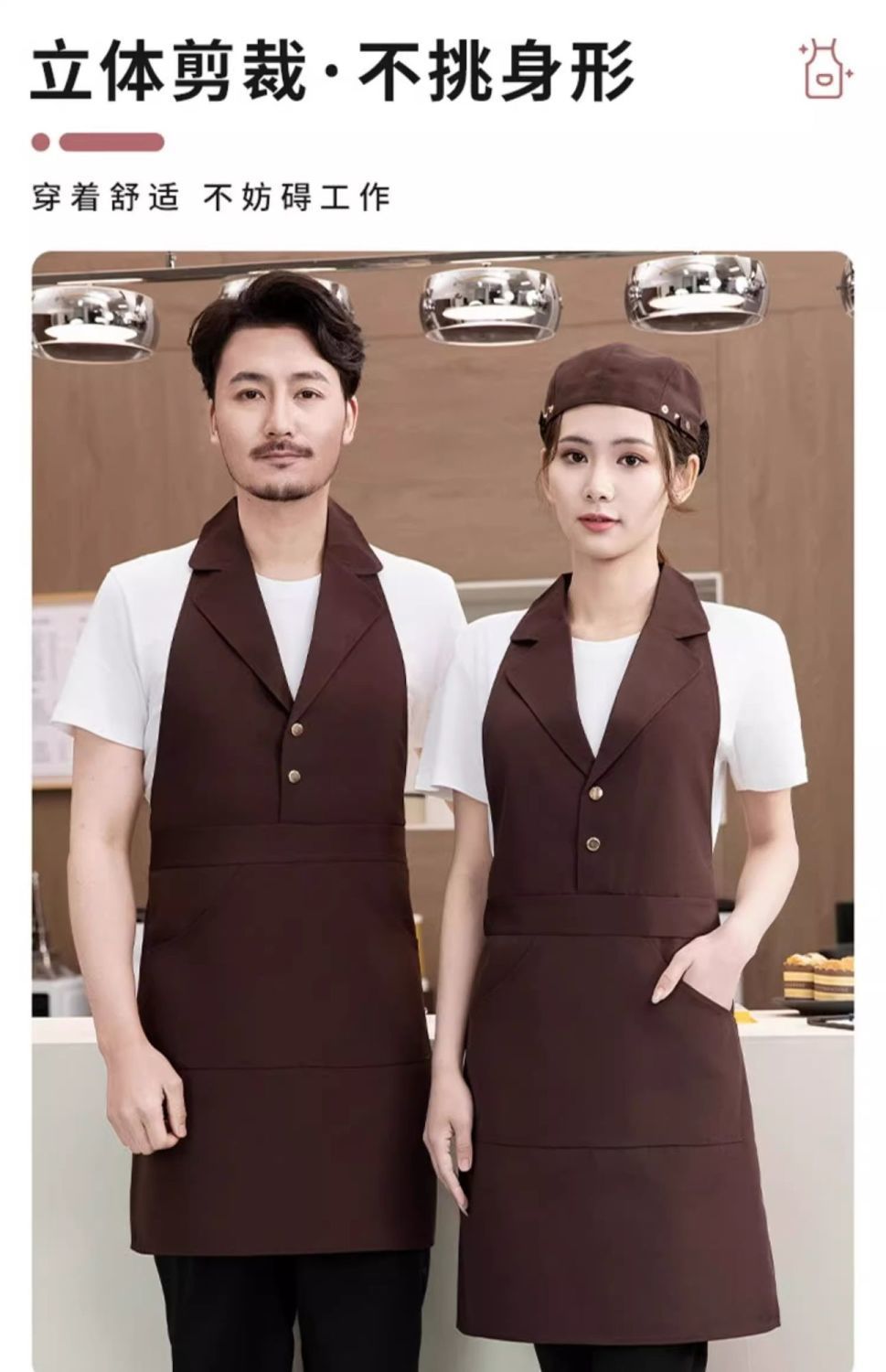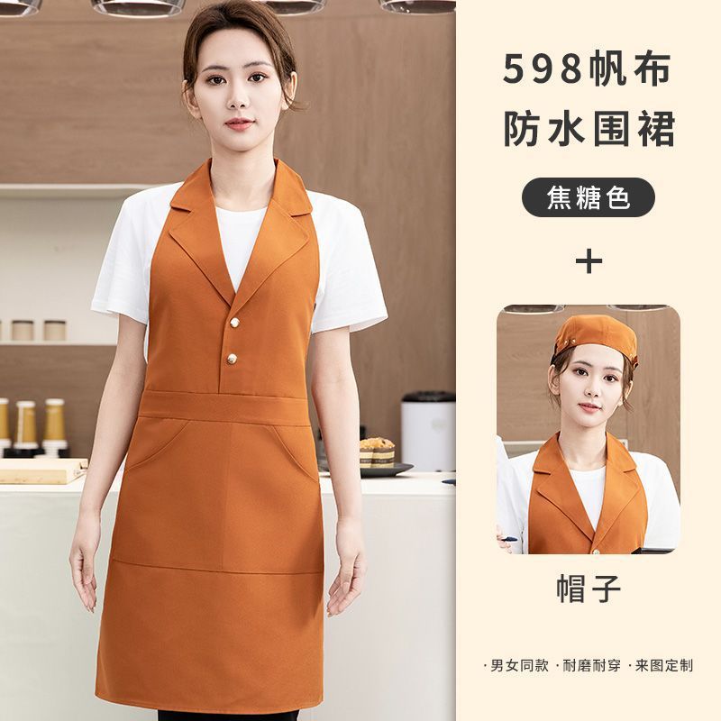 • [슈트칼라] XHHS-598 앞치마 카라멜색+모자
