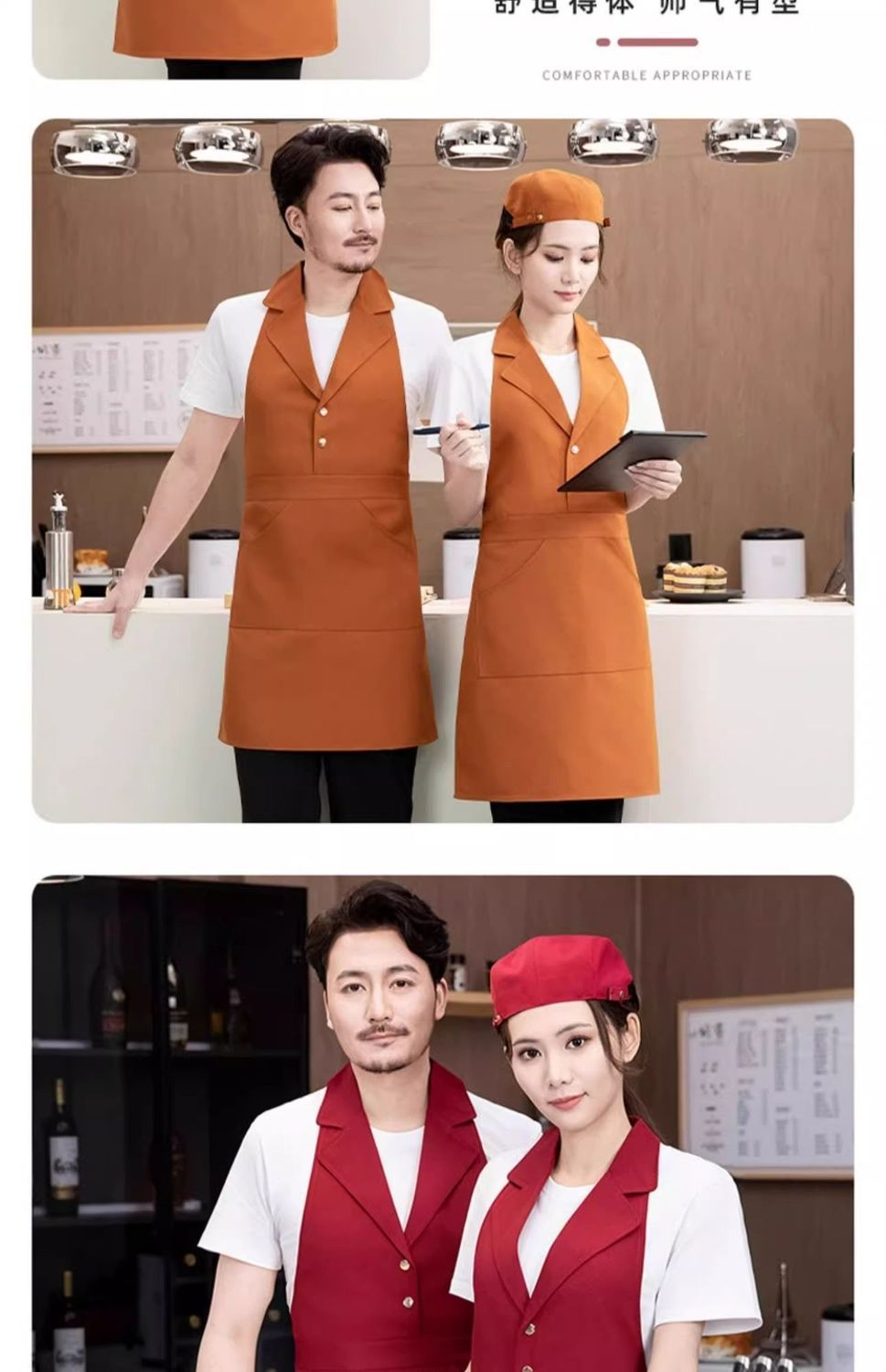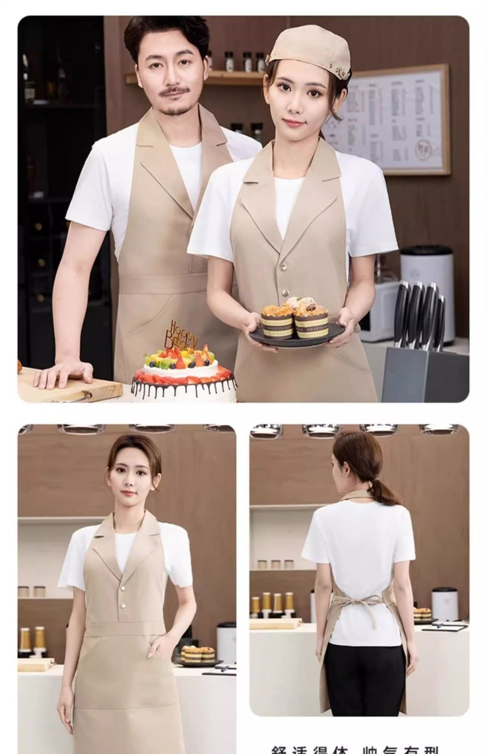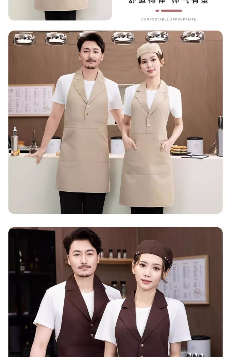 • [슈트칼라] XHHS-598 앞치마 카라멜색+모자