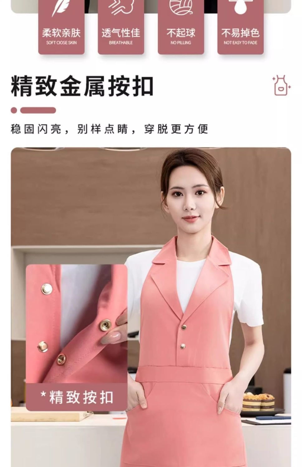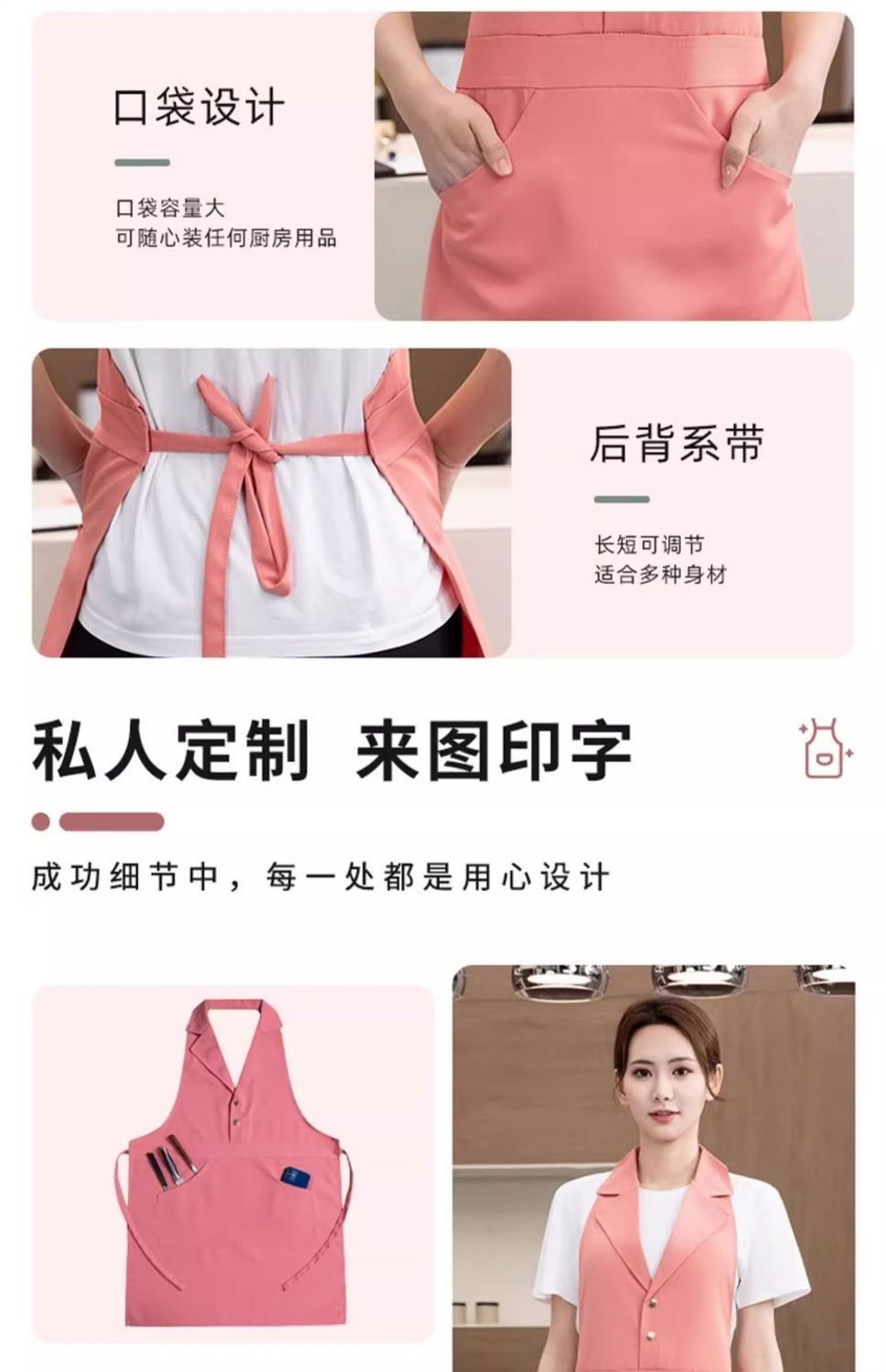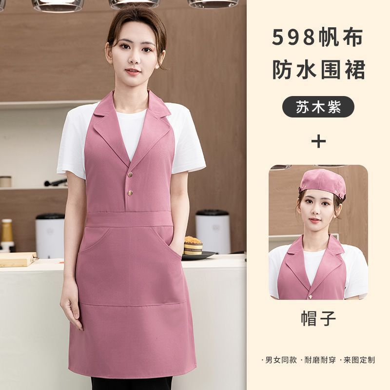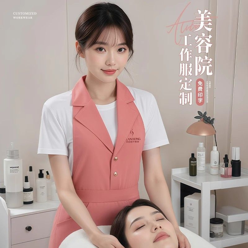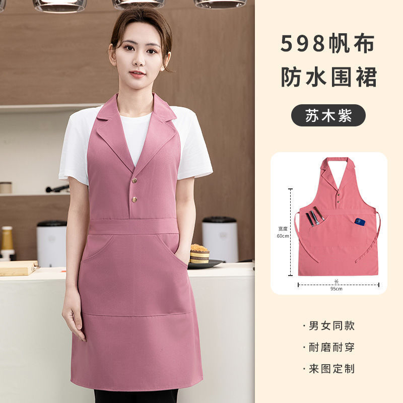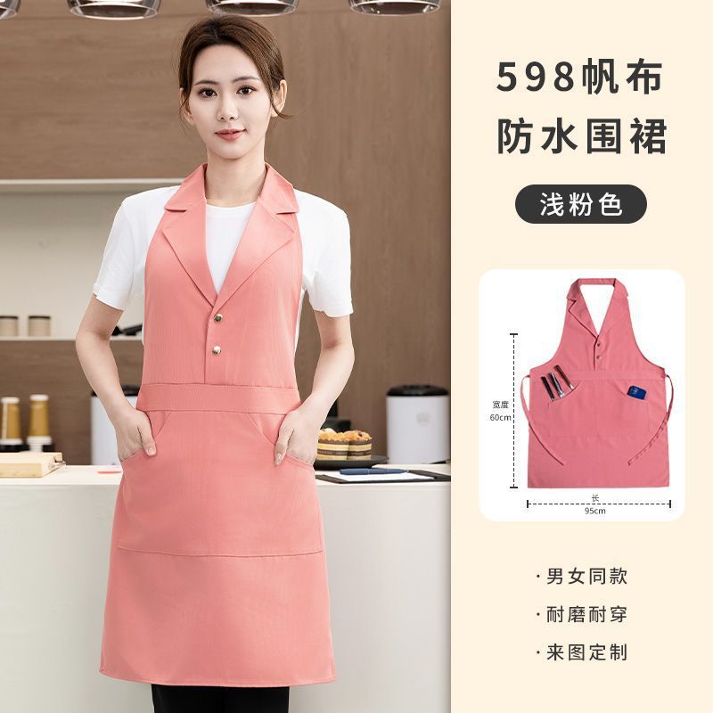 네일 아트 및 속눈썹 매장용 맞춤형 로고가 인쇄된 미용실 앞치마 핑크 슈트 라펠 방수 캔버스 앞치마 작업