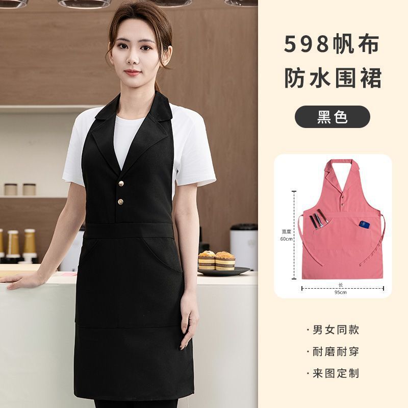 네일 아트 및 속눈썹 매장용 맞춤형 로고가 인쇄된 미용실 앞치마 핑크 슈트 라펠 방수 캔버스 앞치마 작업스토어 가기