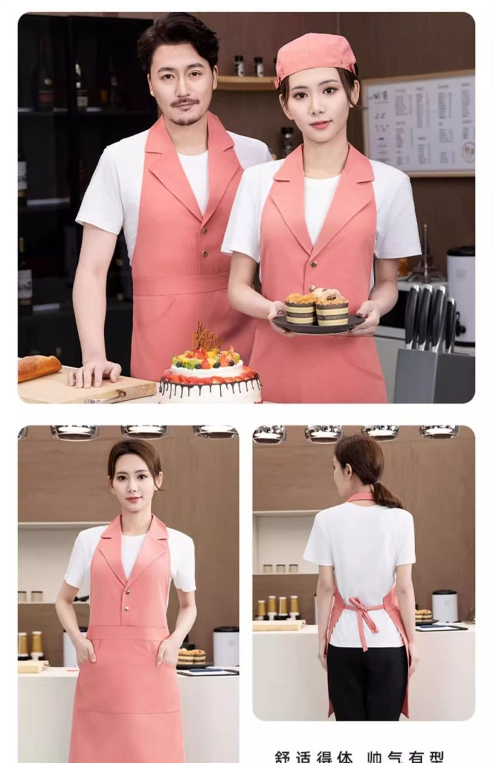 • [슈트칼라] XHHS-598 앞치마 라이트핑크 + 모자