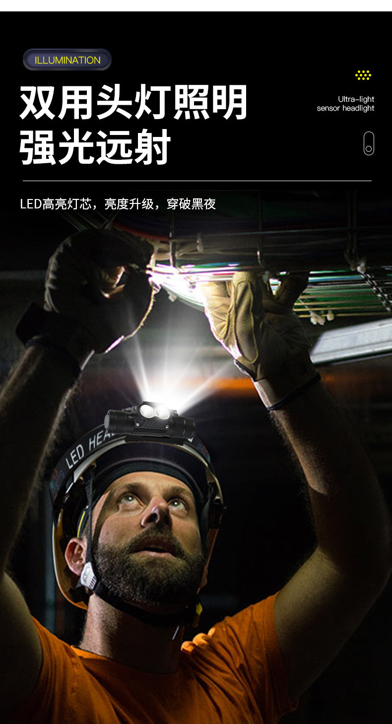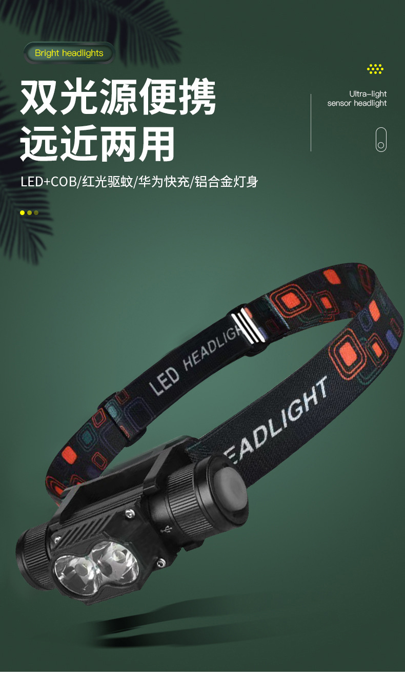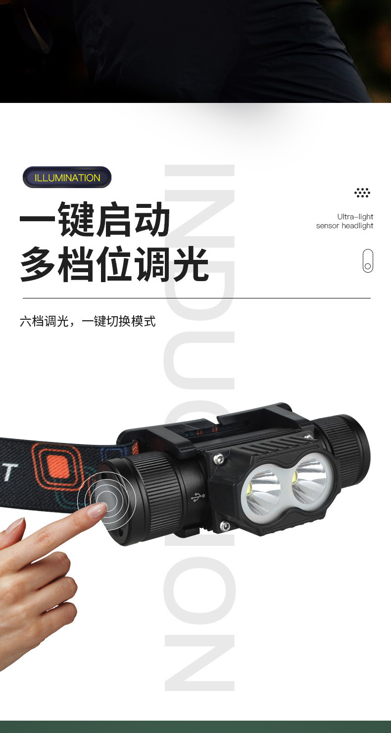 새로운 LED 헤드라이트 Type-C 충전 야외 사이클링 및 달리기 탈착식 빨간색 경고등 헤드라이트