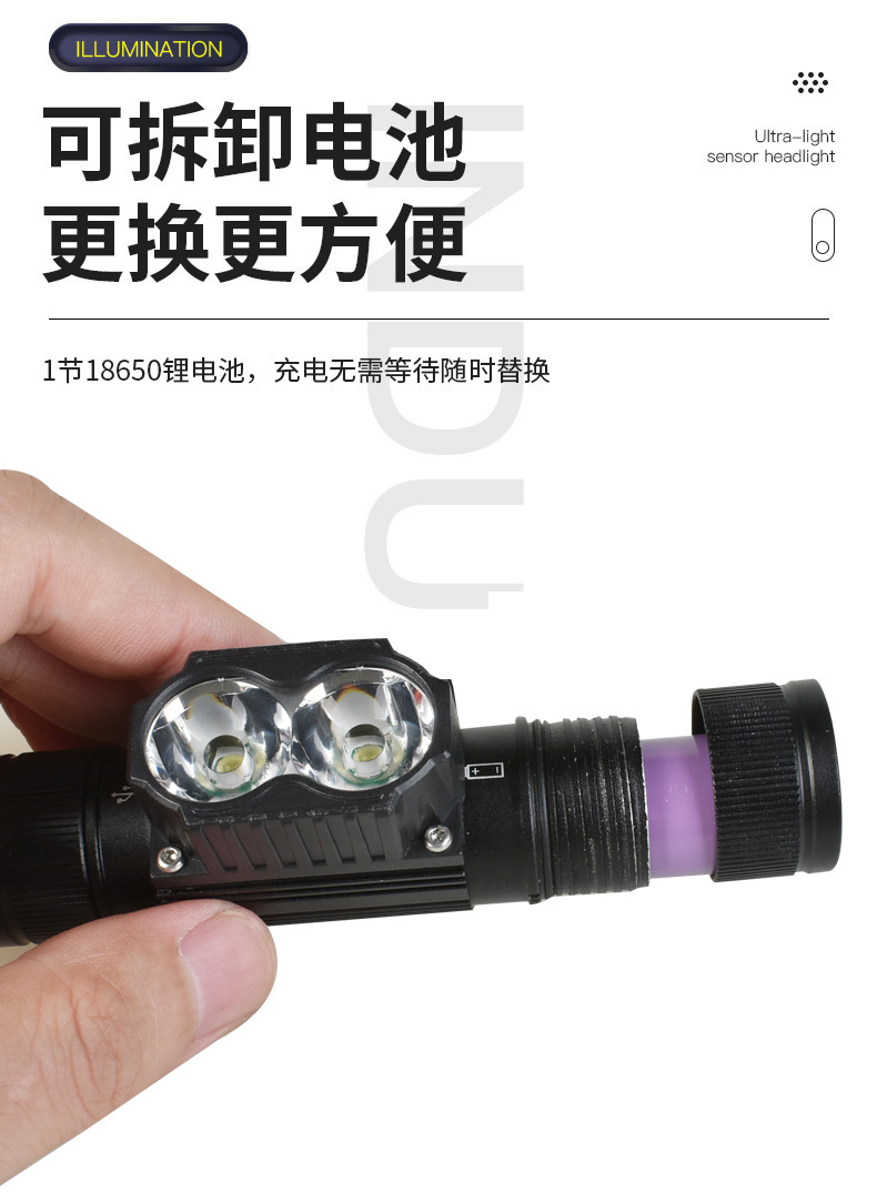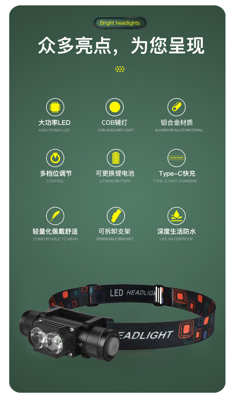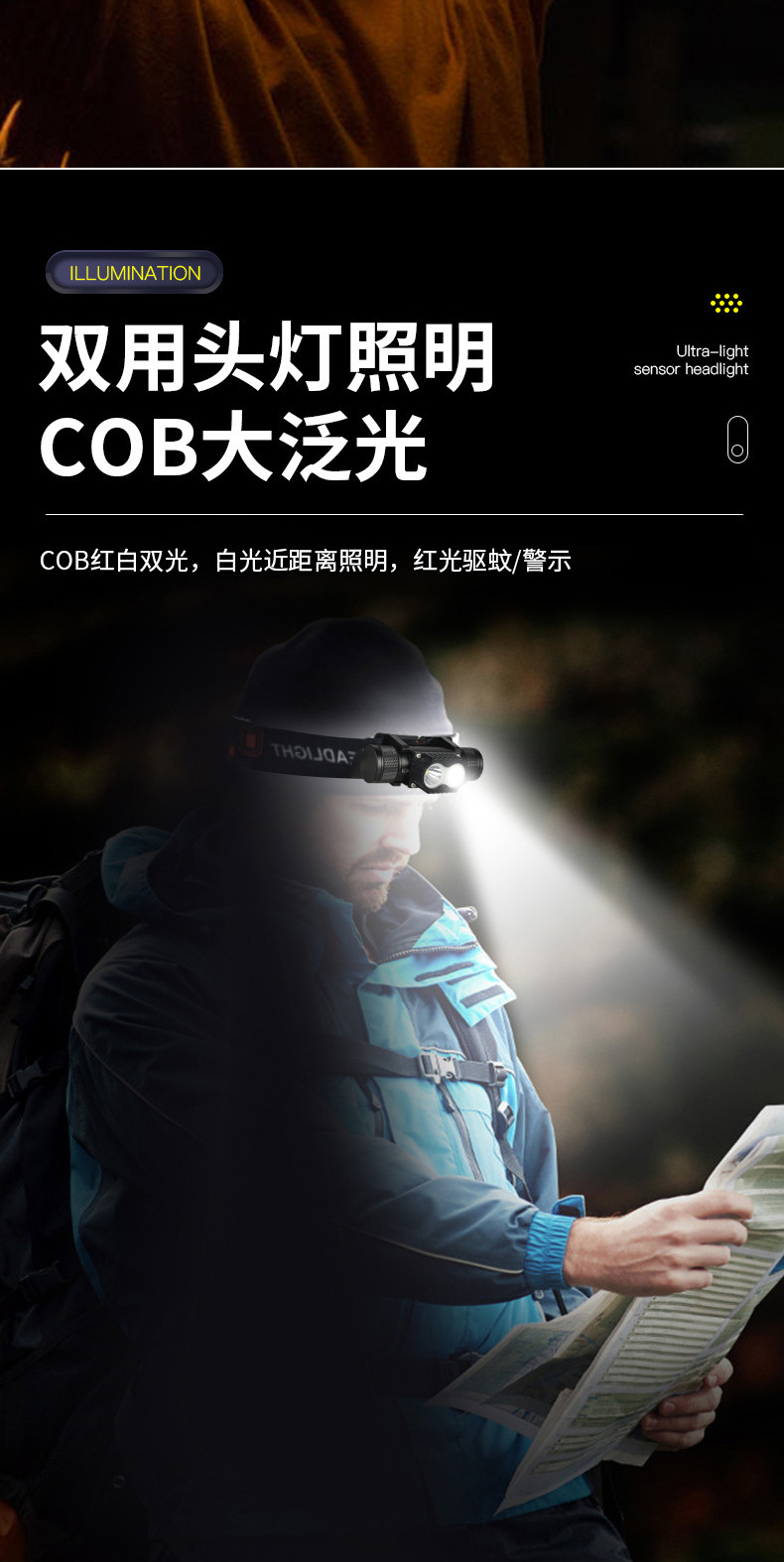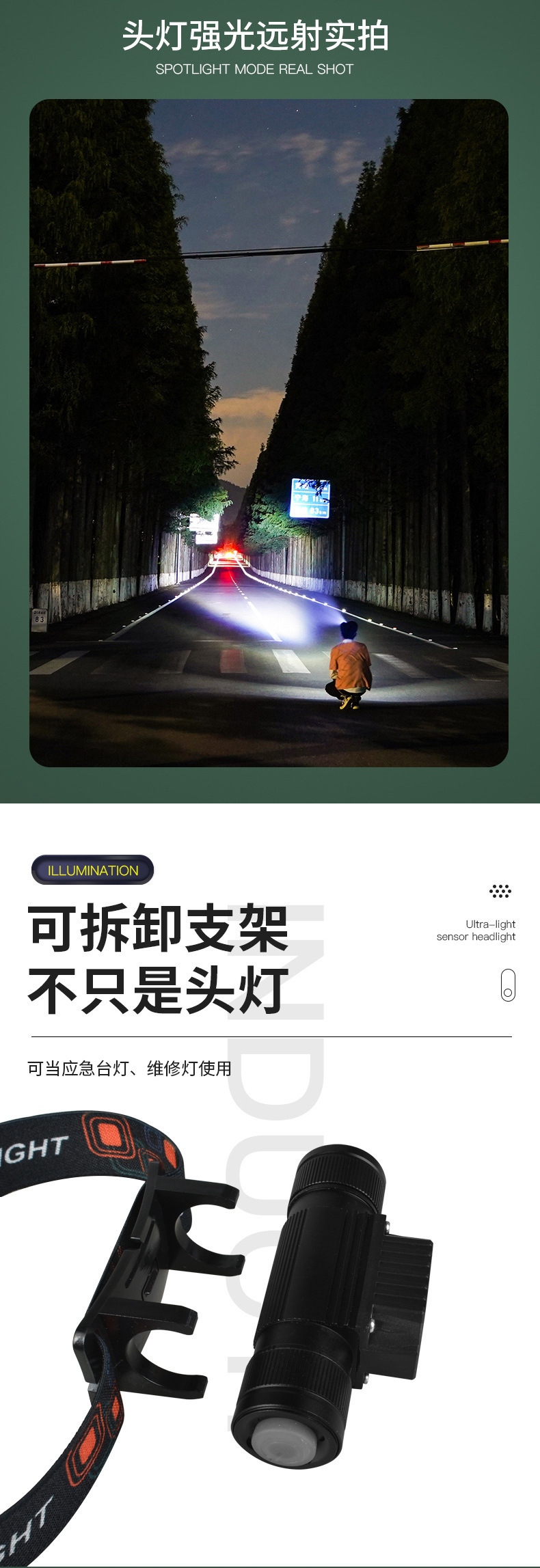 새로운 LED 헤드라이트 Type-C 충전 야외 사이클링 및 달리기 탈착식 빨간색 경고등 헤드라이트