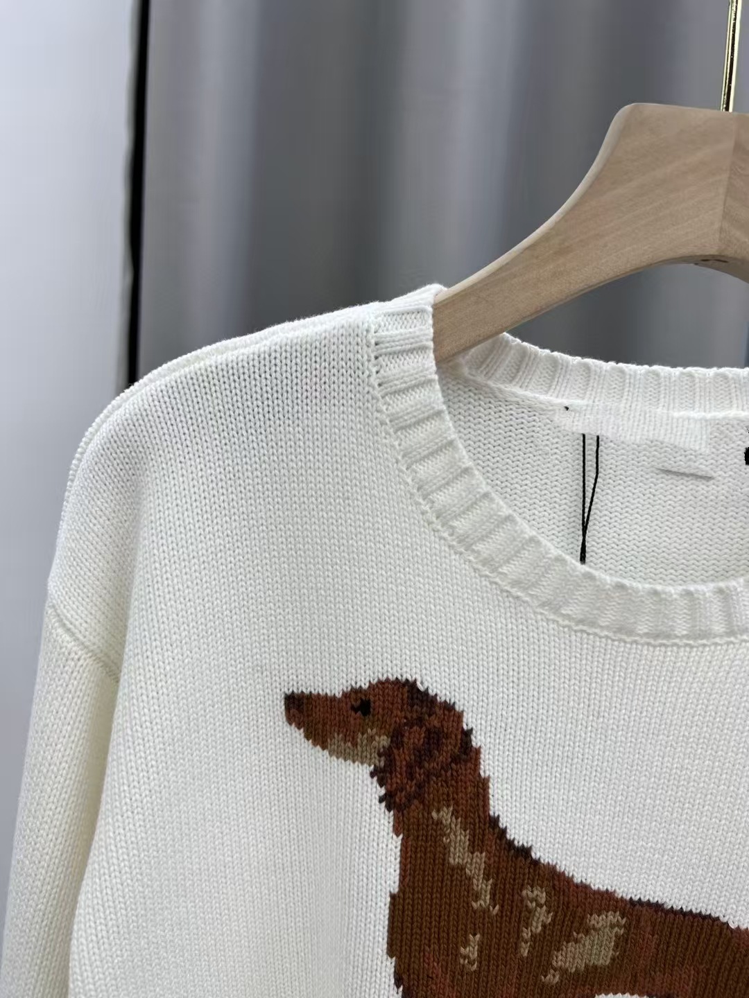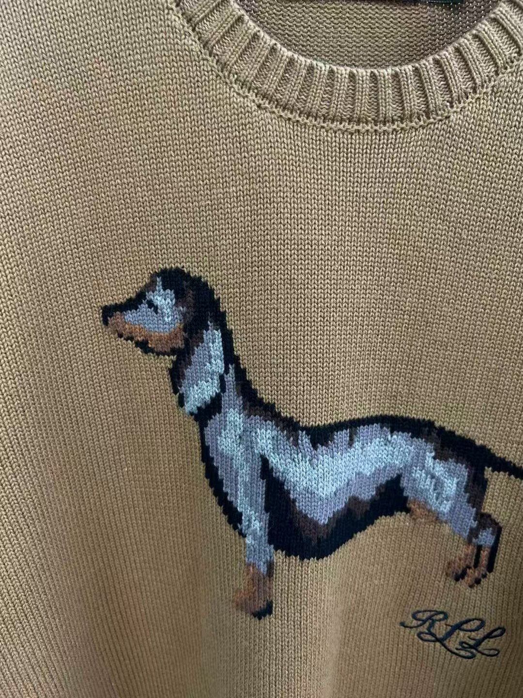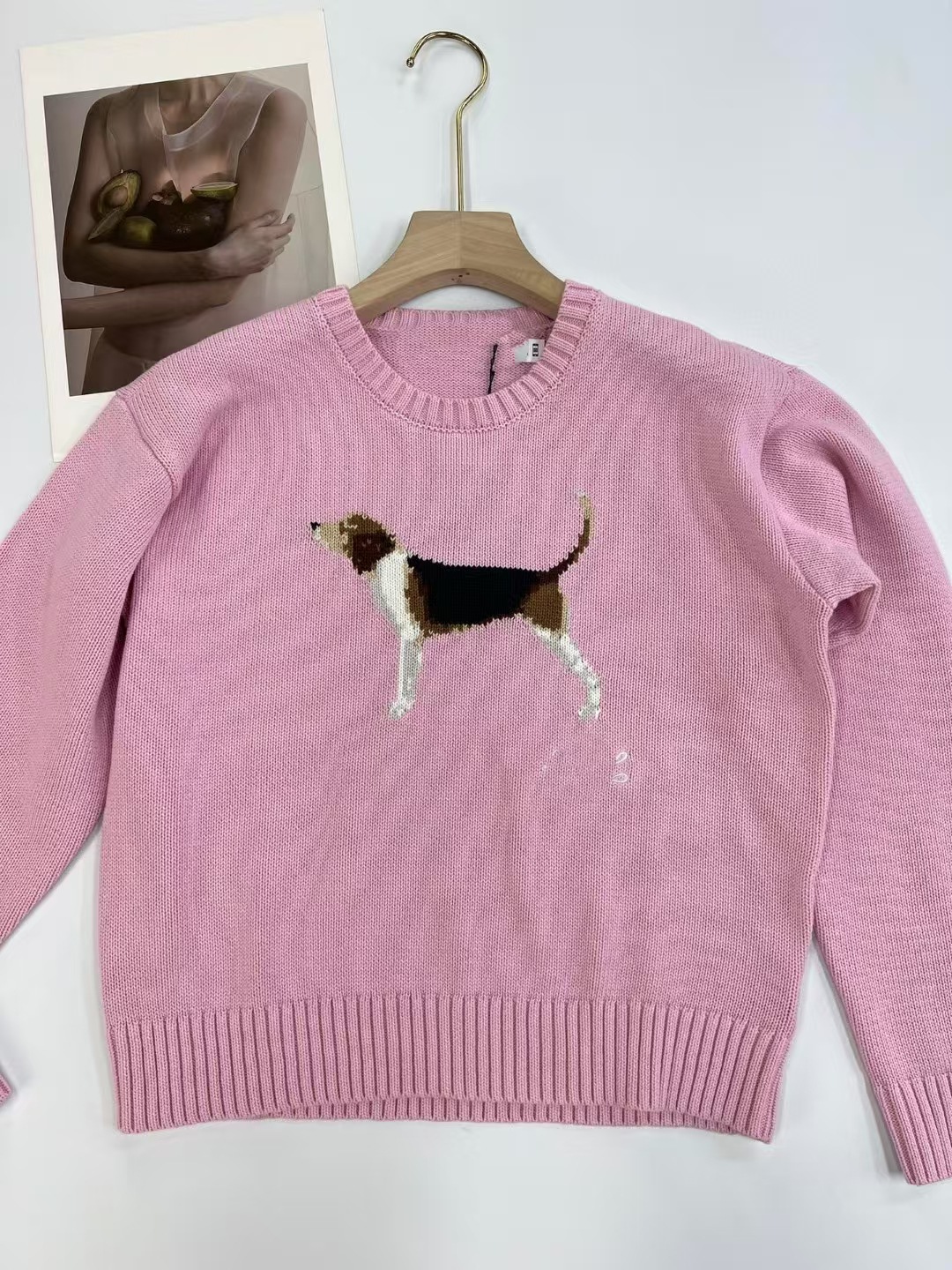 유럽과 미국의 R~L 여성용 순면 닥스훈트 자카드 패턴 하이웨이스트 짧은 라운드 넥 풀오버 니트 탑 스웨터스토어 가기