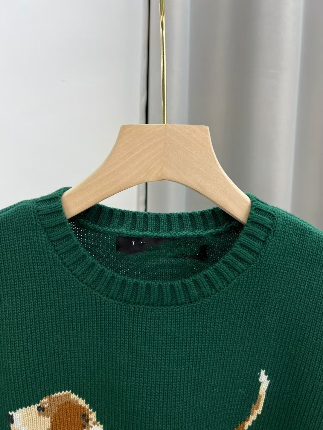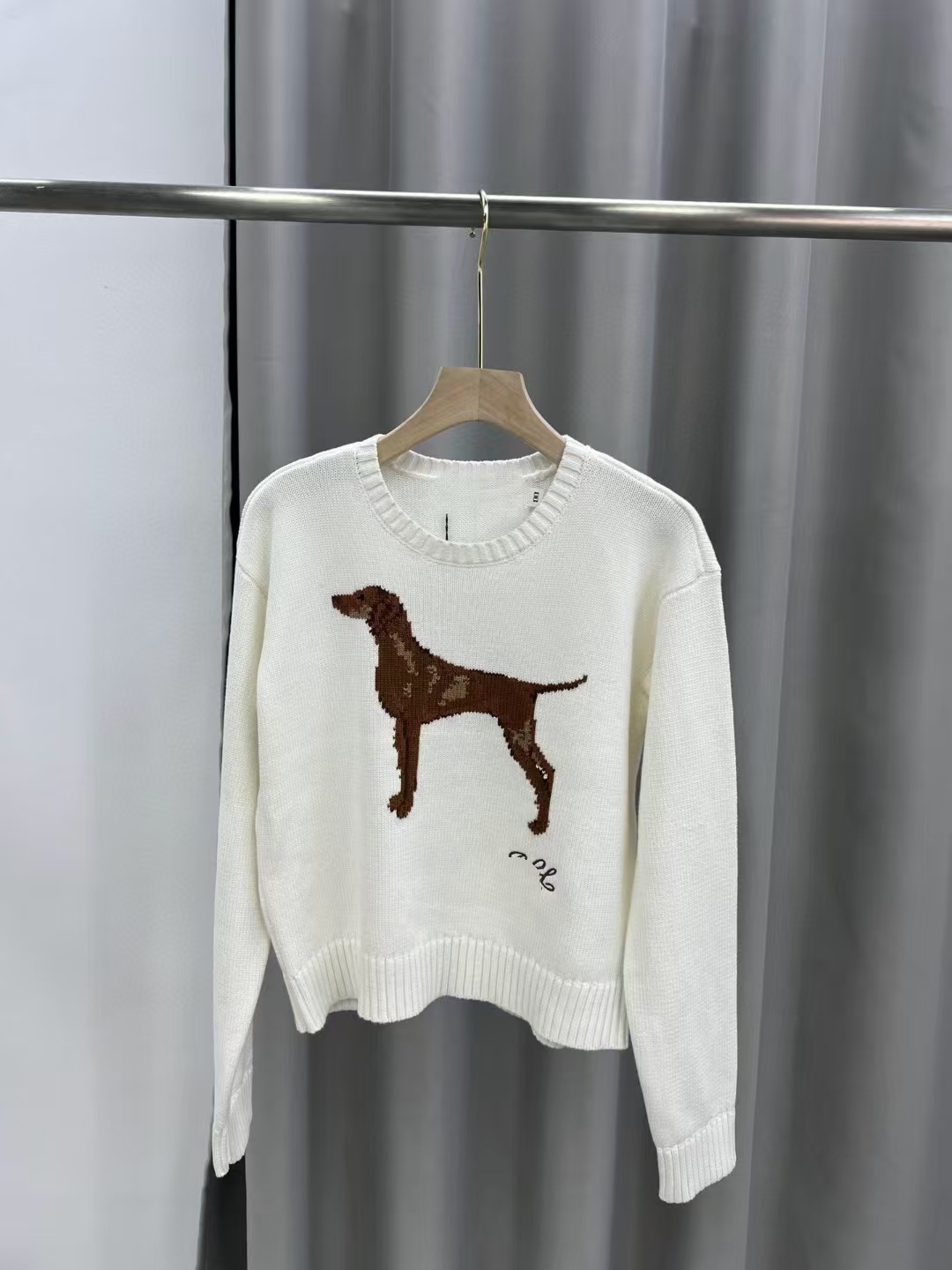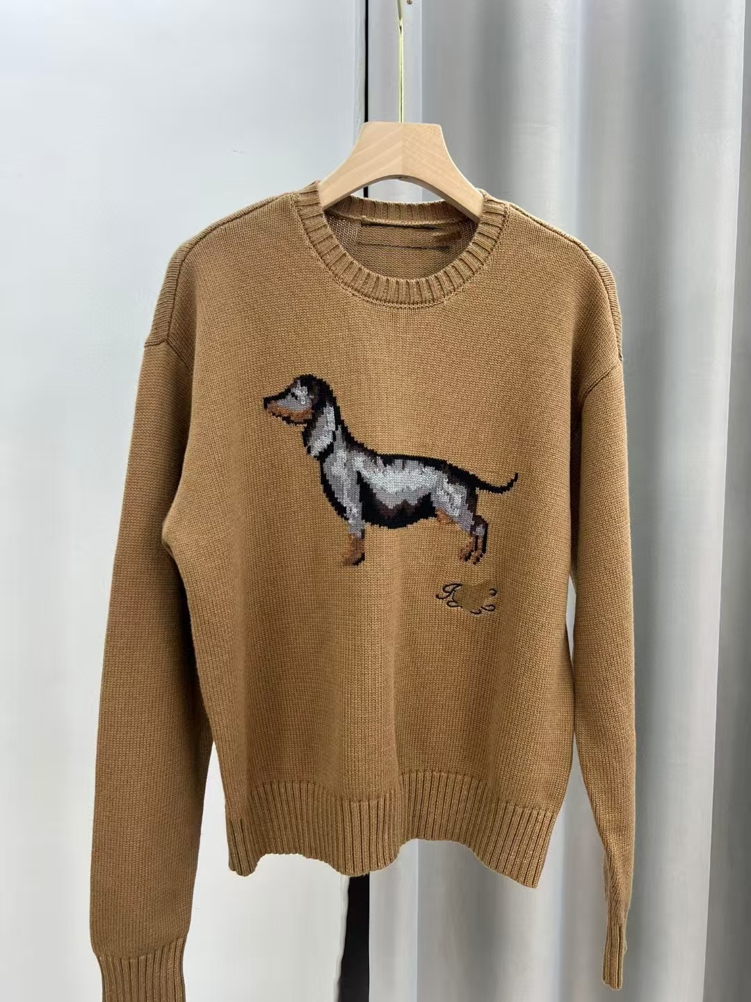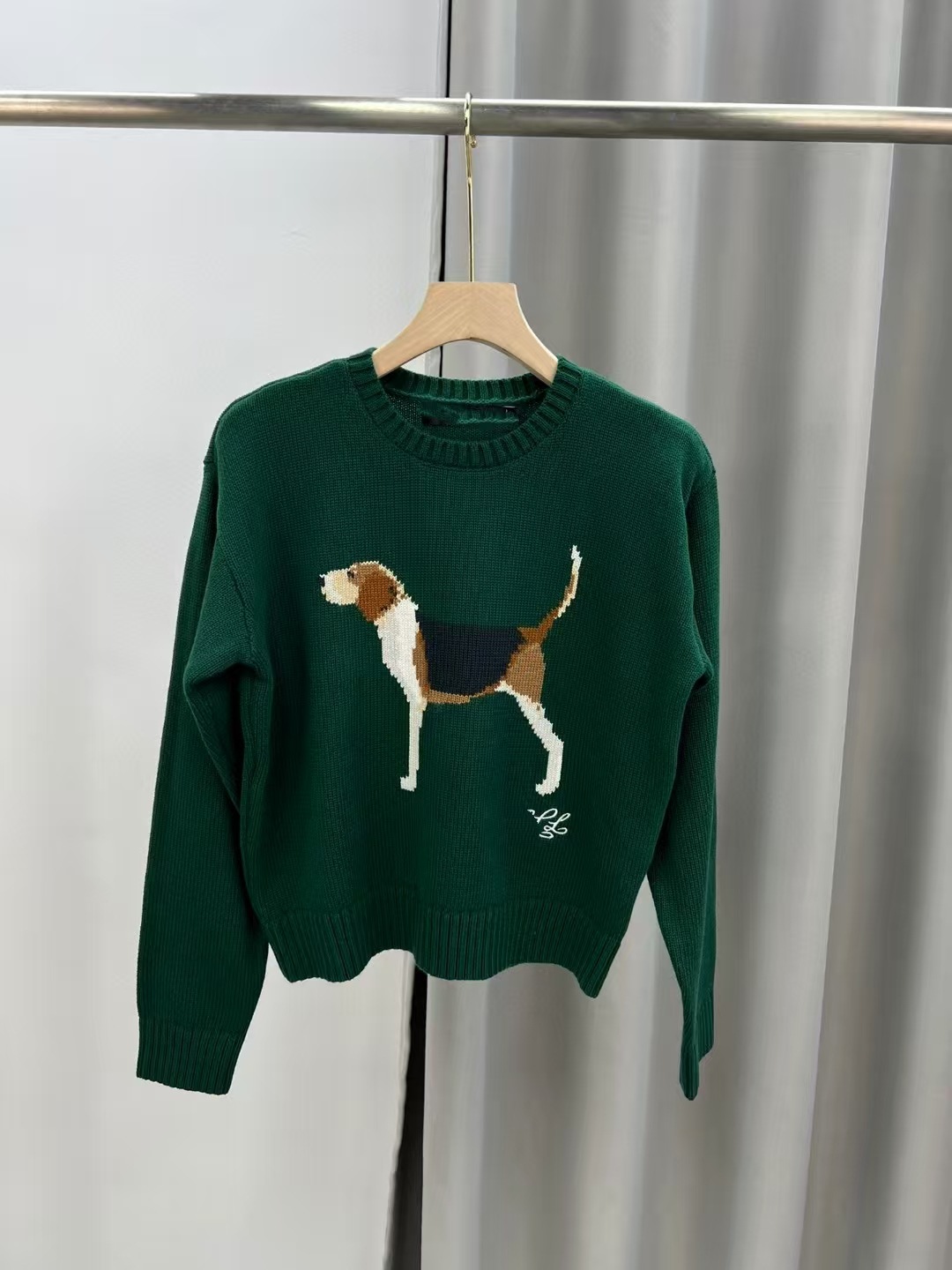 유럽과 미국의 R~L 여성용 순면 닥스훈트 자카드 패턴 하이웨이스트 짧은 라운드 넥 풀오버 니트 탑 스웨터스토어 가기