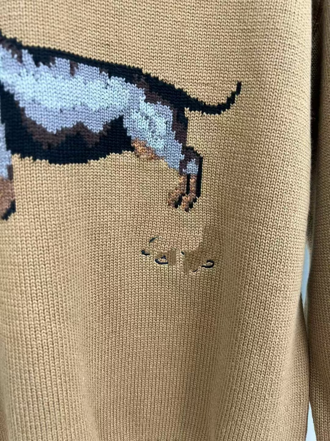 유럽과 미국의 R~L 여성용 순면 닥스훈트 자카드 패턴 하이웨이스트 짧은 라운드 넥 풀오버 니트 탑 스웨터