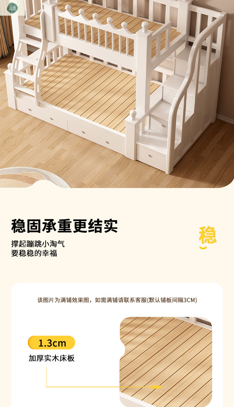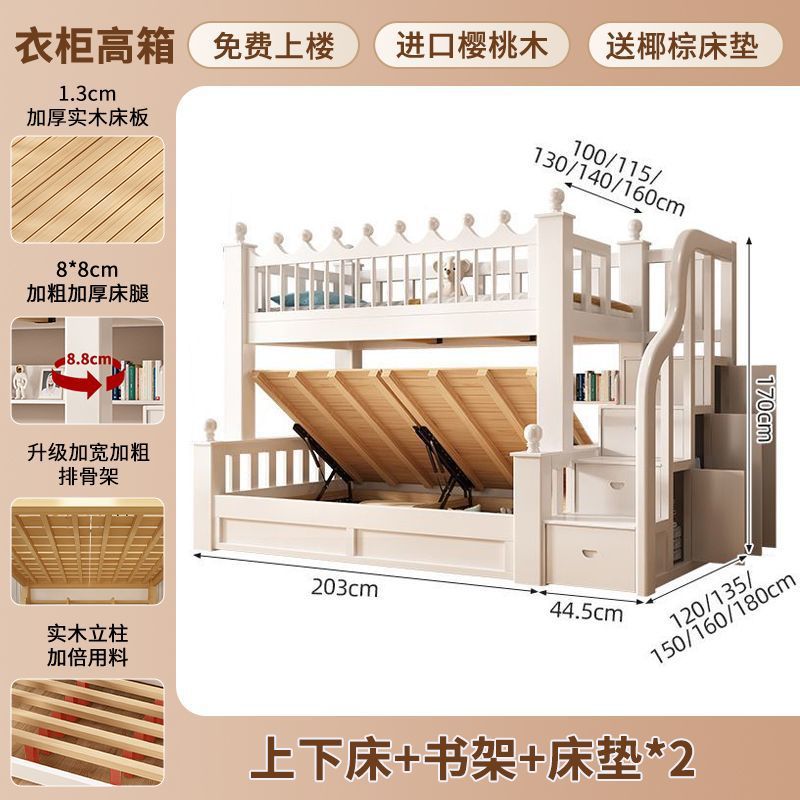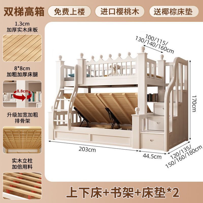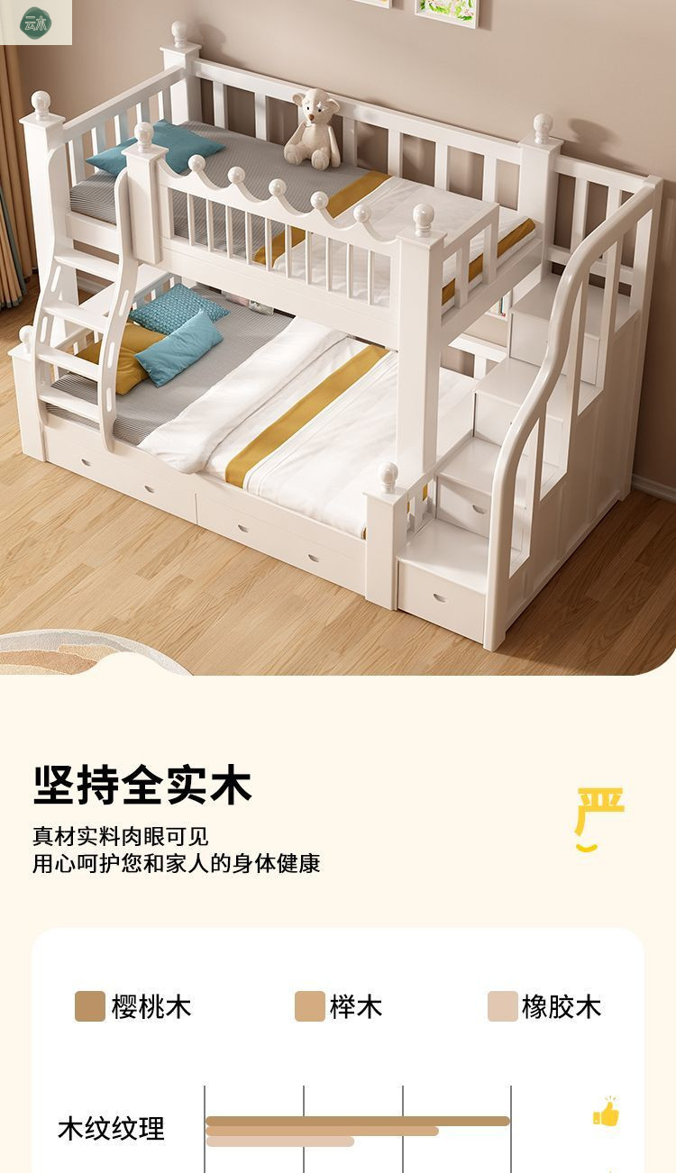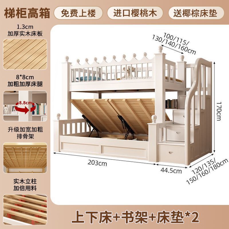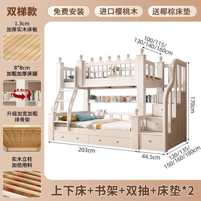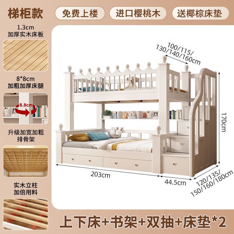 어린이 이층침대, 심플한 원목 이층침대, 두꺼운 고급 이층침대, 수납 서랍과 계단이 있는 이층침대