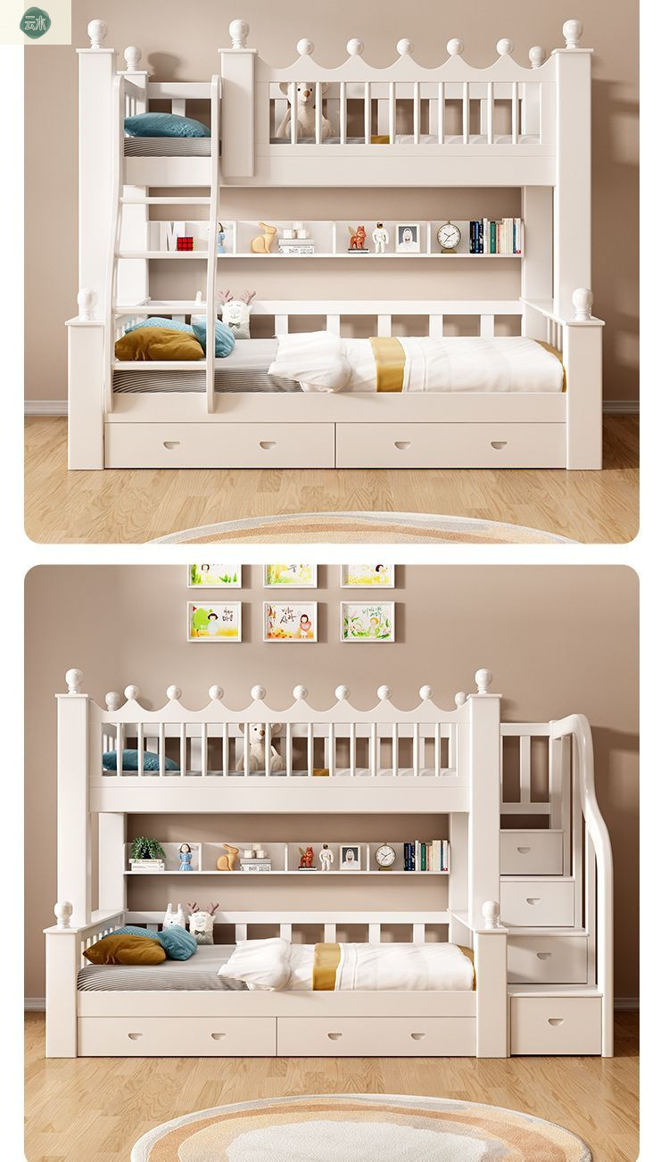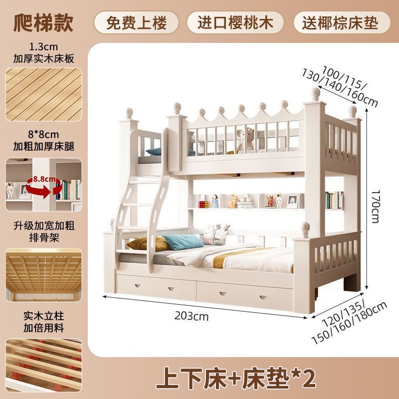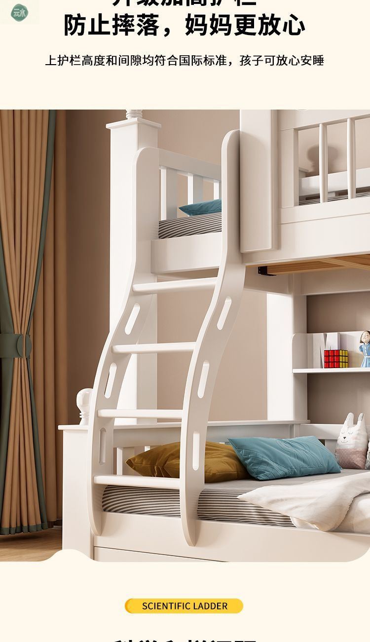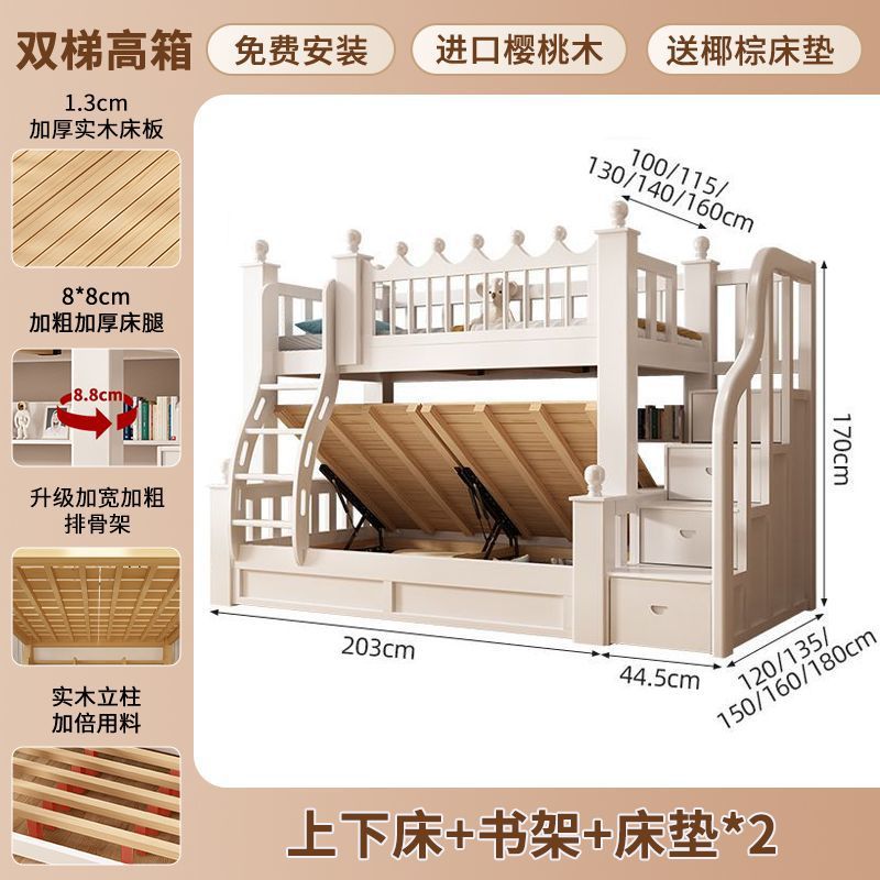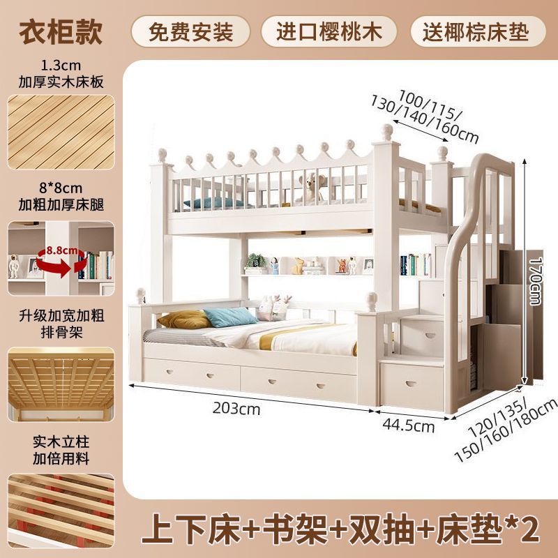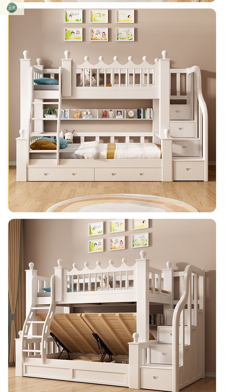 어린이 이층침대, 심플한 원목 이층침대, 두꺼운 고급 이층침대, 수납 서랍과 계단이 있는 이층침대