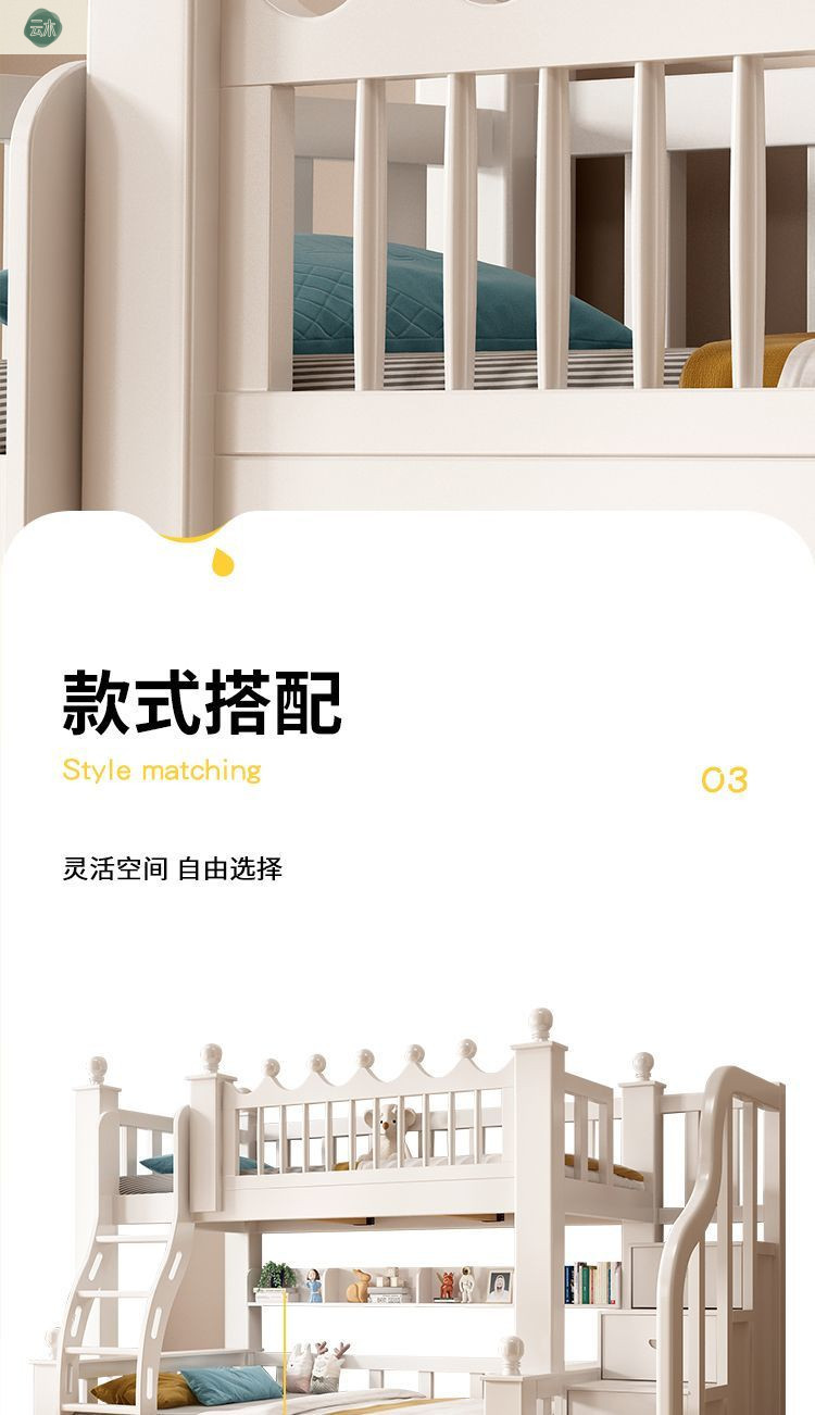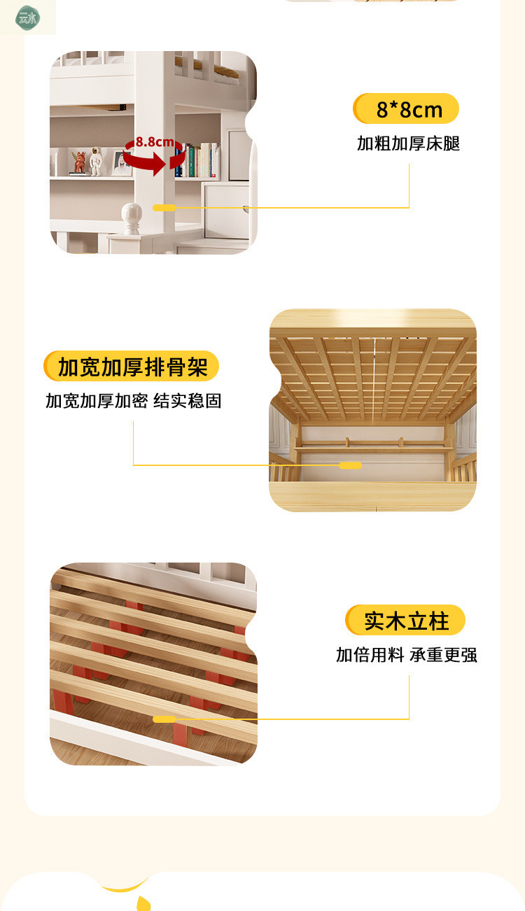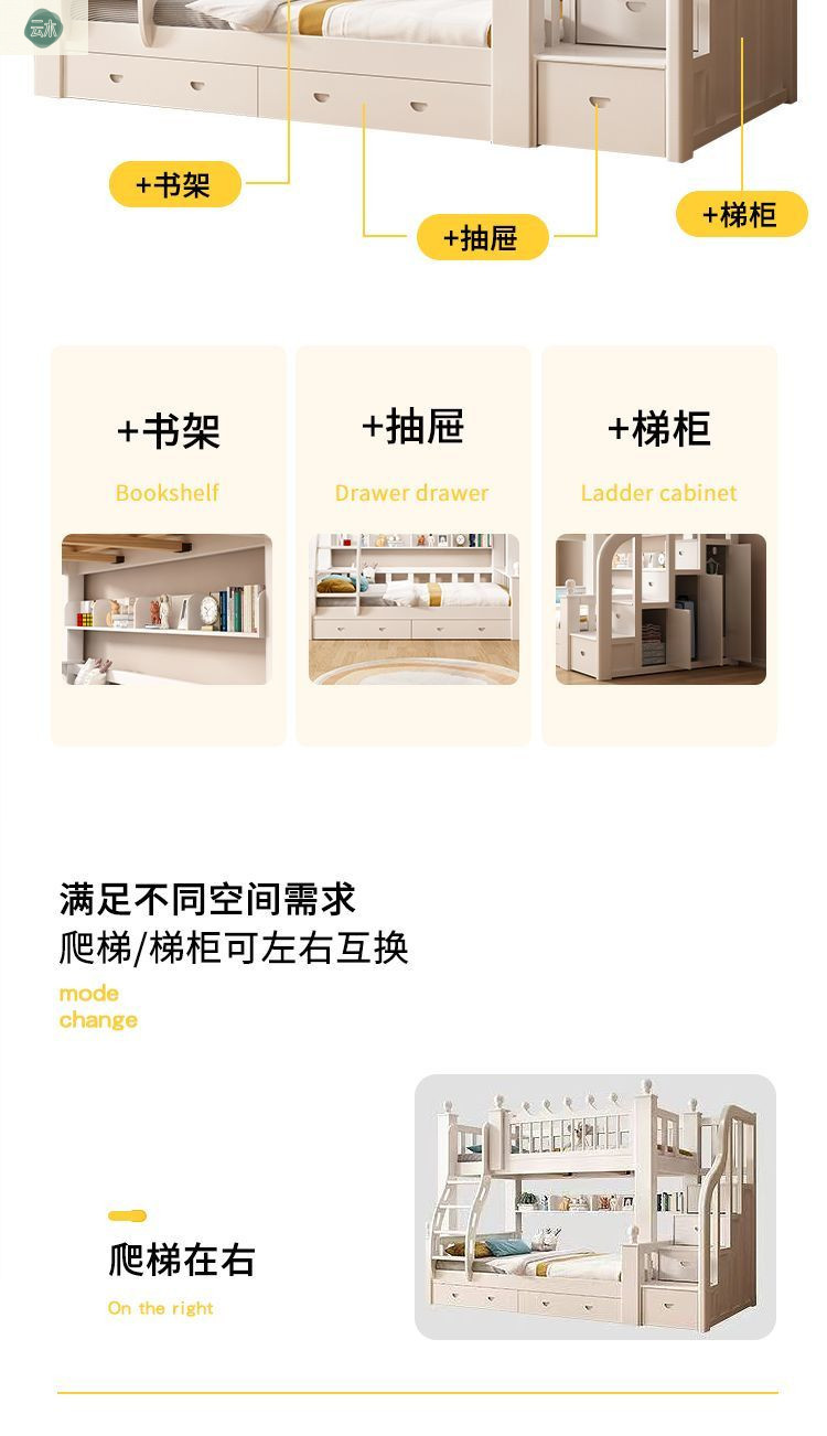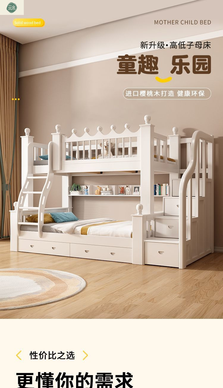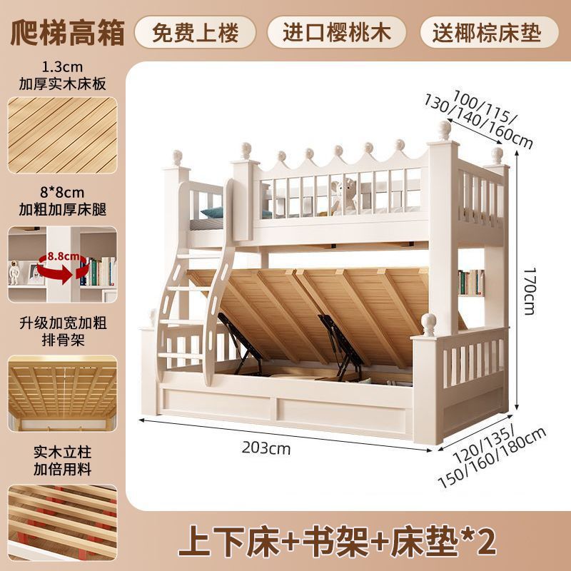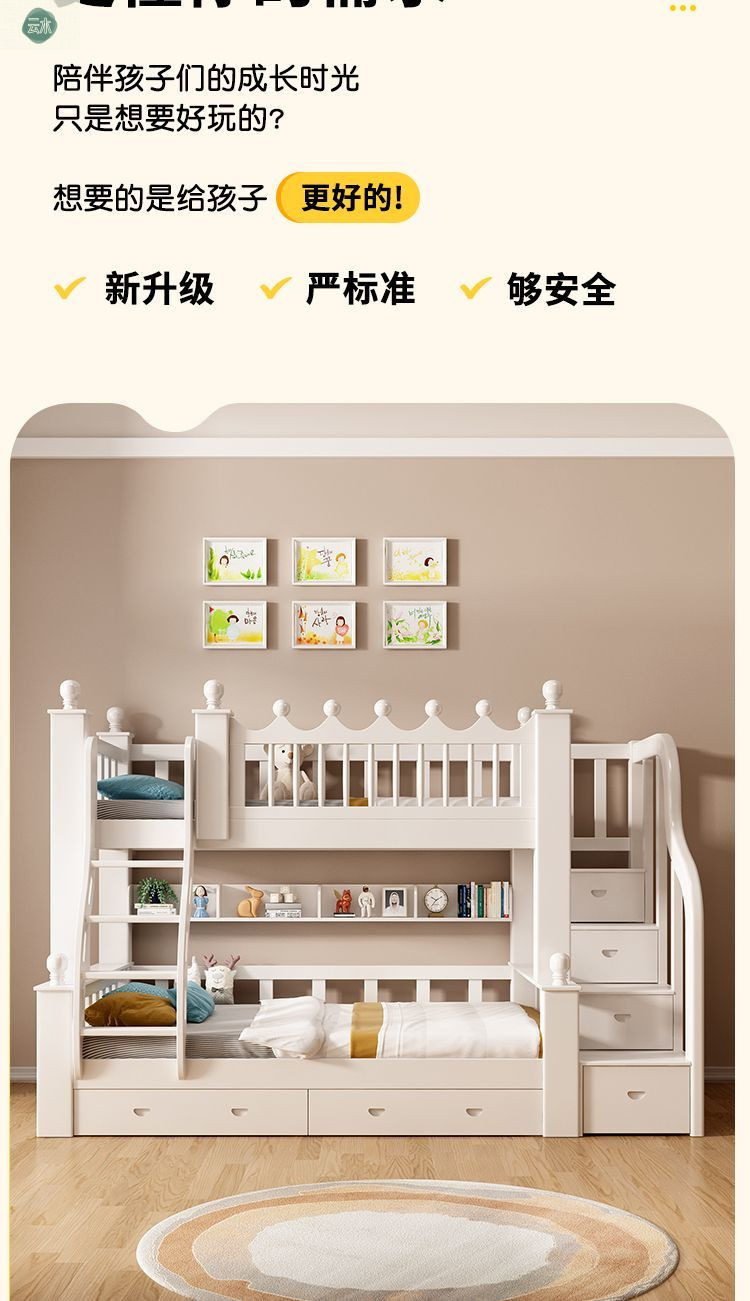 어린이 이층침대, 심플한 원목 이층침대, 두꺼운 고급 이층침대, 수납 서랍과 계단이 있는 이층침대