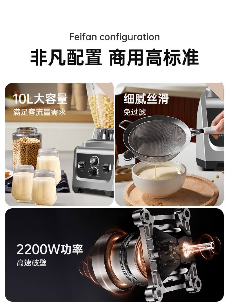 상업용 아침 식사 가게용 Noviston 두유 기계, 대용량 벽 파괴 기계, 고출력, 잔류물 없음