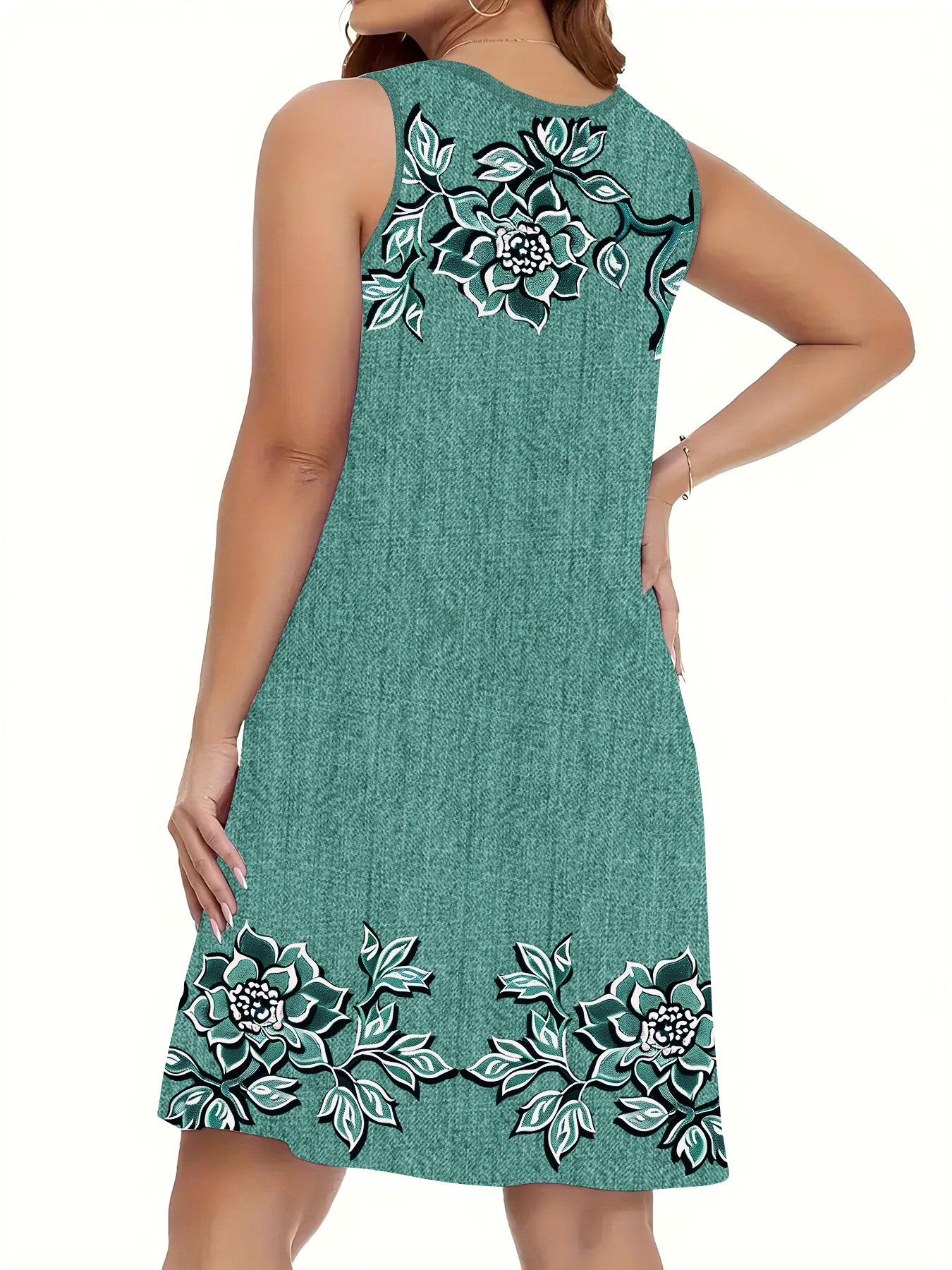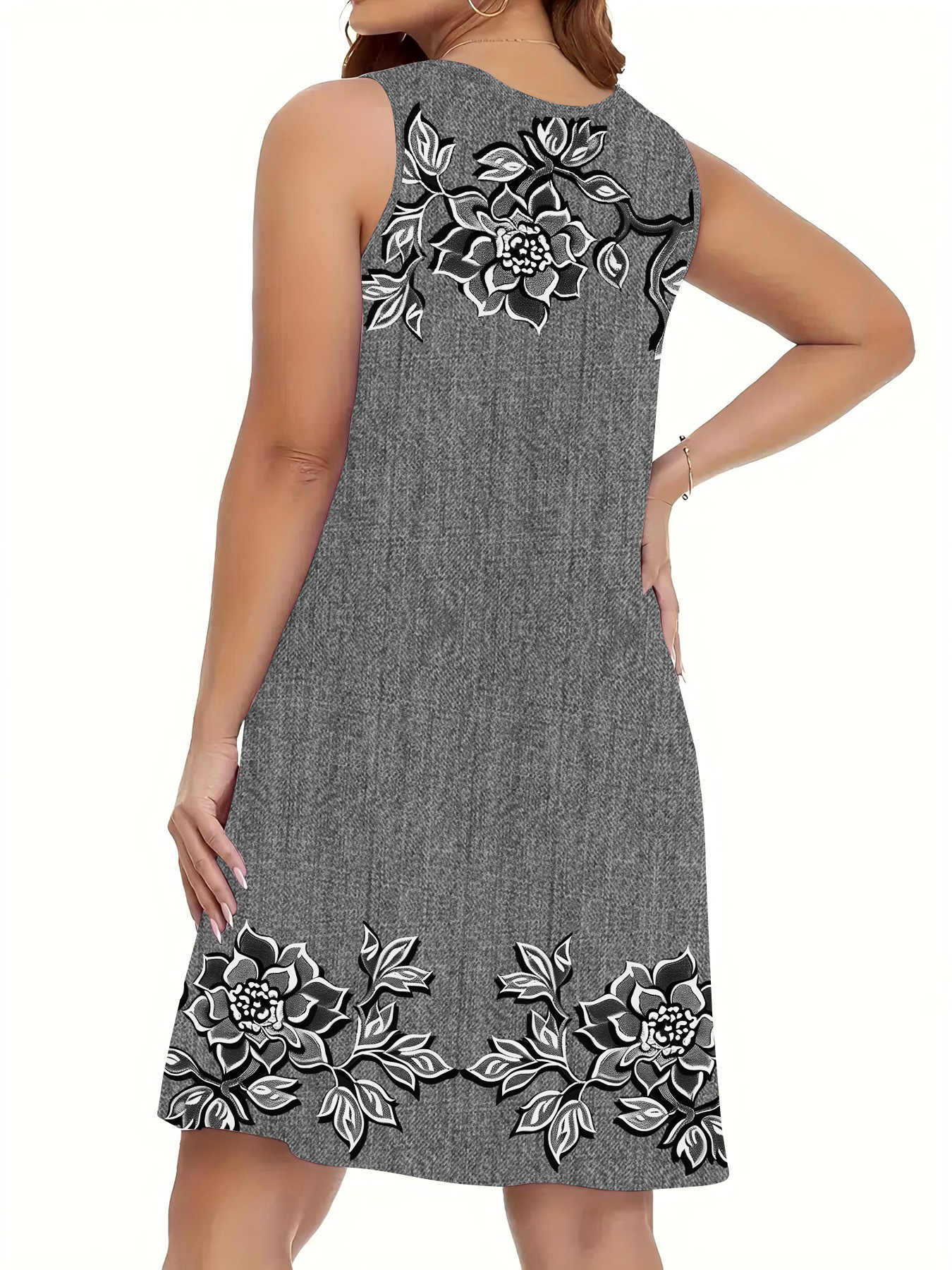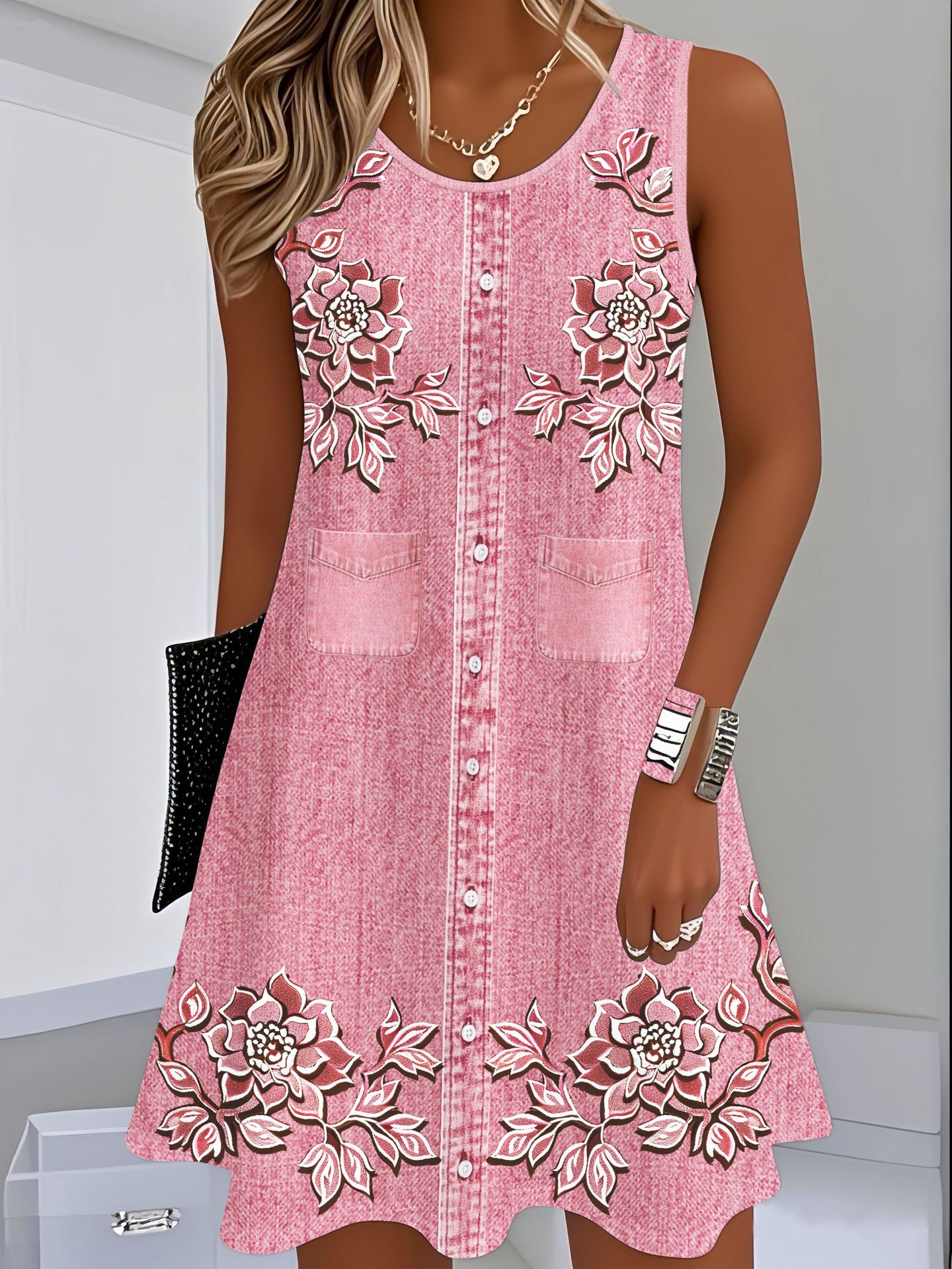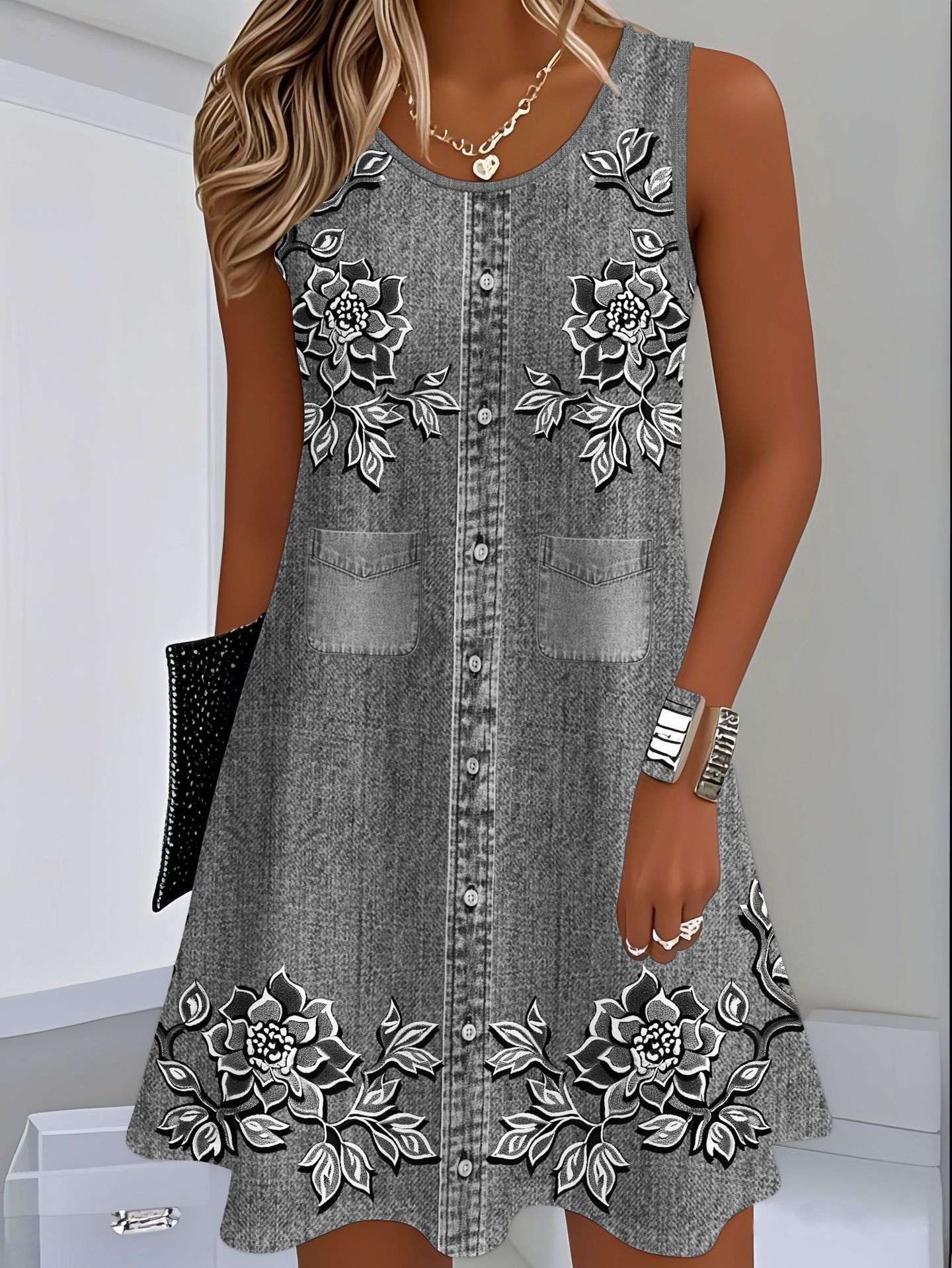 표시 번호 드레스 여름 우유 실크 원단 모조 데님 디지털 인쇄 서스펜더 스커트 민소매 스트레이트 루즈스토어 가기
