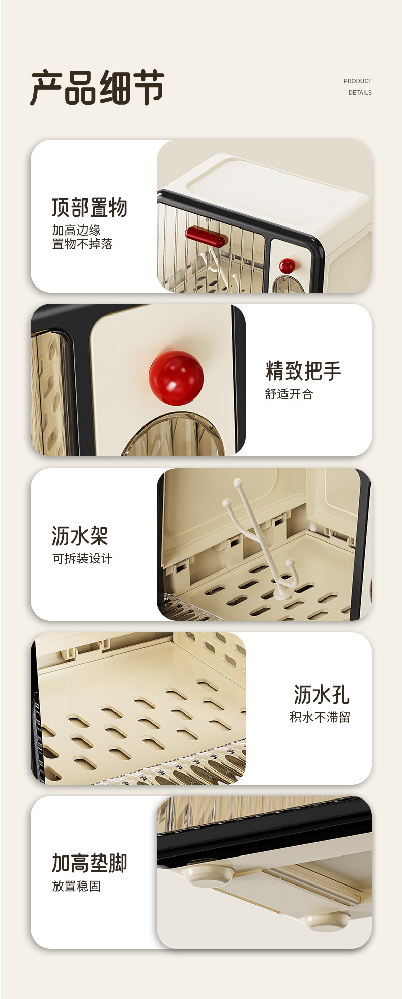 뚜껑이 있는 젖병 보관함, 아기 물컵, 식기 건조 및 배수용 방진 보관함, 그릇 및 젓가락 보관함