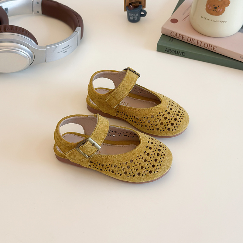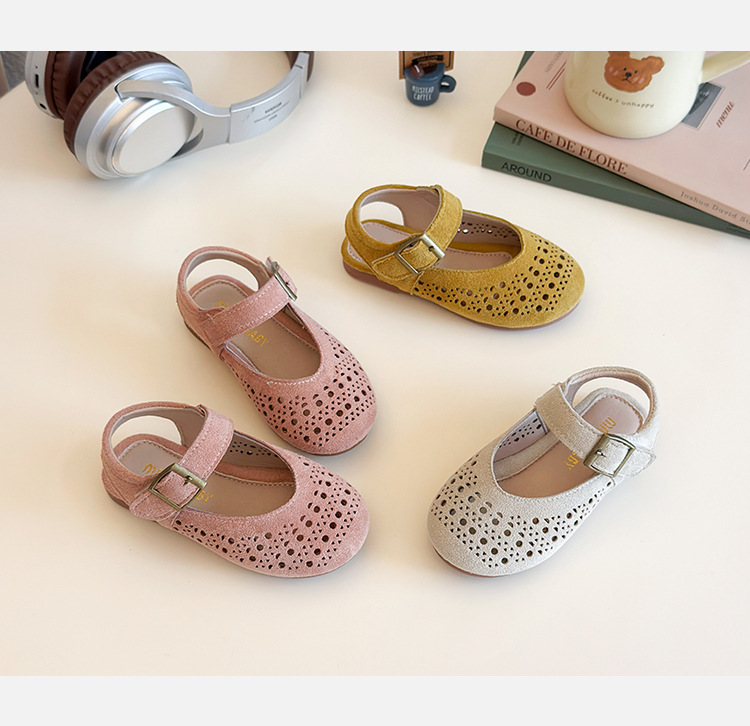 어린이 공주 신발 2025 여름 새 스타일 소녀 패션 벨크로 발가락 신발 어린 소녀 중공 부드러운 밑창 샌들스토어 가기