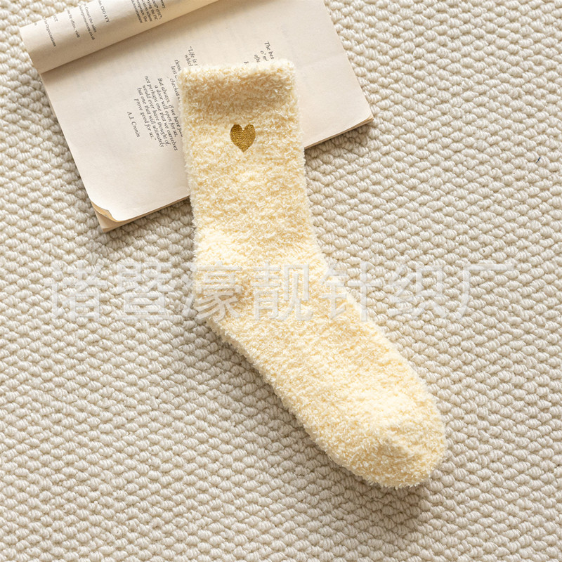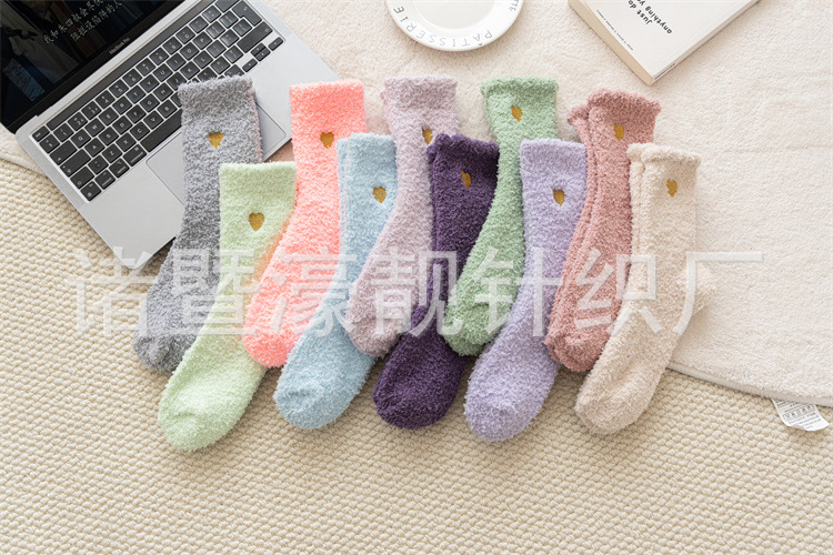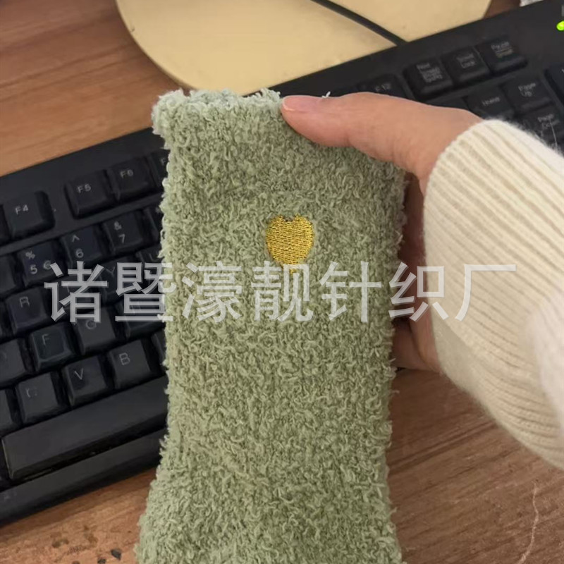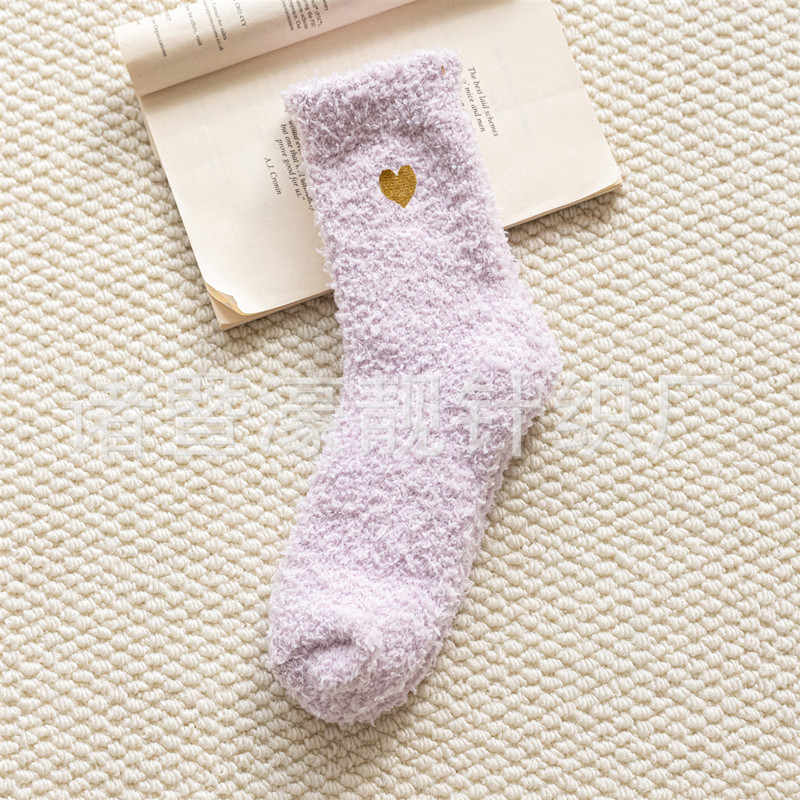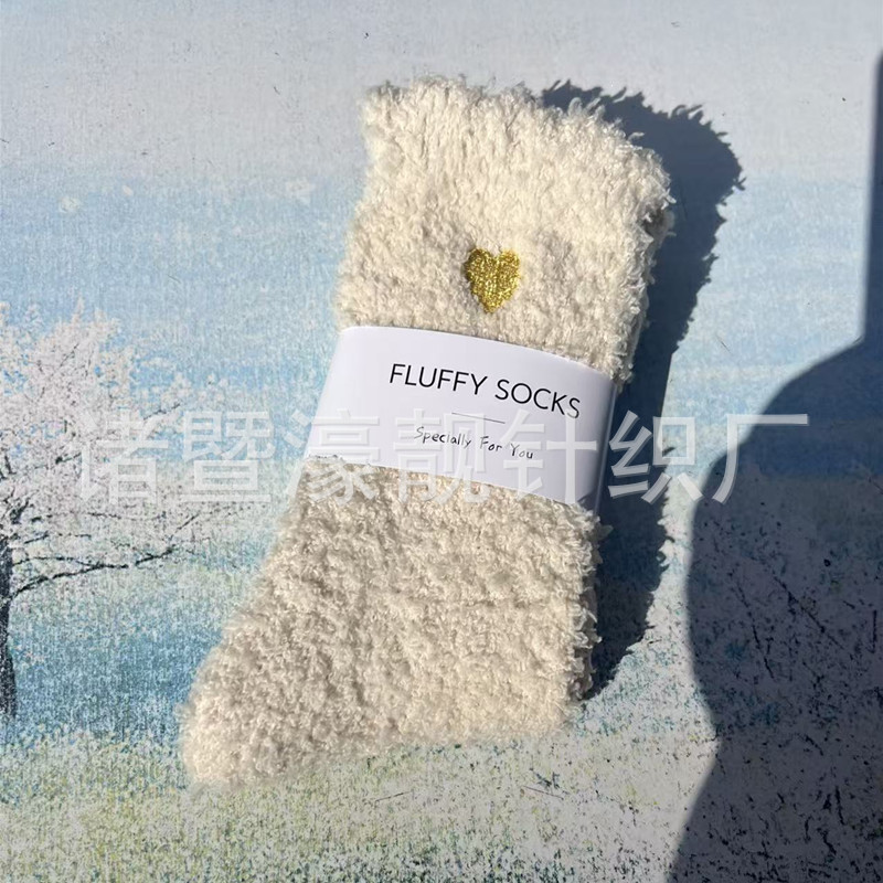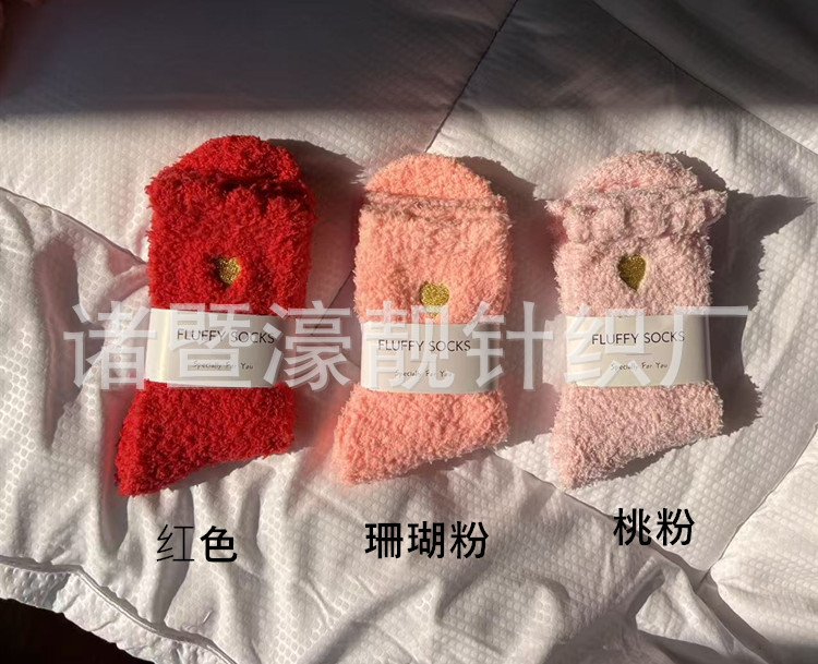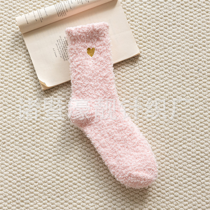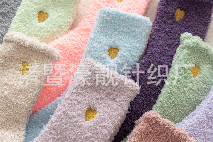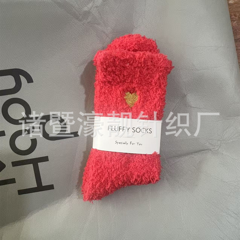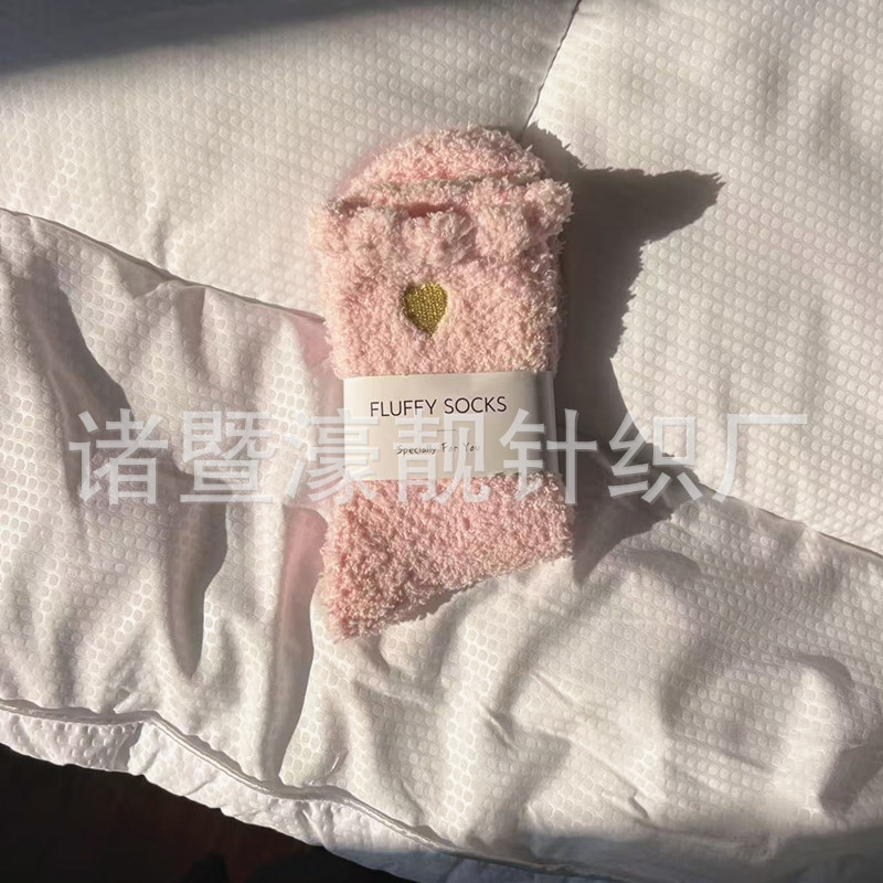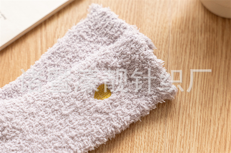 【产品名称】 刺绣爱心珊瑚绒女袜 不掉毛