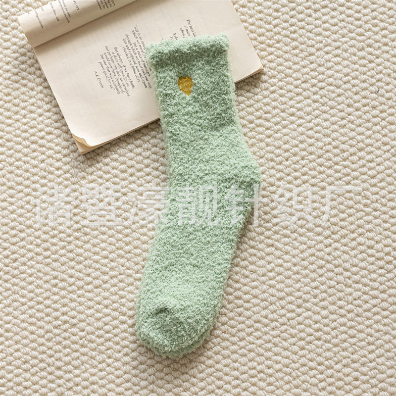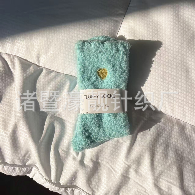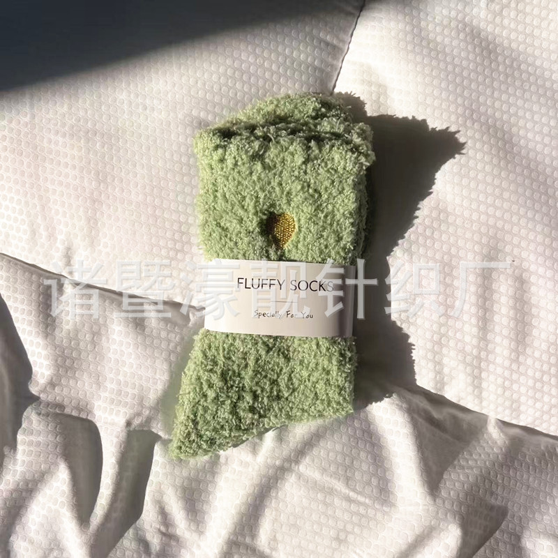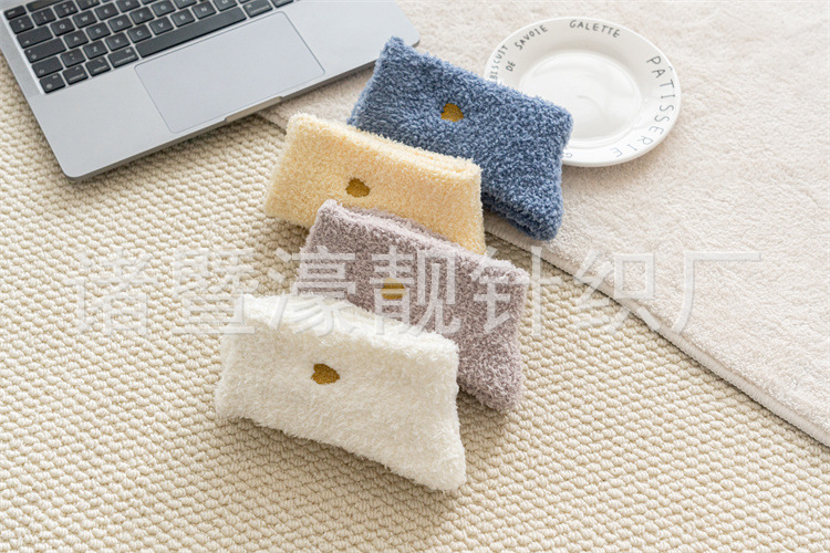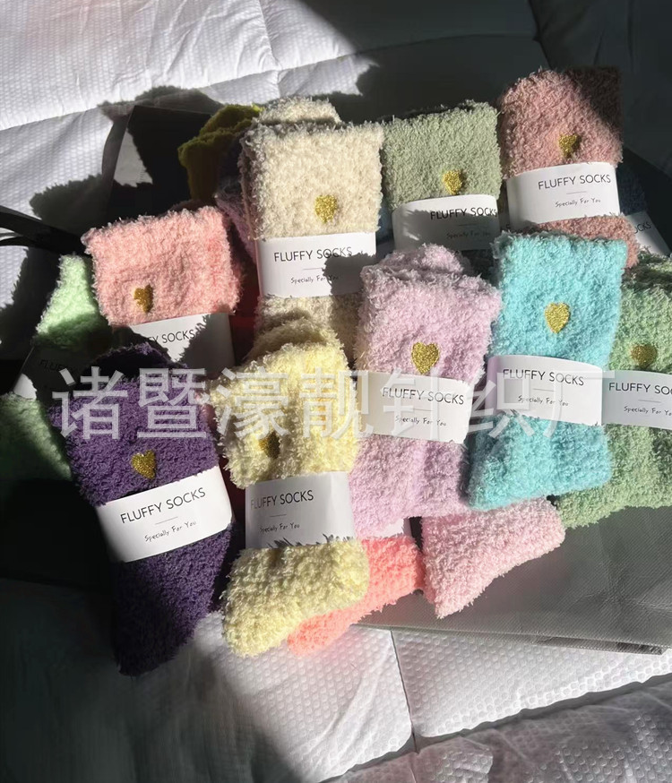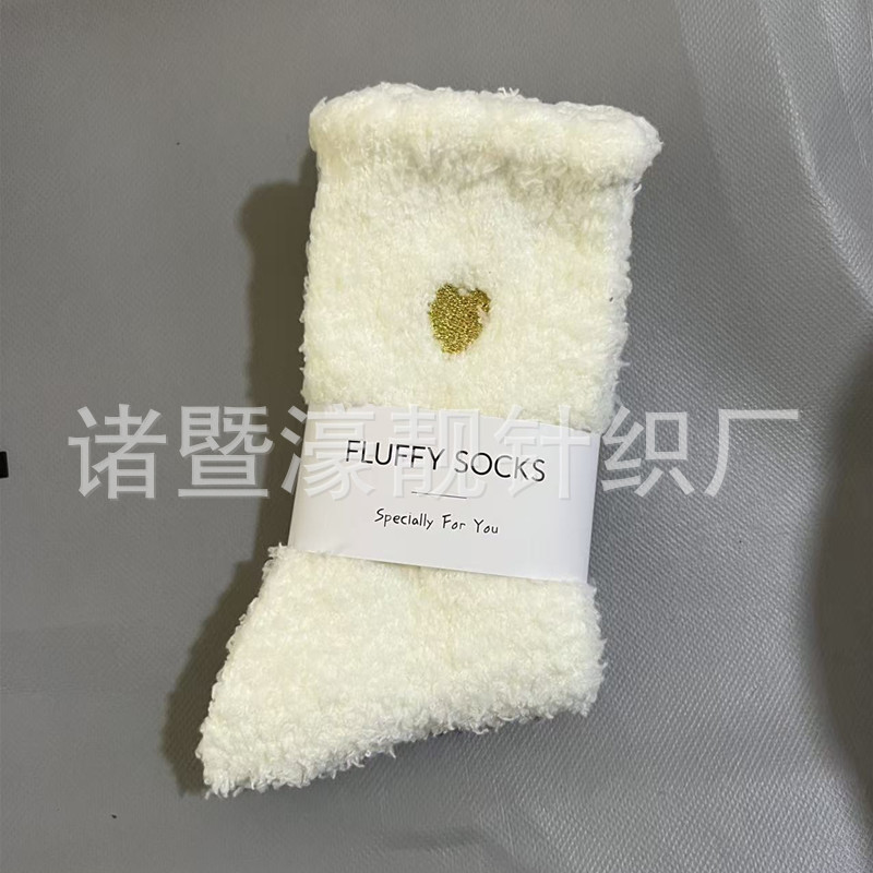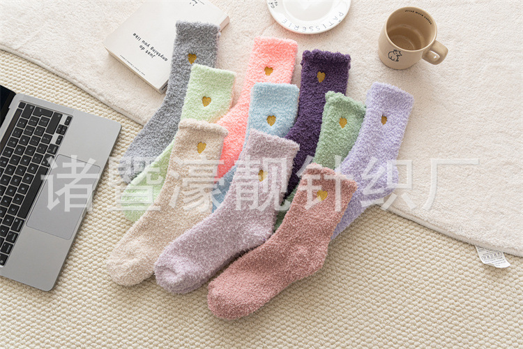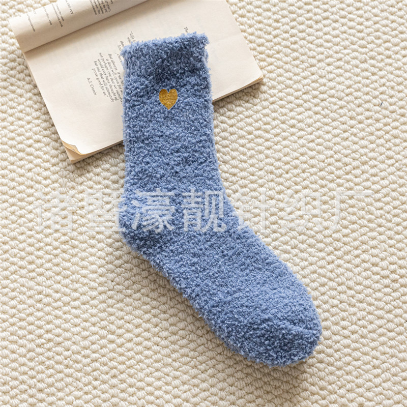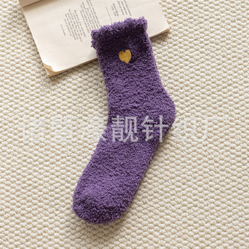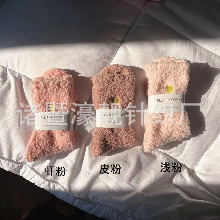 【产品名称】 刺绣爱心珊瑚绒女袜 不掉毛
