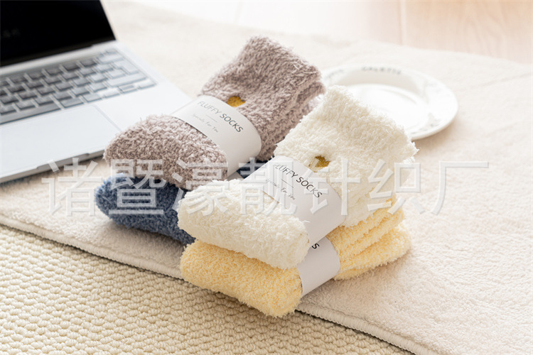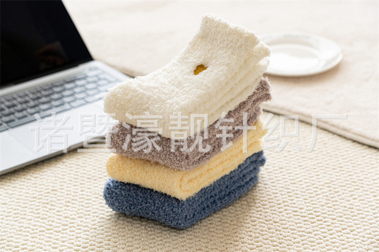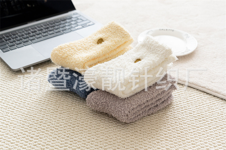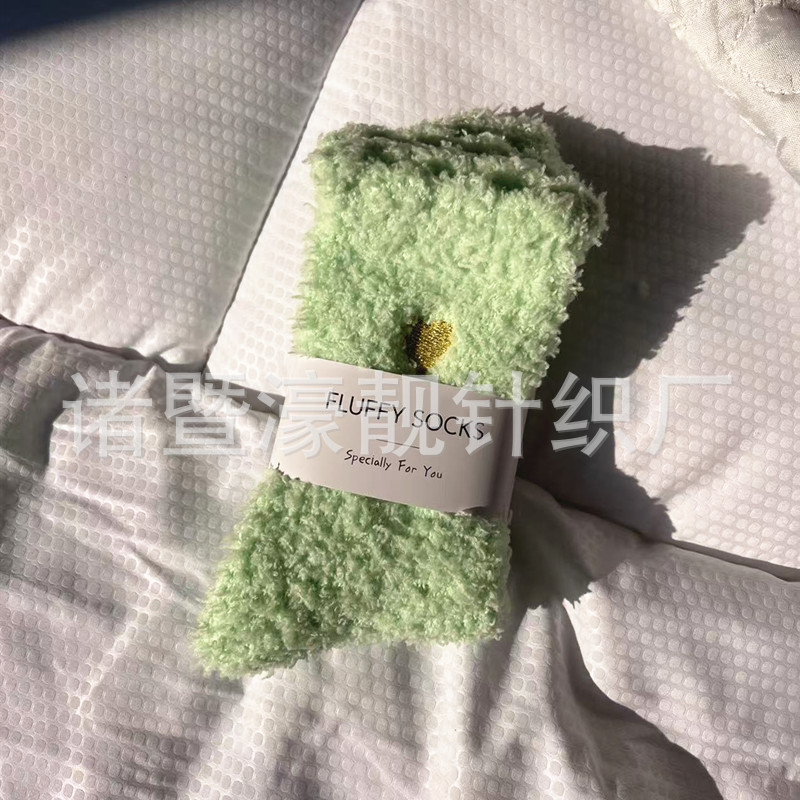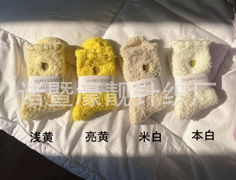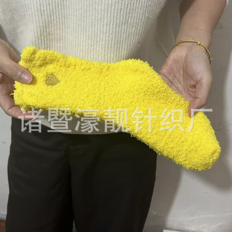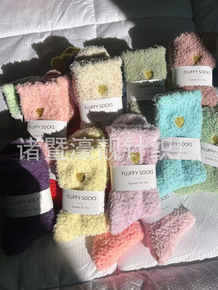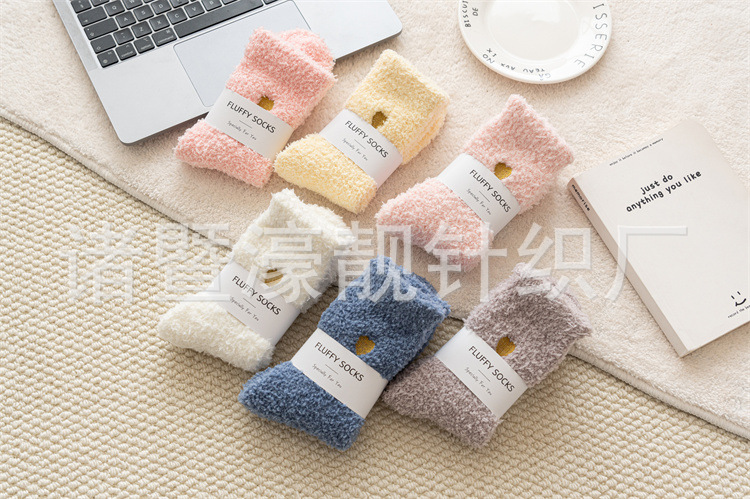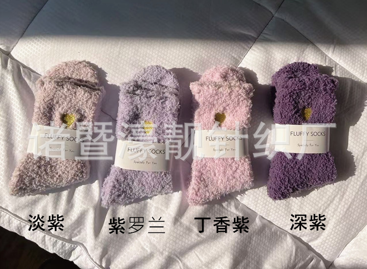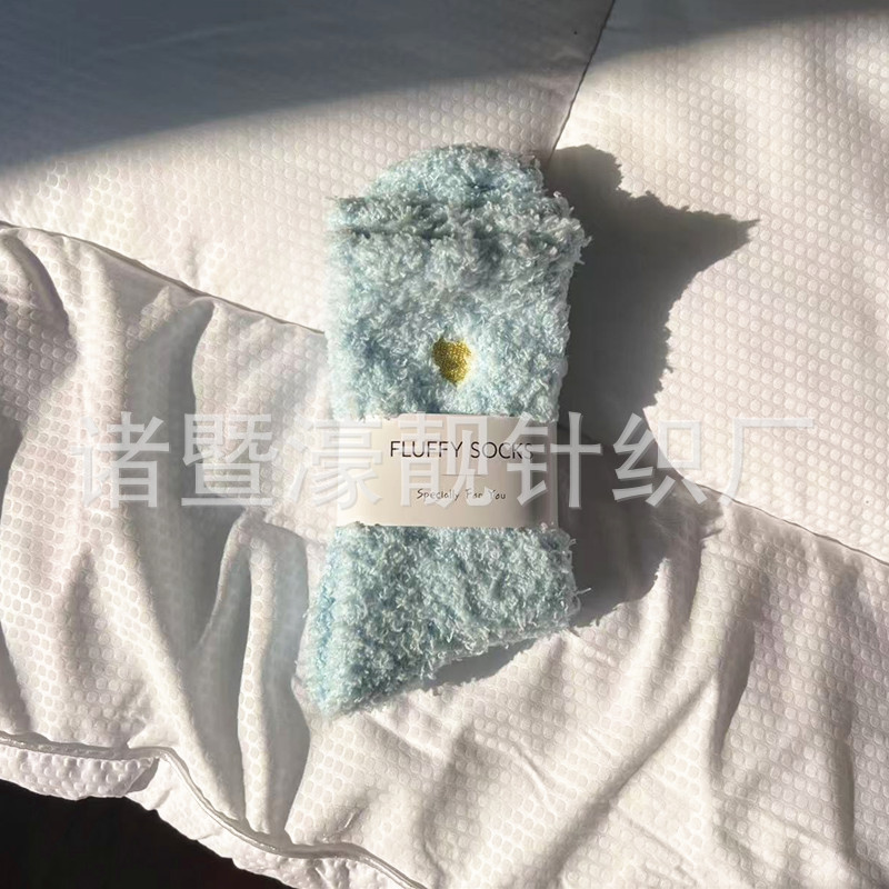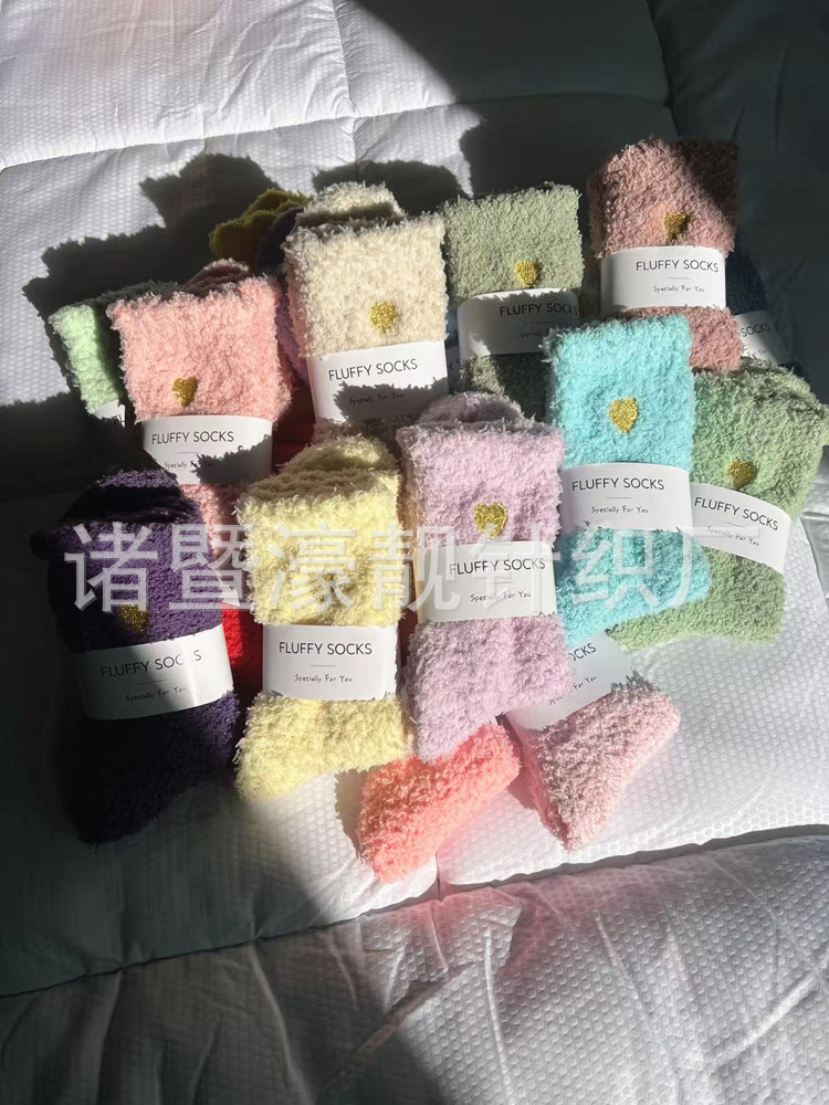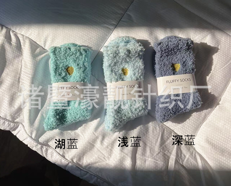 【产品名称】 刺绣爱心珊瑚绒女袜 不掉毛