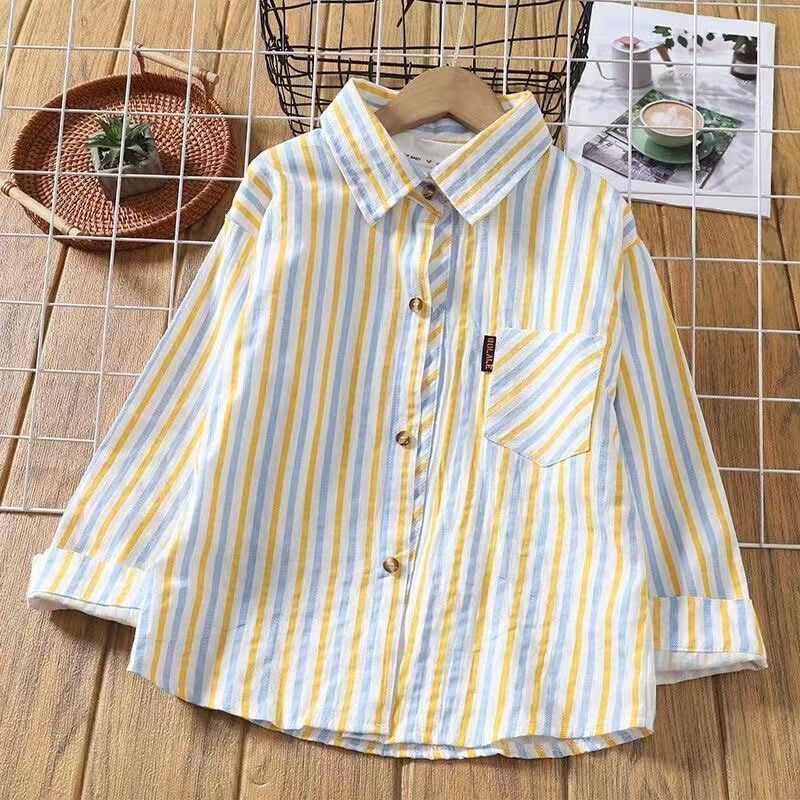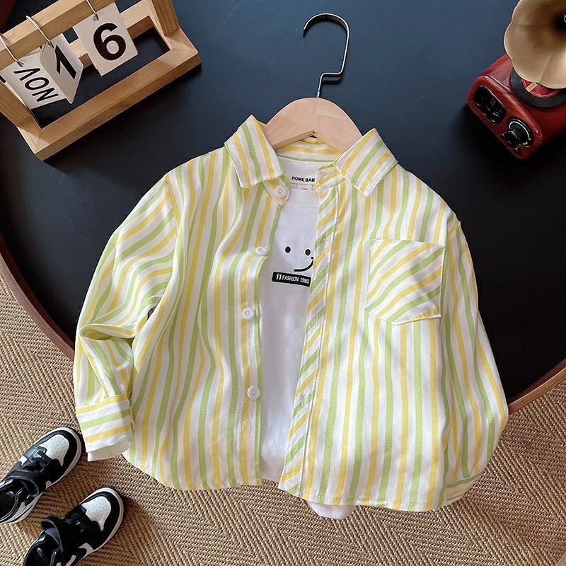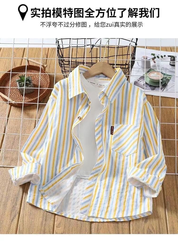 남아용 셔츠 긴팔 봄, 가을 새로운 아동복 중대형 아동용 줄무늬 셔츠 봄 의류 남아용 상의 유행스토어 가기