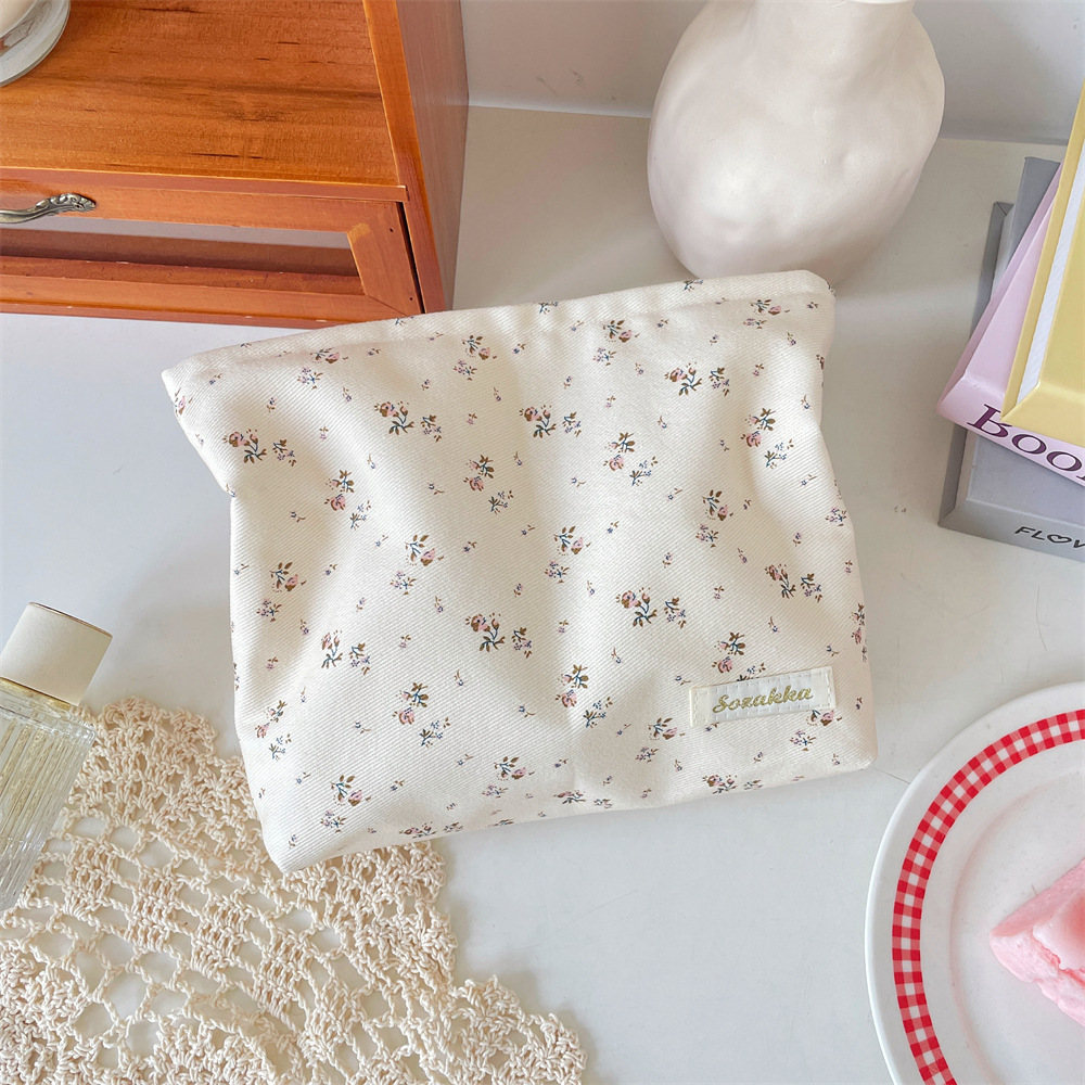 5641 한국 스타일 작은 신선한 꽃 대용량 화장품 가방 외출 화장품 립스틱 보관 및 정리 가방