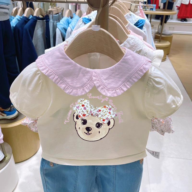 곰 아동복 소녀 인형 칼라 세련된 반팔 아기 아기 편안한 티셔츠 탑 TOHA2362A스토어 가기