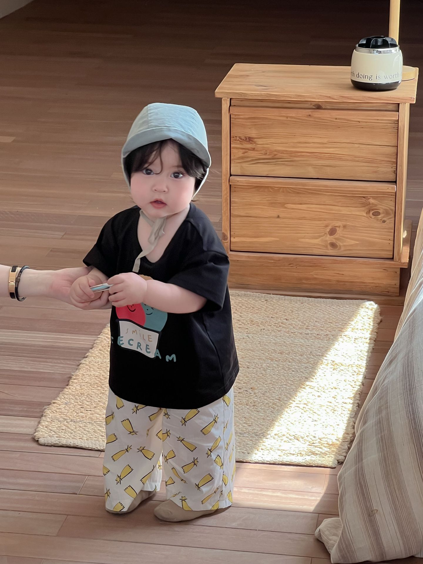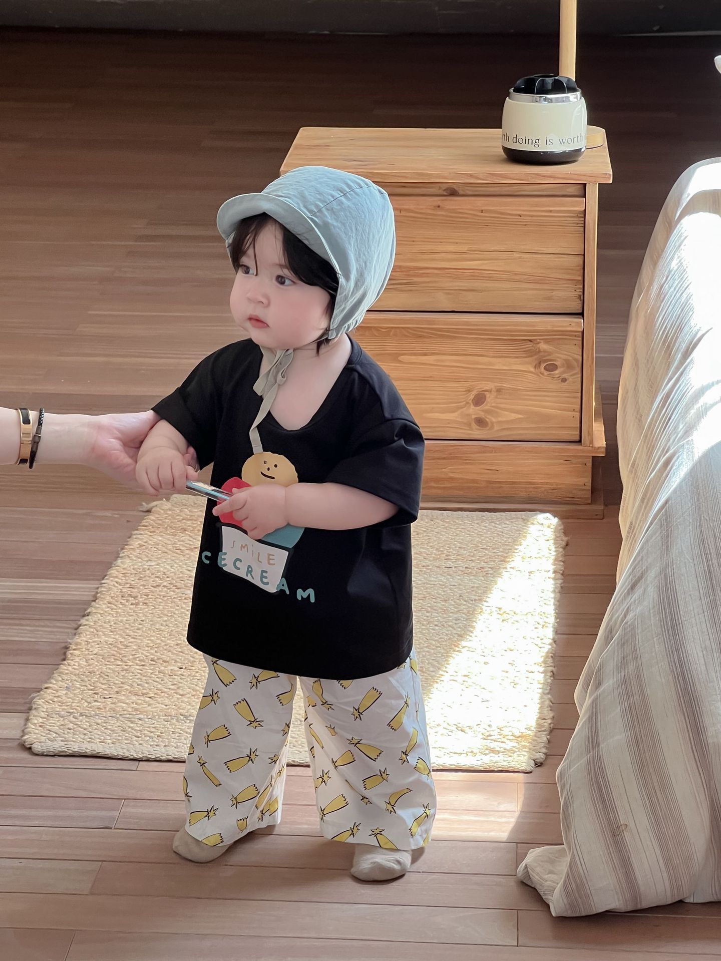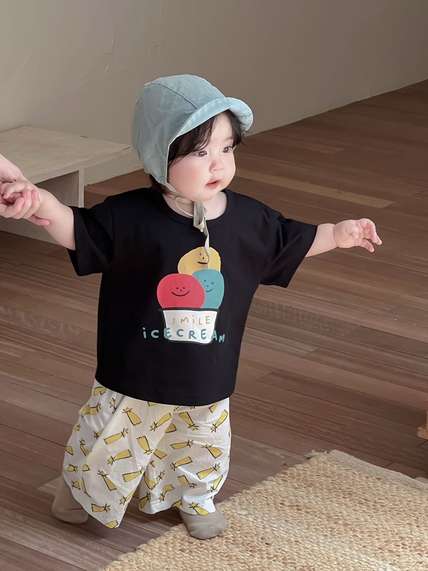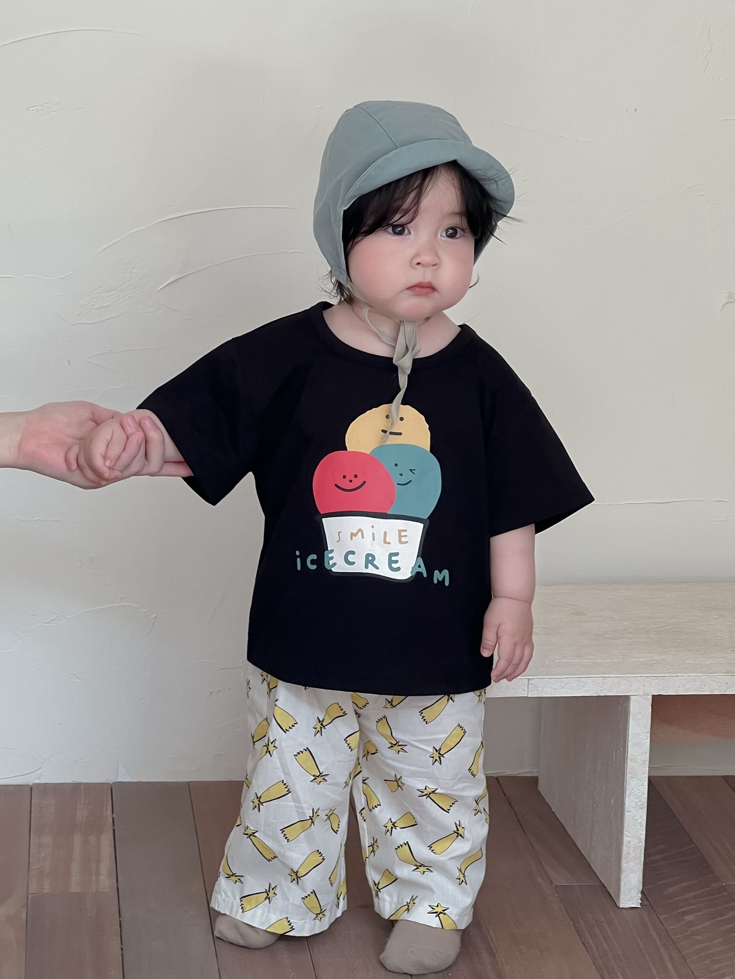 Galakoko 여름 한국 스타일 아기 소년 아이스크림 프린트 티셔츠 캐주얼 만화 에어컨 바지 모기 방지 바지스토어 가기