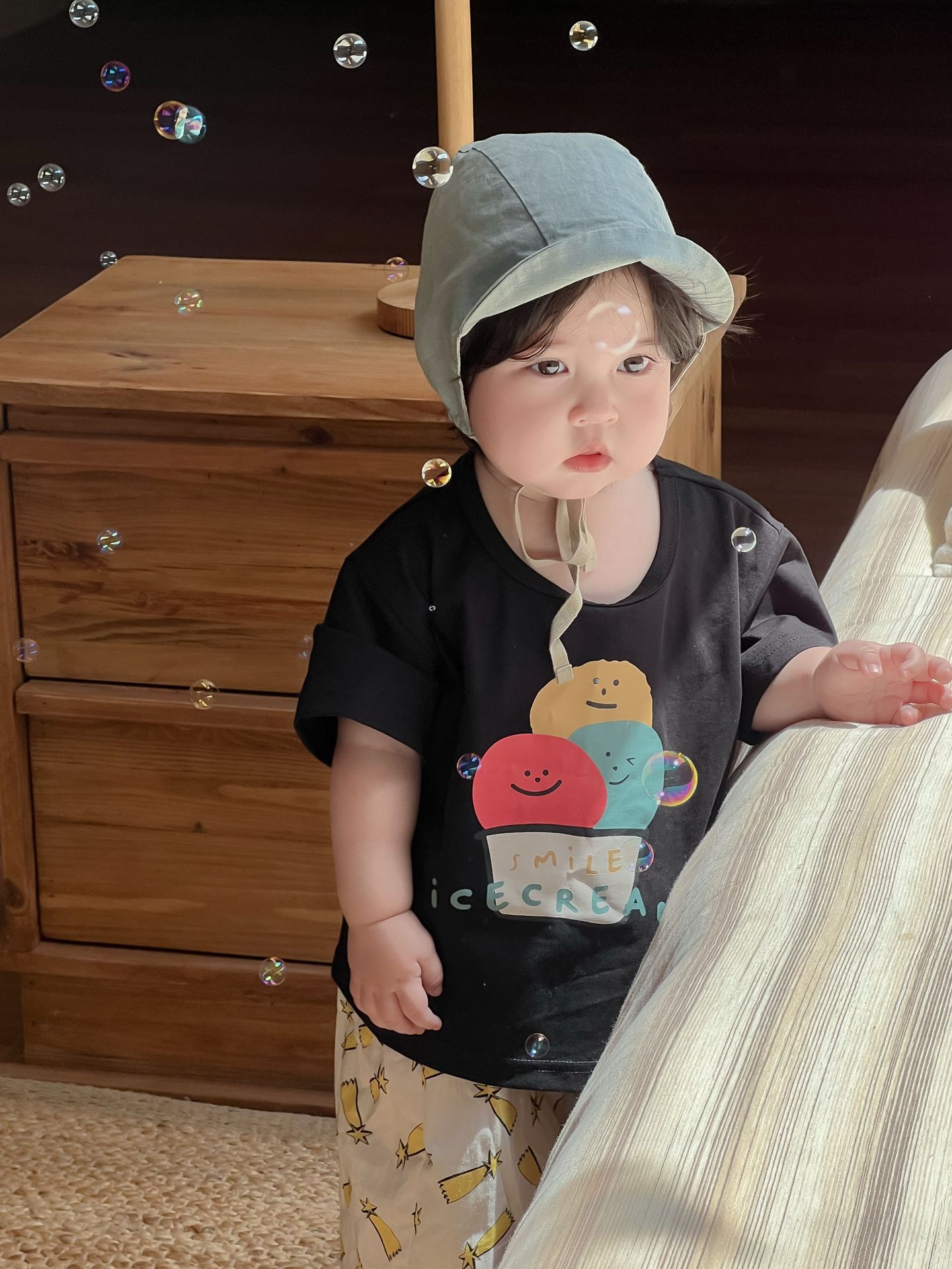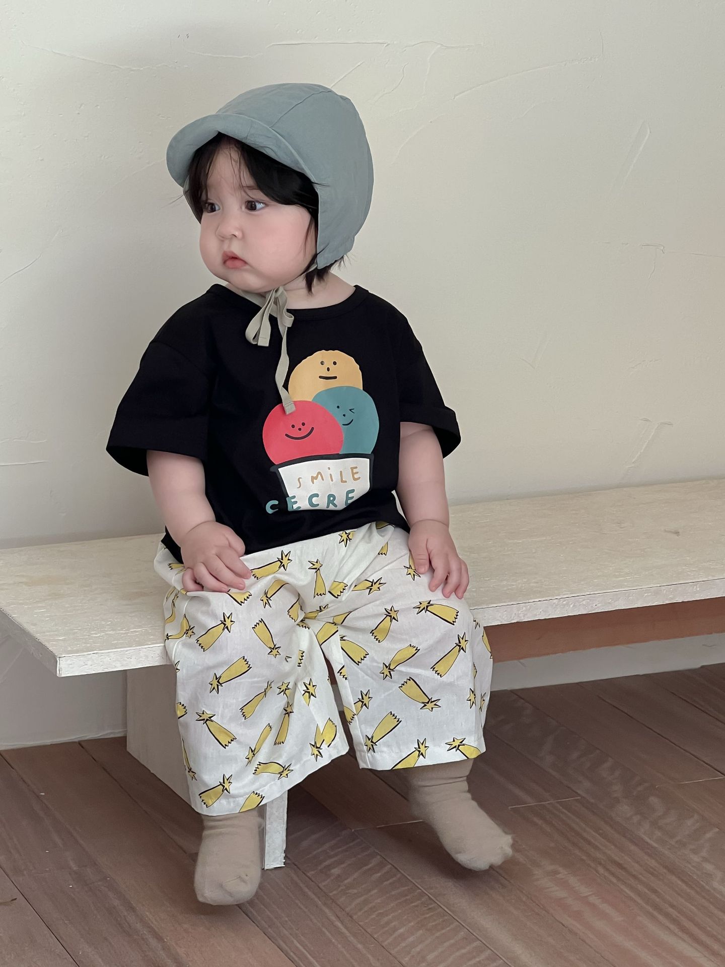 Galakoko 여름 한국 스타일 아기 소년 아이스크림 프린트 티셔츠 캐주얼 만화 에어컨 바지 모기 방지 바지