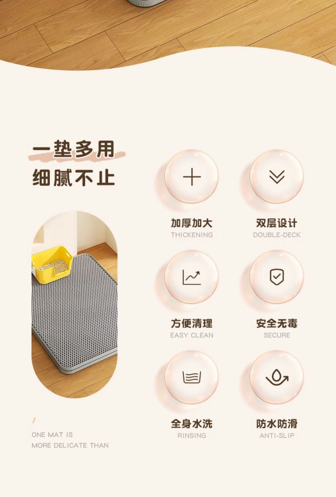 • 고양이 모래 매트는 튀는 것을 방지합니다.