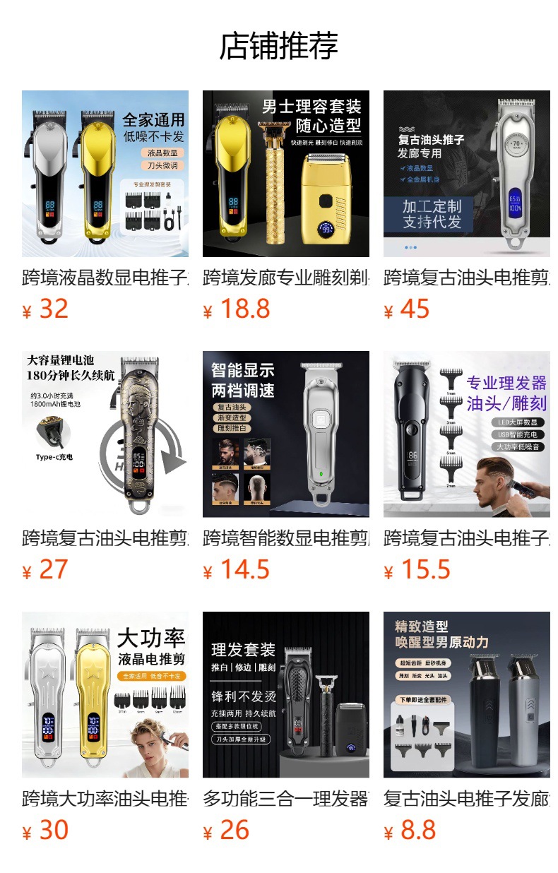 국경 간 새로운 전기 머리 깎기 기계 세트 전문 미용 복고풍 오일 헤드 조각 전기 머리 깎기 자체 부스터스토어 가기
