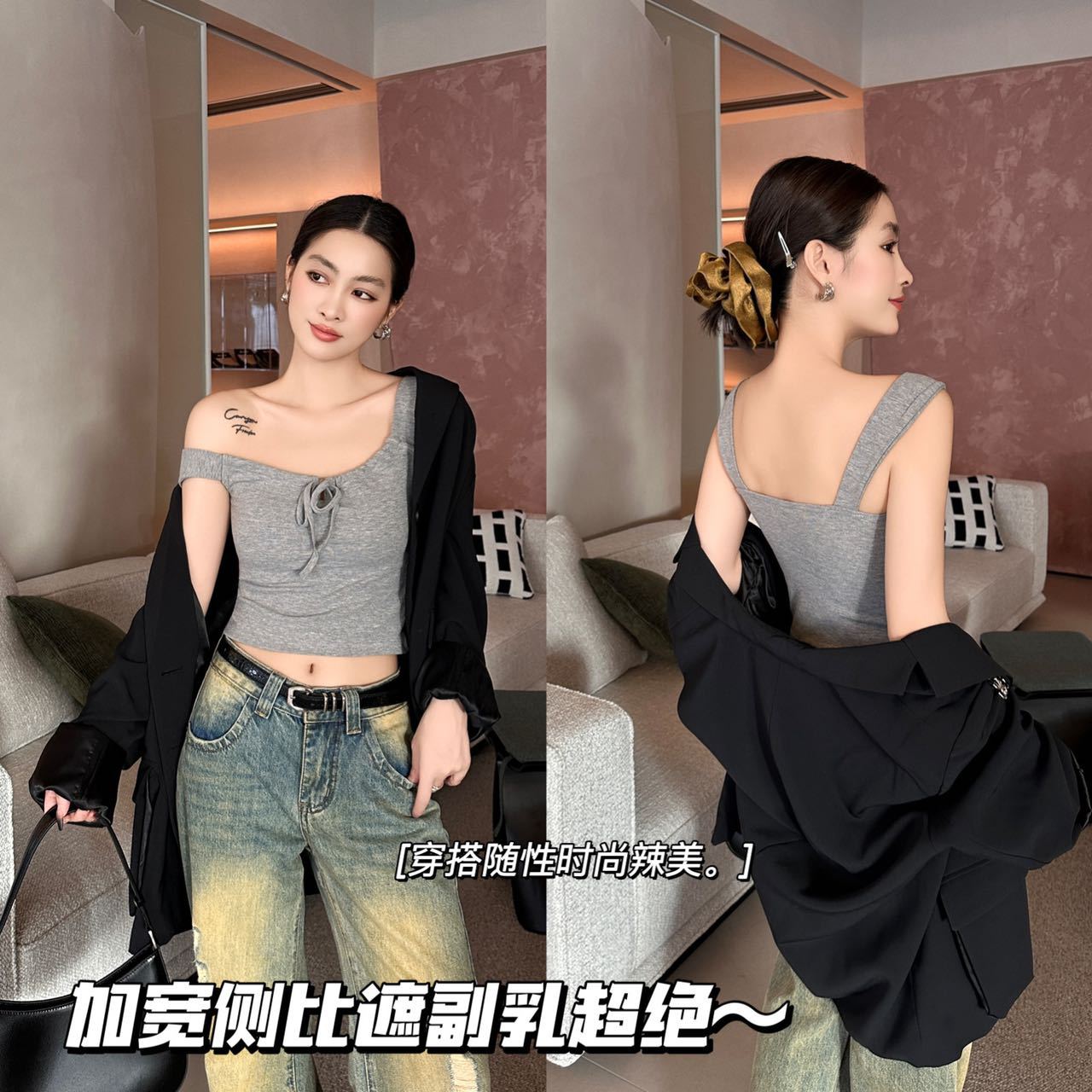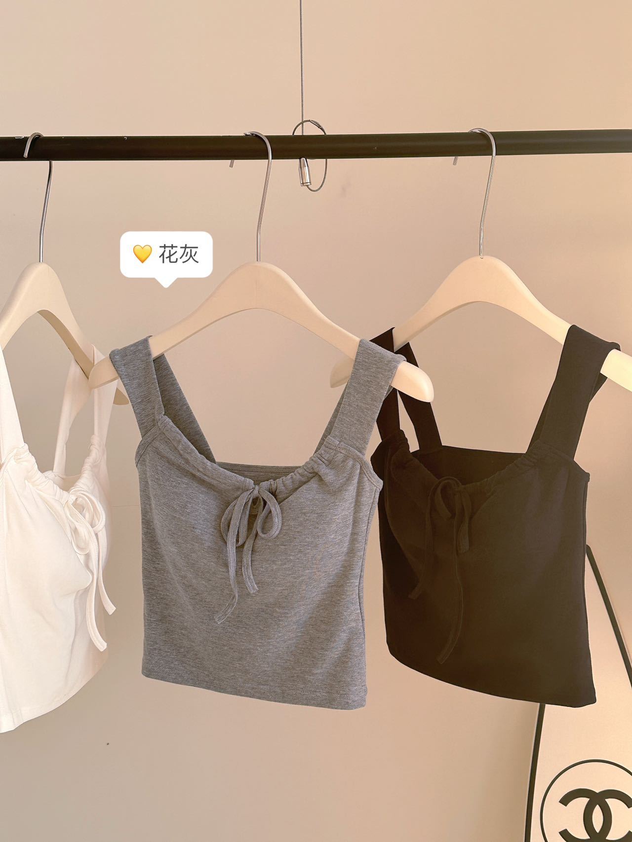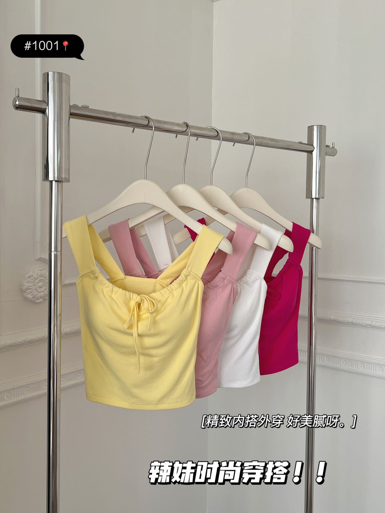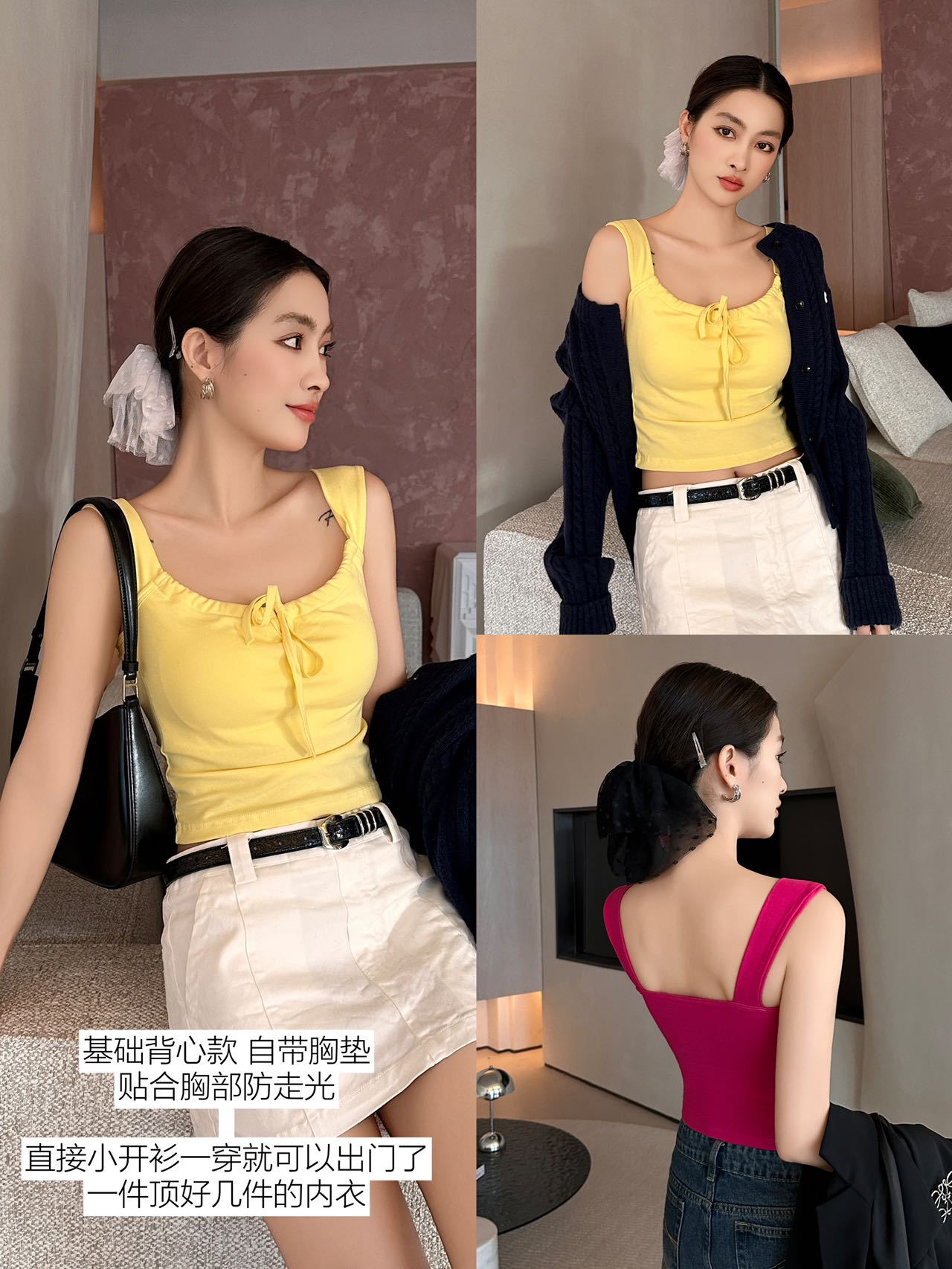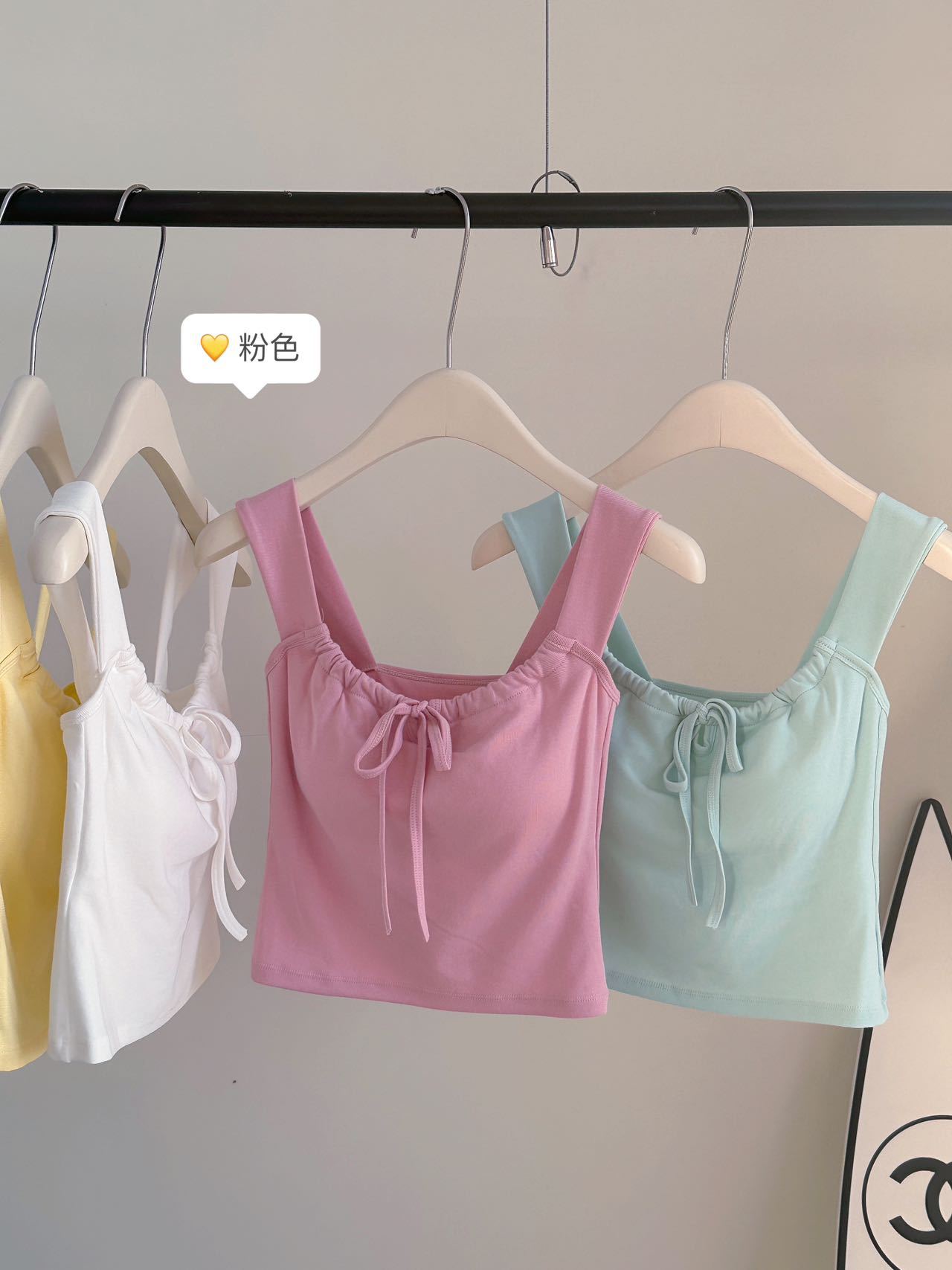 헤비급 RC 코튼 도파민 컬러 레이스업 보우 캐미솔 올인원 가슴 패드 스위트 소녀 와이드 숄더 민소매 탑스토어 가기