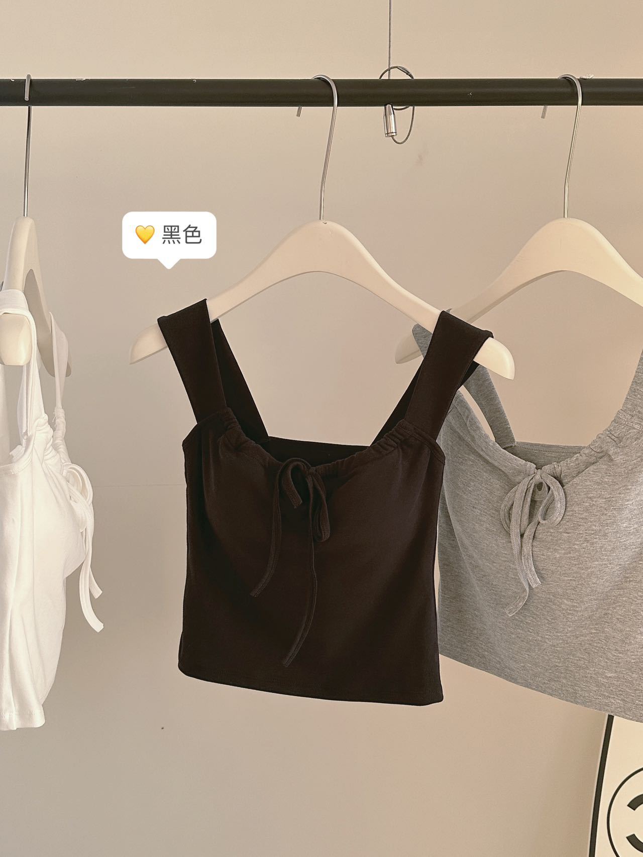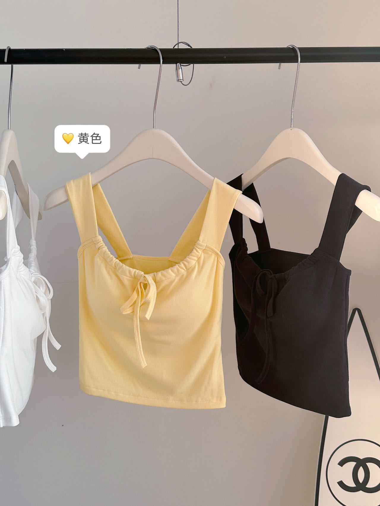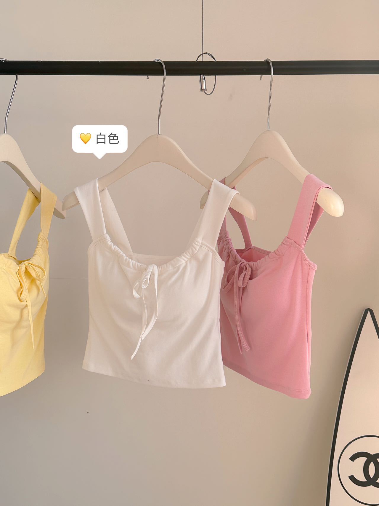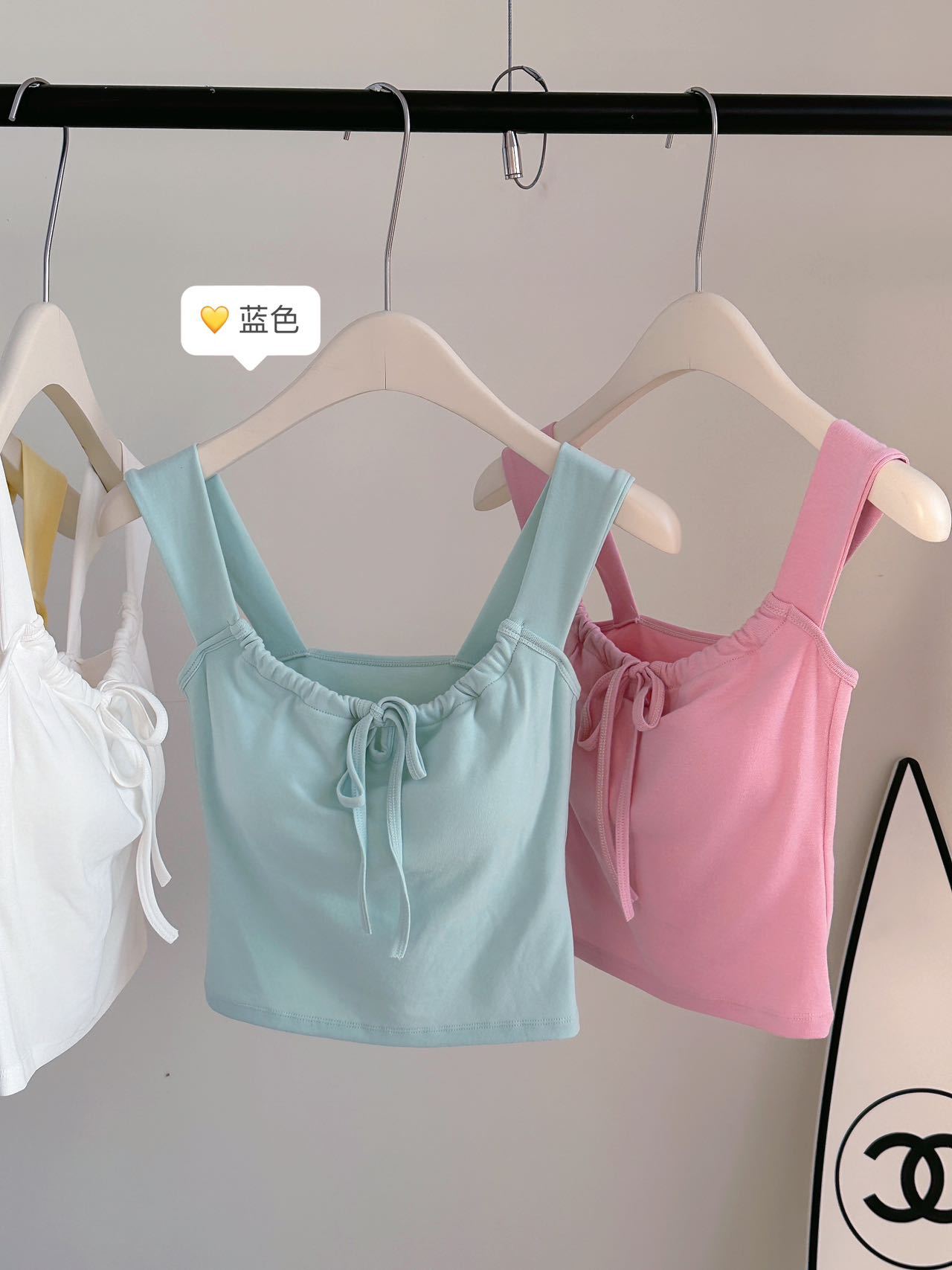 헤비급 RC 코튼 도파민 컬러 레이스업 보우 캐미솔 올인원 가슴 패드 스위트 소녀 와이드 숄더 민소매 탑